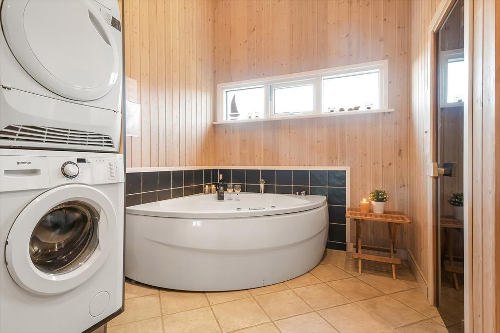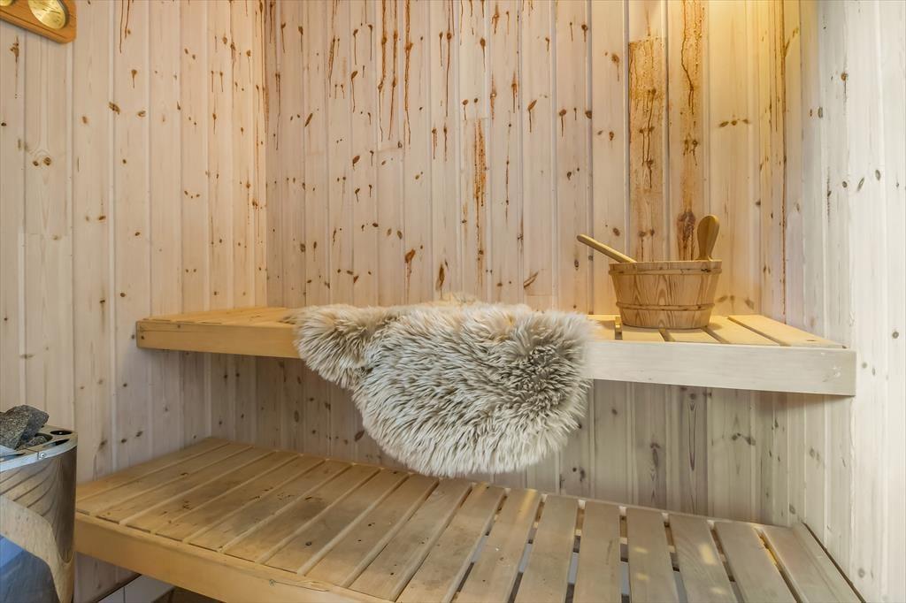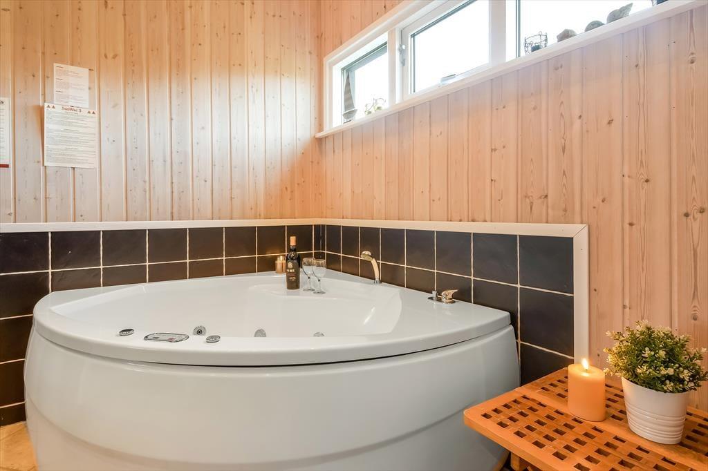 Ein Whirlpool und eine Sauna im Badezimmer, ein behaglich knisternder Kaminofen im Wohnraum und eine sonnenverwöhnte Terrasse mit guten Gartenmöbeln. Dies ist nur eine kleine Auswahl der zahlreich vorhandenen schönen Details, die bei diesem großen und attraktiv eingerichteten Ferienhaus am Skaven Strand unbedingt erwähnt werden sollten.