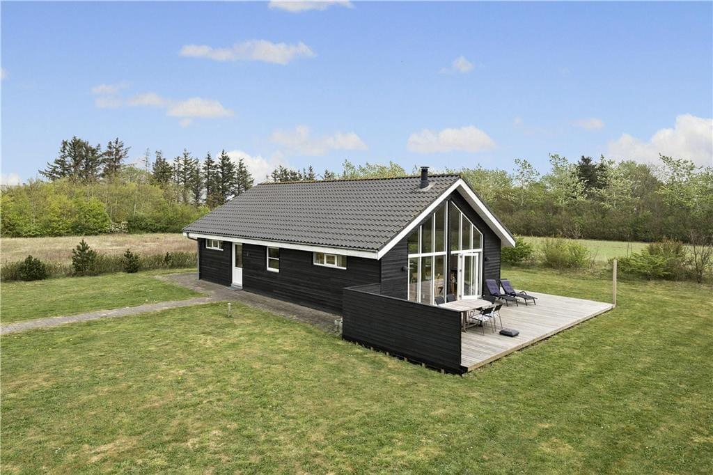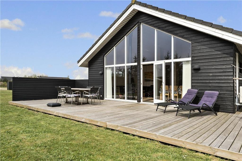 Wunderbar erholsam und entspannend geht es auch auf Ihrem 1.000 m² großen Ferienhausgrundstück zu. Das Grundstück ist schlicht angelegt und verfügt über eine Grasfläche und einen PKW-Stellplatz. Selbstverständlich ist auch eine Terrasse vorhanden. Hierbei handelt es sich um eine große, durchweg schöne Holzterrasse, die mit Gartenstühlen, Liegestühlen, einem Sonnenschirm und einem Grill zu traumhaft schönen Urlaubsstunden unter dem hohen dänischen Sommerhimmel einlädt.