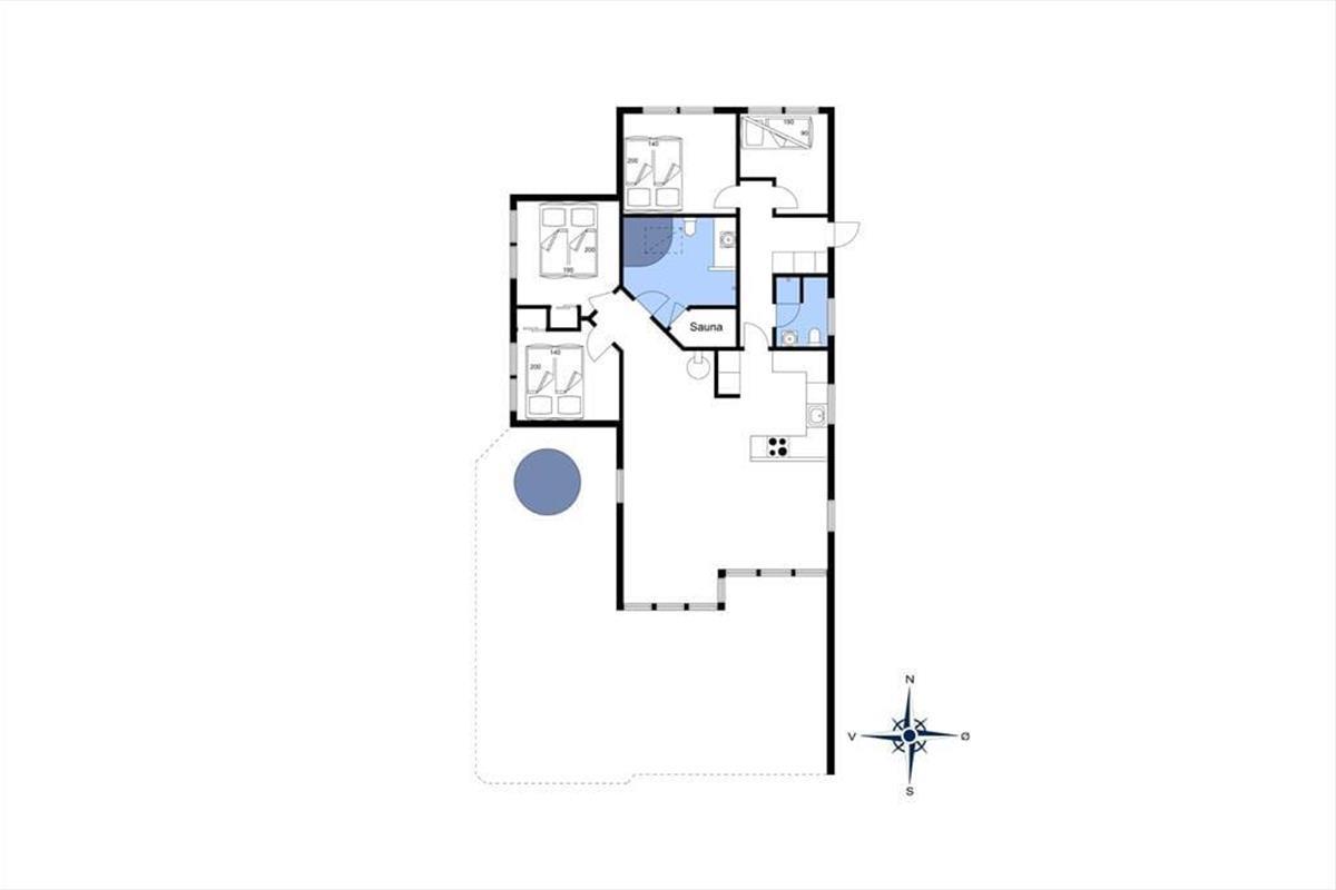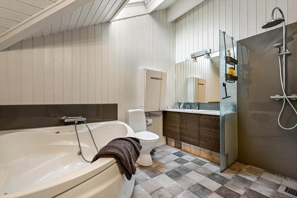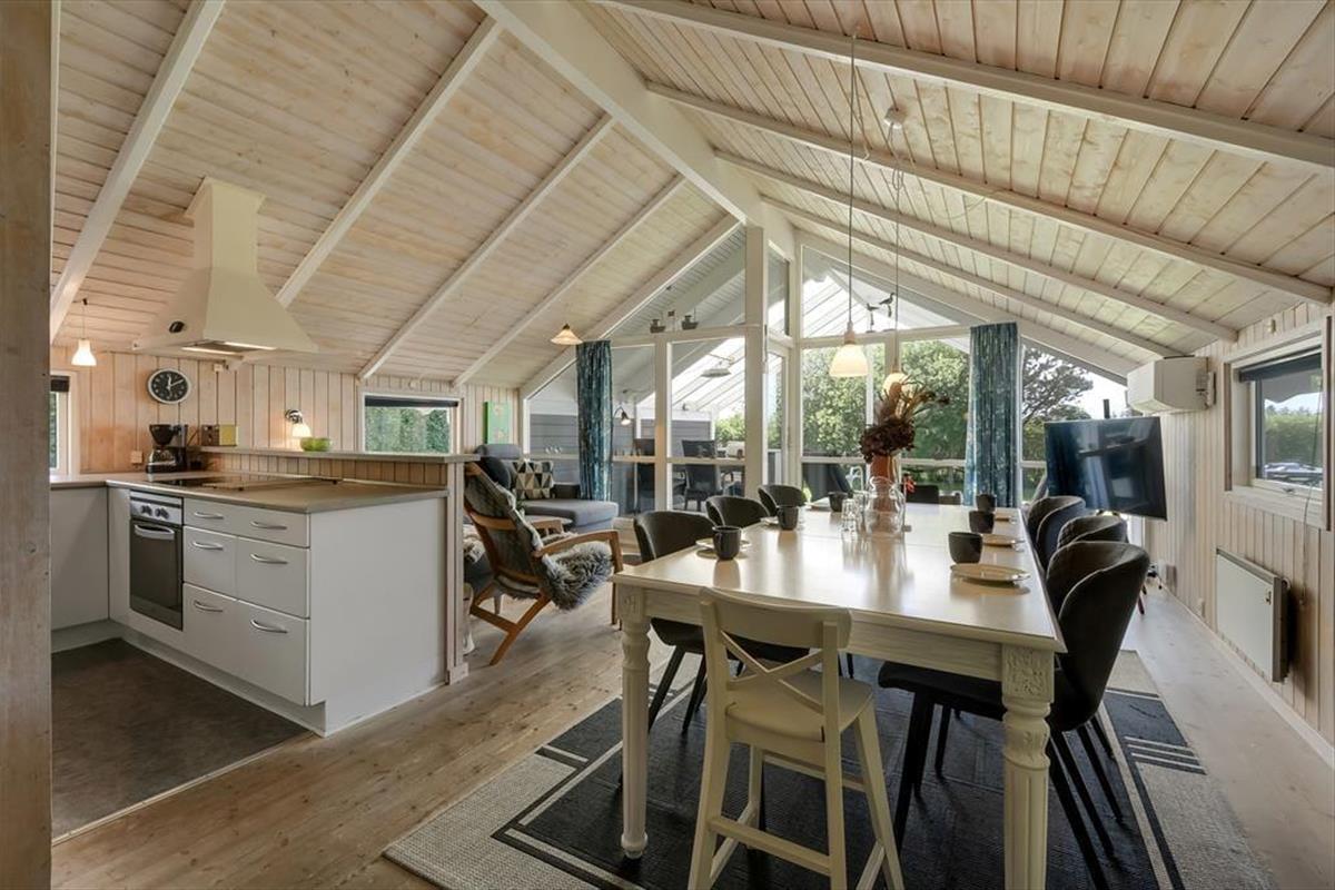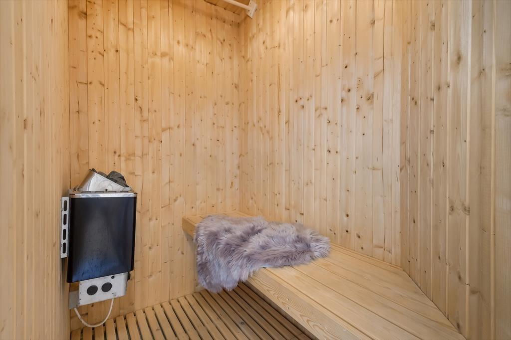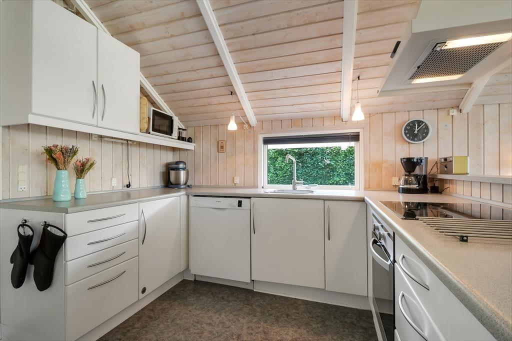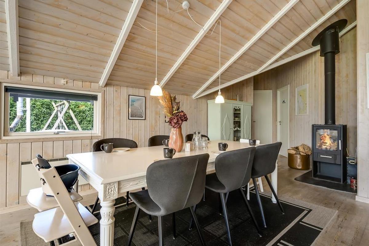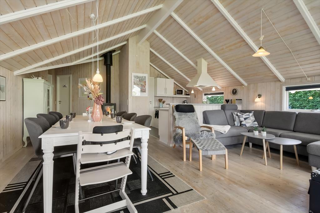 Das 93 m² große Ferienhaus hat eine hervorragende Raumaufteilung mit vier Schlafzimmern, zwei Badezimmern und einem geräumigen Wohnzimmer mit integrierter Küche. Schlafräume und Badezimmer sind so verteilt, dass zwei Familien jeweils ihren eigenen Bereich haben, während sich alle im Wohnbereich versammeln können, wenn es Zeit ist, das Essen zuzubereiten und anschließend am langen Esstisch zu essen. Wenn du dich in der Sofaecke mit einem prasselnden Kaminofen, heißem Kakao in den Tassen und vielleicht einem Film auf dem Flachbildfernseher entspannen möchtest, ist auch das hier möglich. Und wenn du dich vollkommen entspannen möchtest, fülle den Whirlpool des Hauses mit warmem Wasser, schalte die Sauna ein und freue dich darauf, ein oder zwei Stunden wohltuende Wellness zu genießen.
