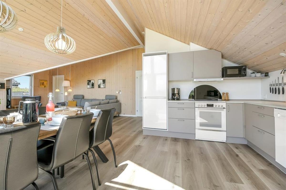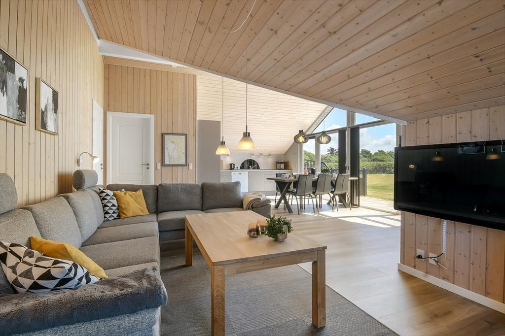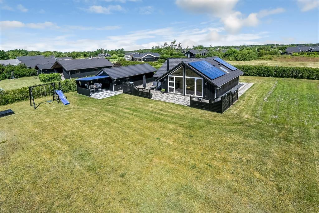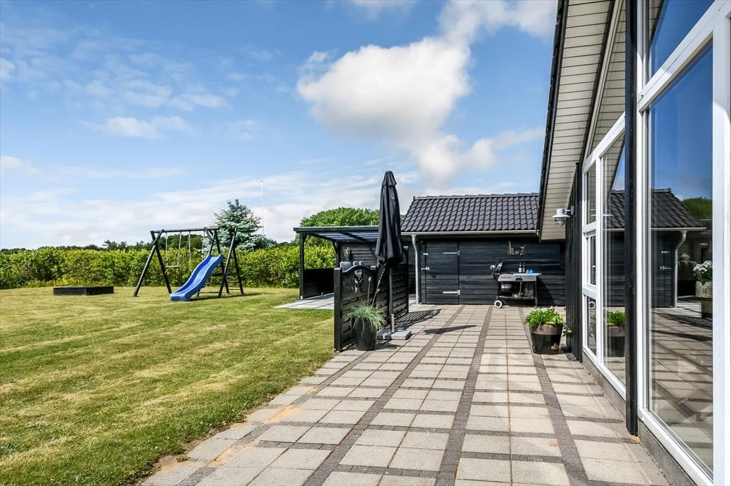 Der Sortbærvej liegt friedvoll in der südöstlichen Ecke eines in sich geschlossenen Ferienhausgebiets, das sich aufgrund seiner vielen kleinen Pfade, des Spielplatzes und der grünen Umgebung bestens für einen Familienurlaub eignet. Die kurze Entfernung zum Wasser ist ein zusätzlicher Pluspunkt. Skaven Strand spricht kleine und große Urlauber gleichermaßen an. Mit deinen Kindern kannst du im flachen Wasser planschen, vom Badesteg aus Krebse fangen und die kleinen Boote im Hafen anschauen. Falls du es aktiver magst, brichst du per Surfbrett oder Kite in See. Die reizvolle Küstenlandschaft erkundest du zu Fuß oder per Fahrrad - beispielsweise bei einem Ausflug zur wunderschönen Skjern Enge.