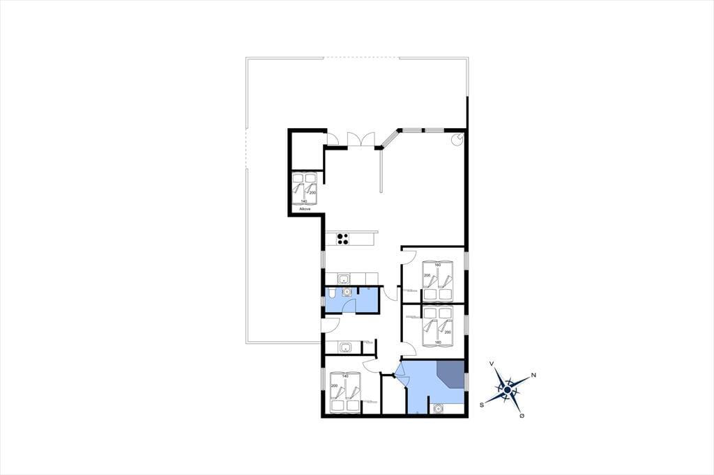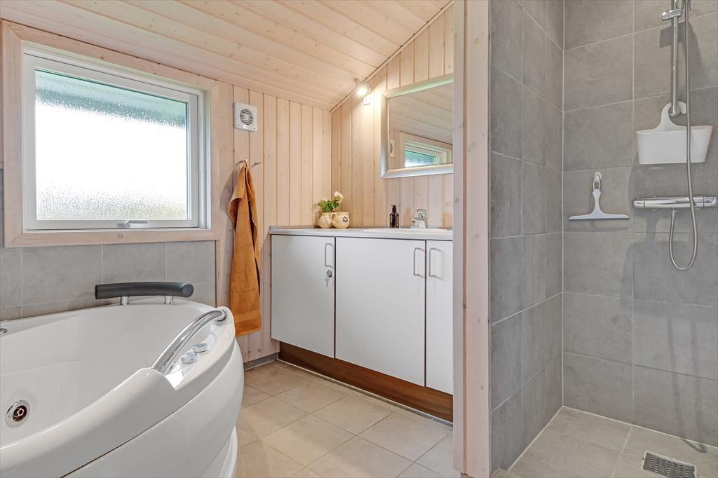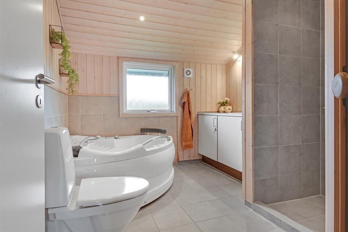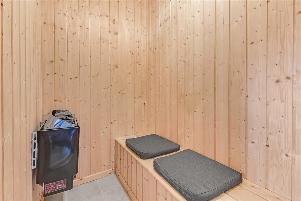 Das Ferienhaus hat in allen Räumen eine angenehme und einladende Atmosphäre, sodass du dich drinnen sofort wie zu Hause fühlst. Im Wohnzimmer sorgen hohe Decken und helle Holzvertäfelungen für eine charmante Stimmung, und sowohl die Alkove als auch der Kamin tragen zusätzlich zur Gemütlichkeit bei – stell dir vor, wie schön es sein kann, eine Pause auf der Matratze in der Alkove zu machen, während der Rest der Familie sich unterhält, Bücher liest oder im offenen Küchenbereich Brötchen backt. Wenn du Entspannung suchst, kannst du dir auch ein bis zwei Stunden für ein Bad im Whirlpool oder einen Saunagang gönnen – das ist wirklich etwas, das Körper und Geist beruhigt und erwärmt. Sowohl der Whirlpool als auch die Sauna befinden sich übrigens im größten der beiden Badezimmer, das in demselben Teil des Hauses liegt wie die drei schönen Schlafzimmer.