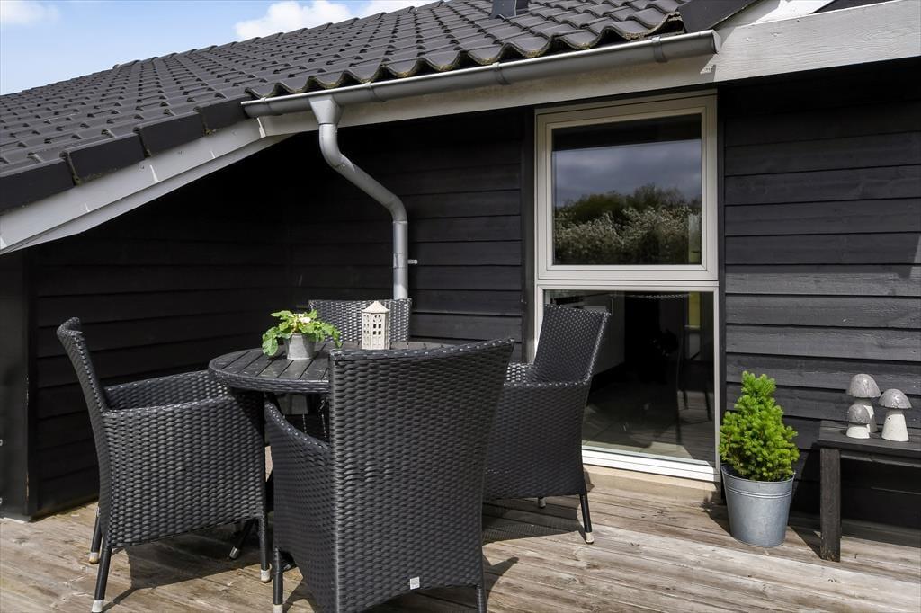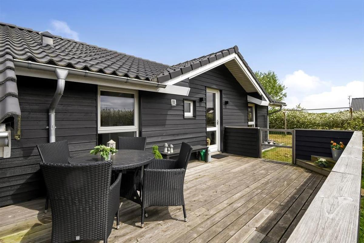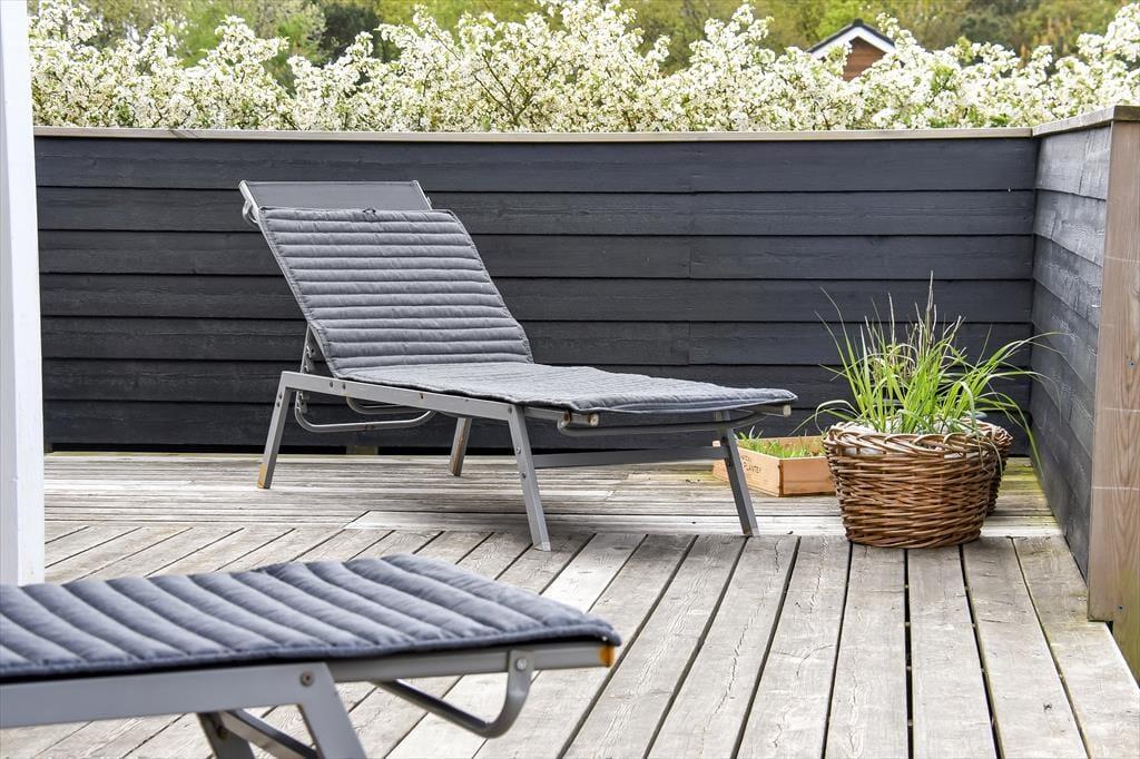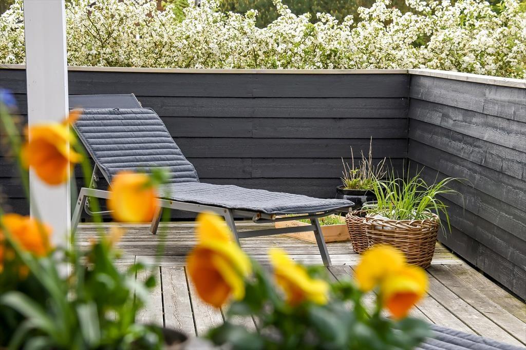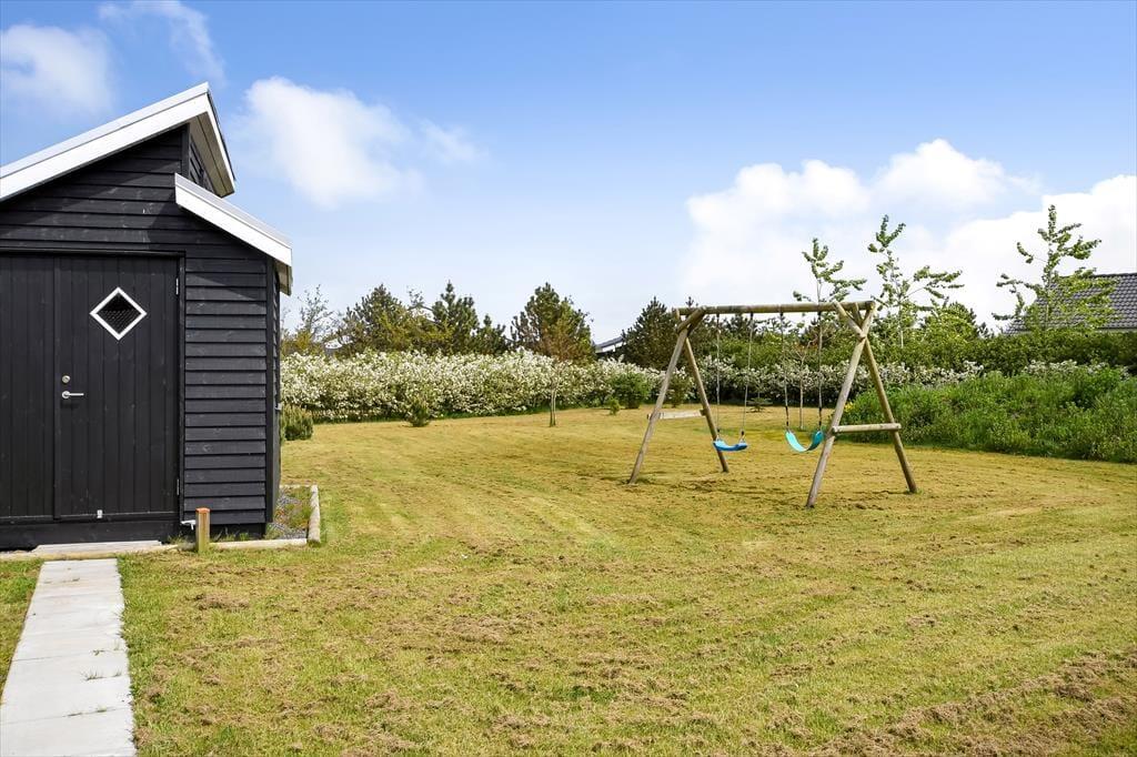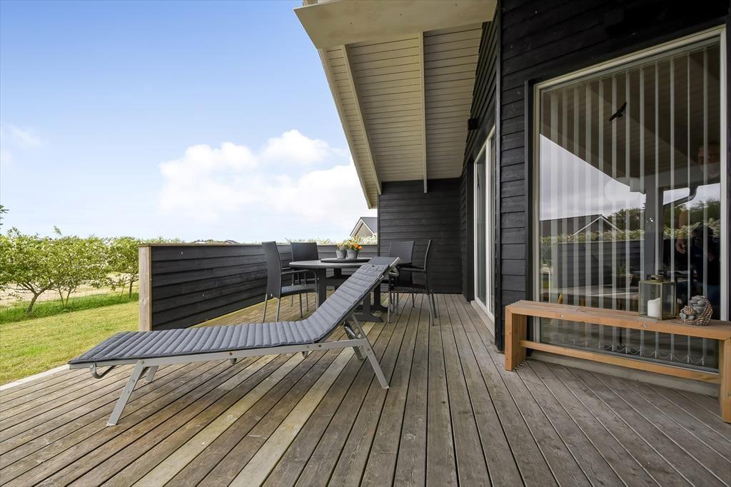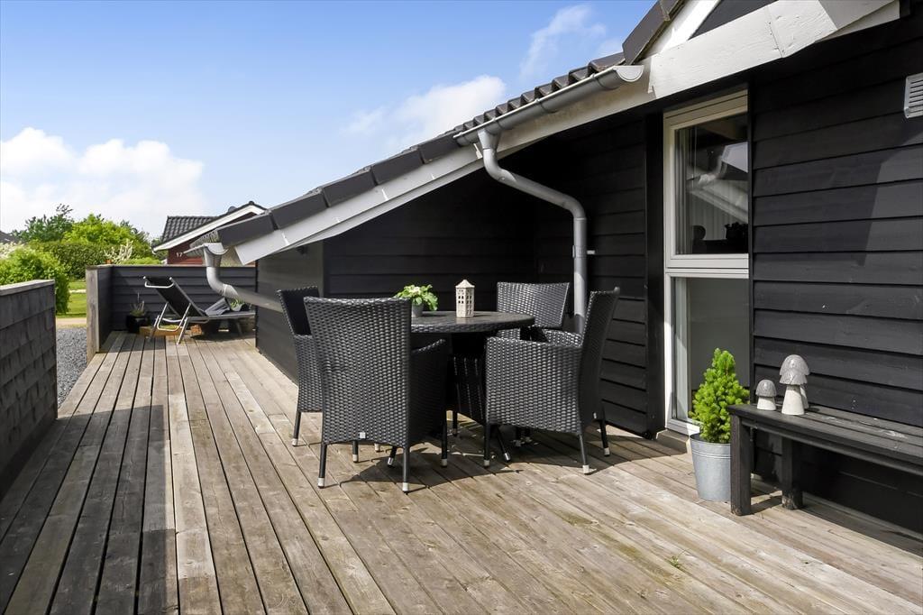 Vom Wohnzimmer aus hast du direkten Zugang zu einer großen Holzterrasse, die mehrere gemütliche Sitzmöglichkeiten und ruhige Sonnenplätze bietet. Ein Teil der Terrasse ist überdacht, falls du Schatten suchst, und hier könnt ihr auch abends wunderbar sitzen – ohne euch Gedanken über den Tau zu machen. Stattdessen könnt ihr euch ganz auf das gute Gespräch und das köstliche Abendessen konzentrieren, das in Kürze auf dem Grill fertig sein wird. Auf dem abgeschlossenen Grundstück gibt es eine Schaukel für die jüngsten Feriengäste, und sowohl Kinder als auch Erwachsene und sogar der Familienhund werden Freude an der Rasenfläche haben, wenn ihr Fußball spielen oder andere Spiele genießen wollt.