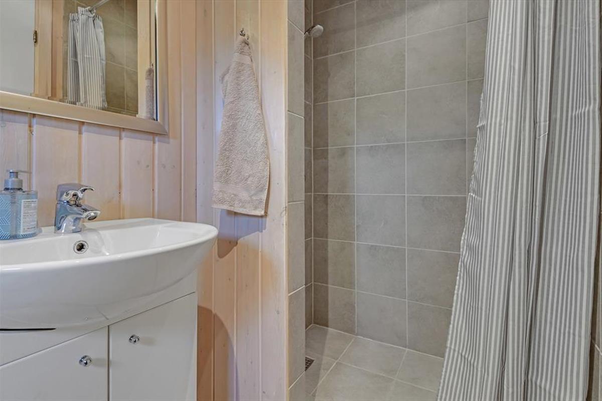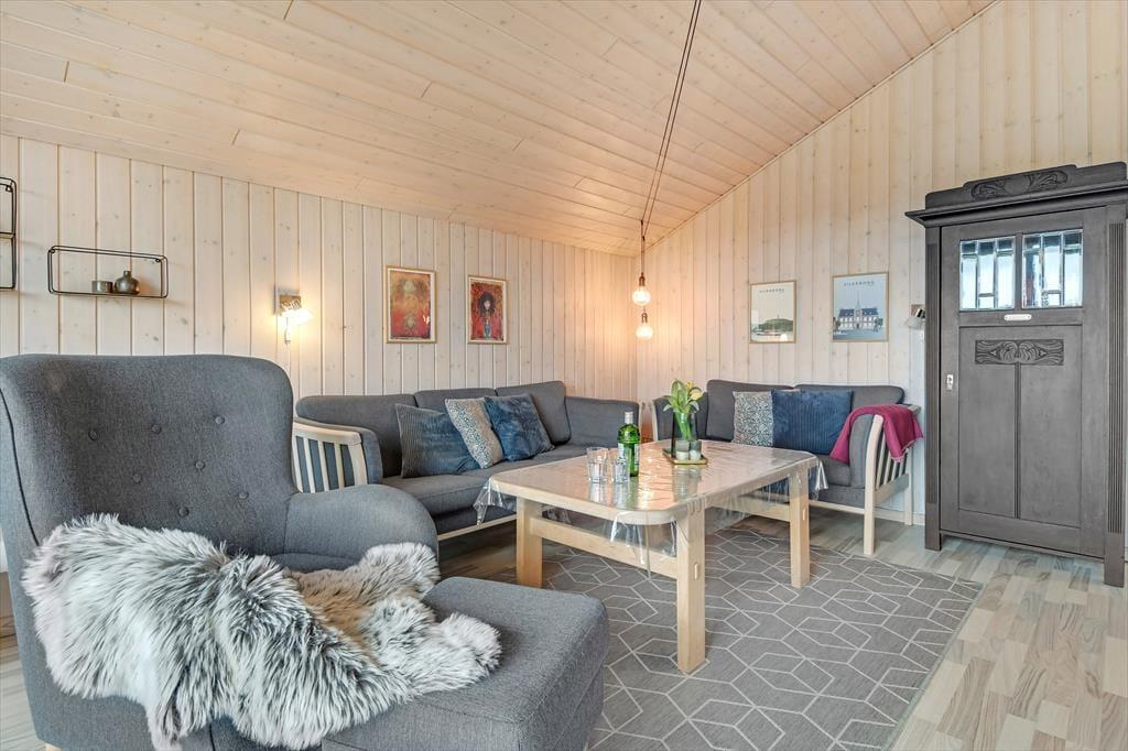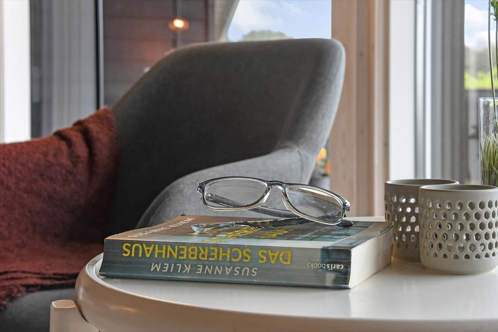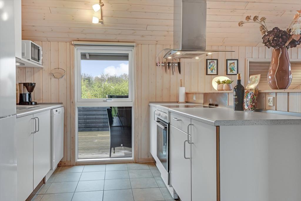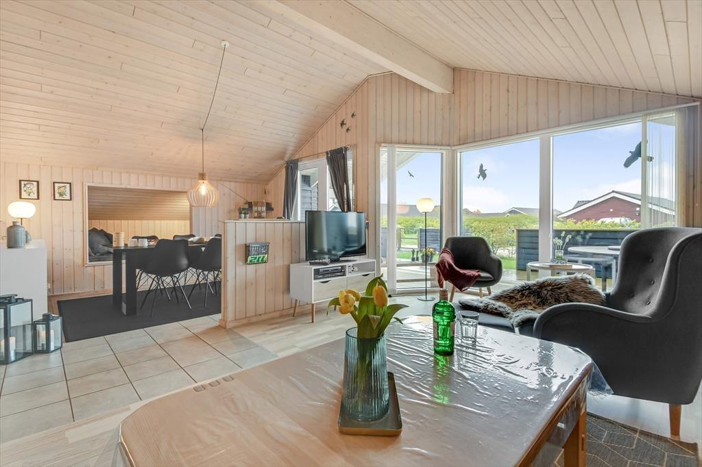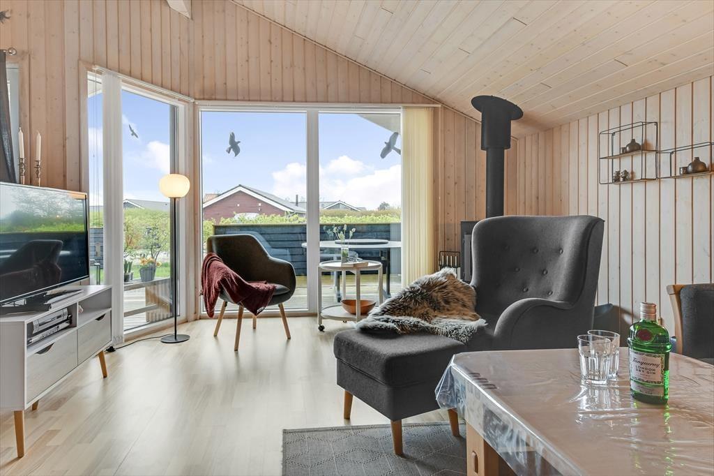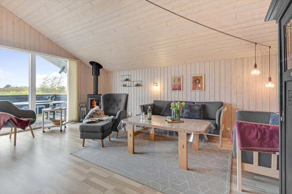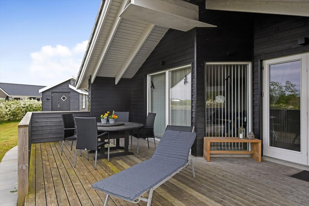 Vom Wohnzimmer aus hast du direkten Zugang zu einer großen Holzterrasse, die mehrere gemütliche Sitzmöglichkeiten und ruhige Sonnenplätze bietet. Ein Teil der Terrasse ist überdacht, falls du Schatten suchst, und hier könnt ihr auch abends wunderbar sitzen – ohne euch Gedanken über den Tau zu machen. Stattdessen könnt ihr euch ganz auf das gute Gespräch und das köstliche Abendessen konzentrieren, das in Kürze auf dem Grill fertig sein wird. Auf dem abgeschlossenen Grundstück gibt es eine Schaukel für die jüngsten Feriengäste, und sowohl Kinder als auch Erwachsene und sogar der Familienhund werden Freude an der Rasenfläche haben, wenn ihr Fußball spielen oder andere Spiele genießen wollt.