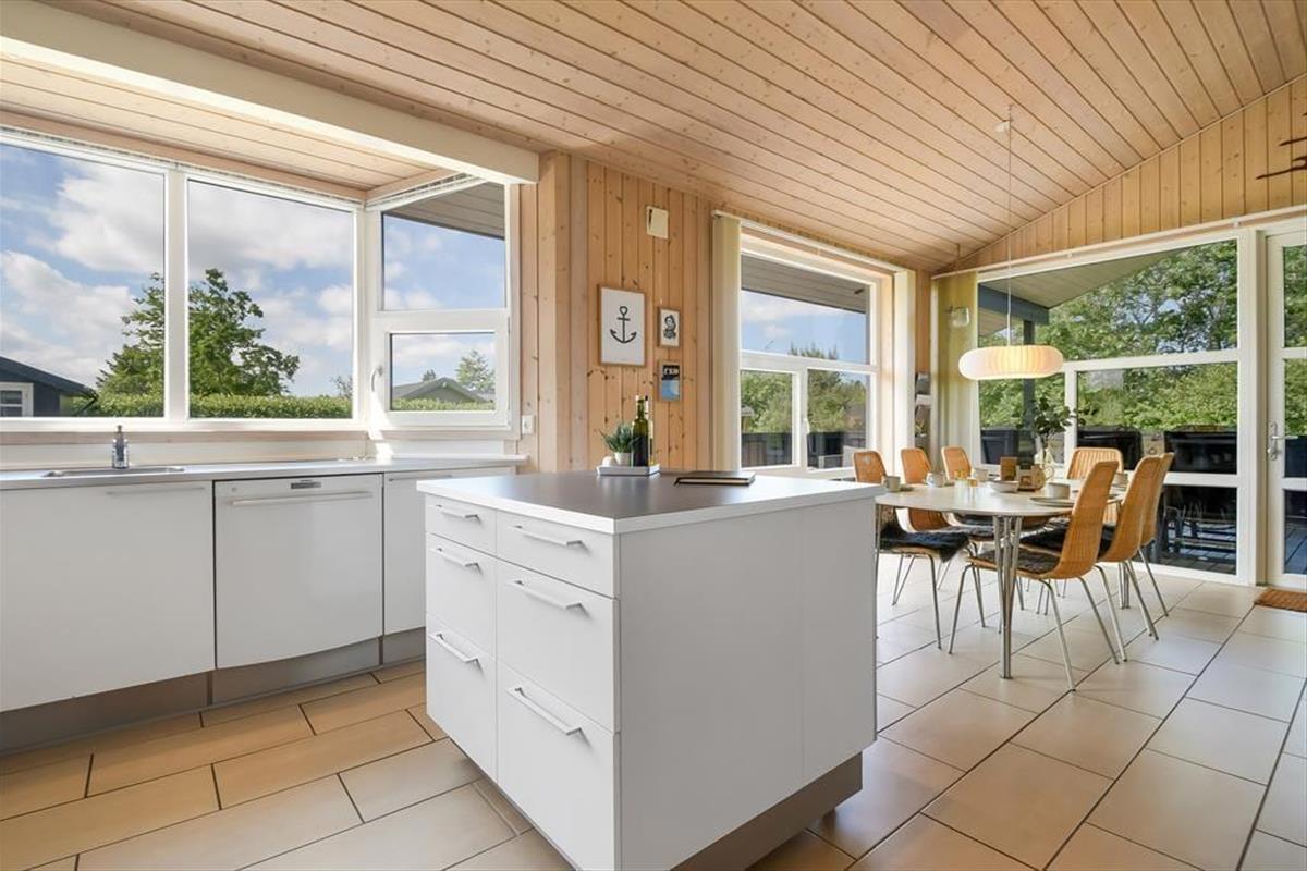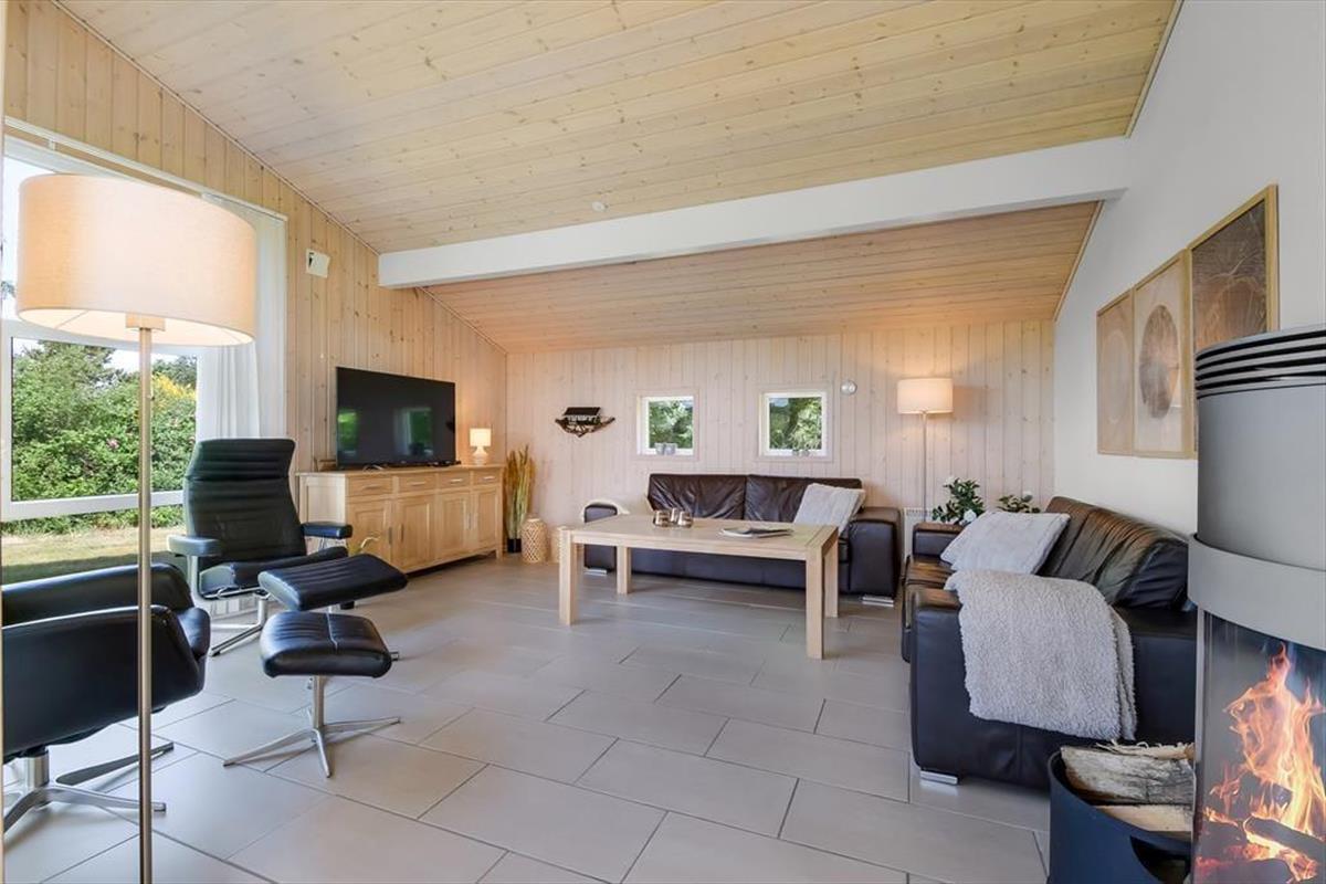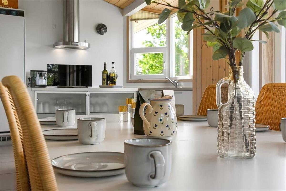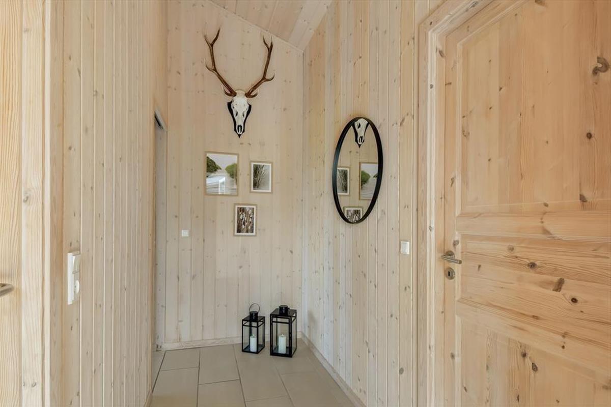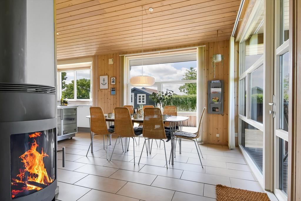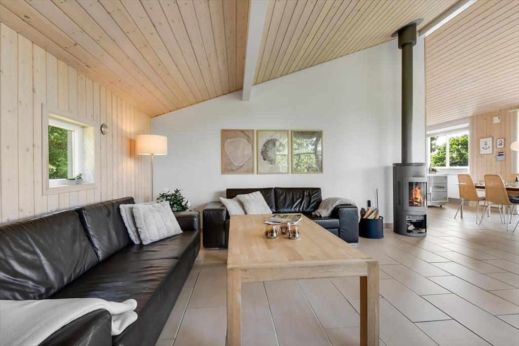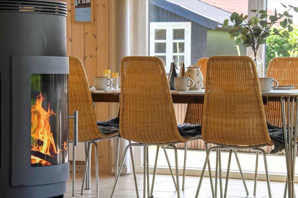 Im Haus erwartet dich ein ausgesprochen einladender Rahmen für gelungene, stimmungsvolle Urlaubstage. Du darfst dich auf eine helle, freundliche Atmosphäre freuen. Alle Räume sind modern und ansprechend möbliert. Wohnraum, Essbereich und Küche bilden zusammen einen schönen, offenen Aufenthaltsbereich. Der Kaminofen verleiht dem Aufenthaltsbereich an kühlen Tagen maximalen Ferienhauscharme. Falls sich das Wetter nicht unbedingt für Kaminfeuerromantik eignen sollte, stellst du einfach die Terrassentüren weit auf, heißt den Sommer willkommen und begibst dich mit einem Eiskaffee oder deinem Lieblingsgetränk hinaus ins Freie. Ein geräumiges Badezimmer mit Dusche ist vom Eingangsbereich aus zugänglich. Der Rest der Wohnfläche ist drei attraktiven Schlafräumen mit insgesamt sechs Schlafplätzen überlassen.