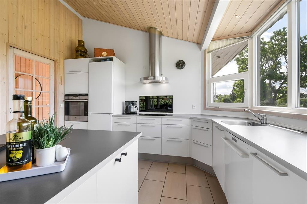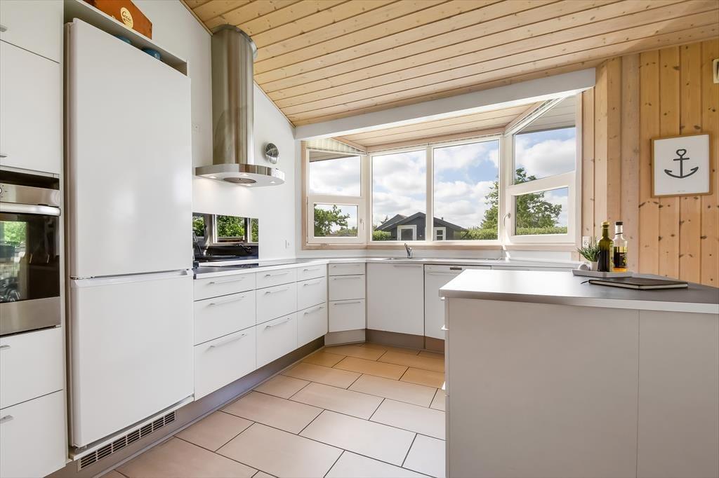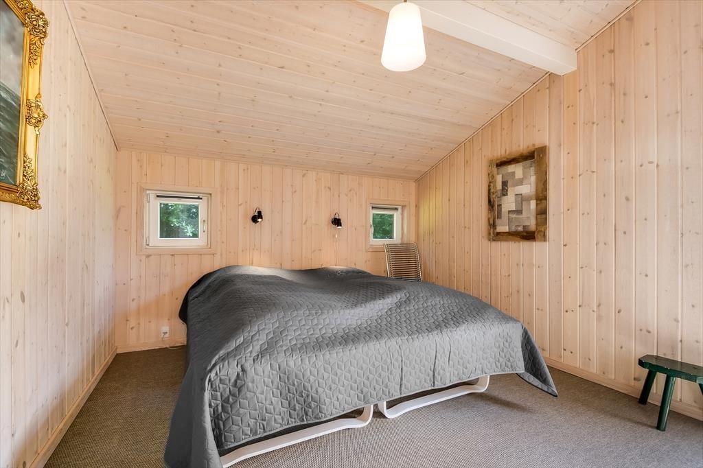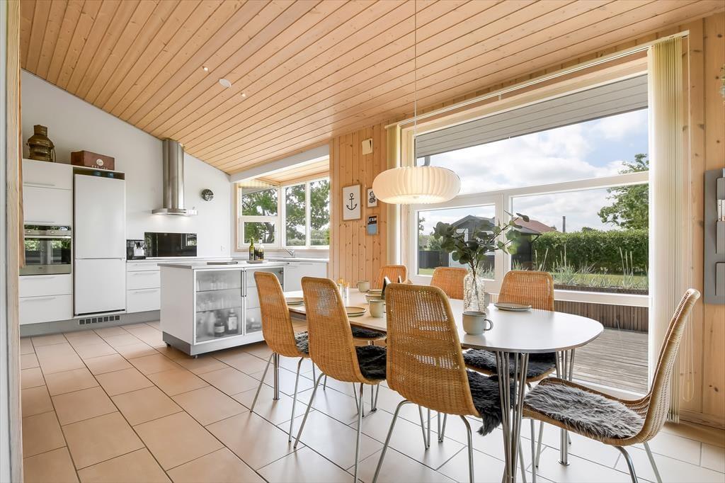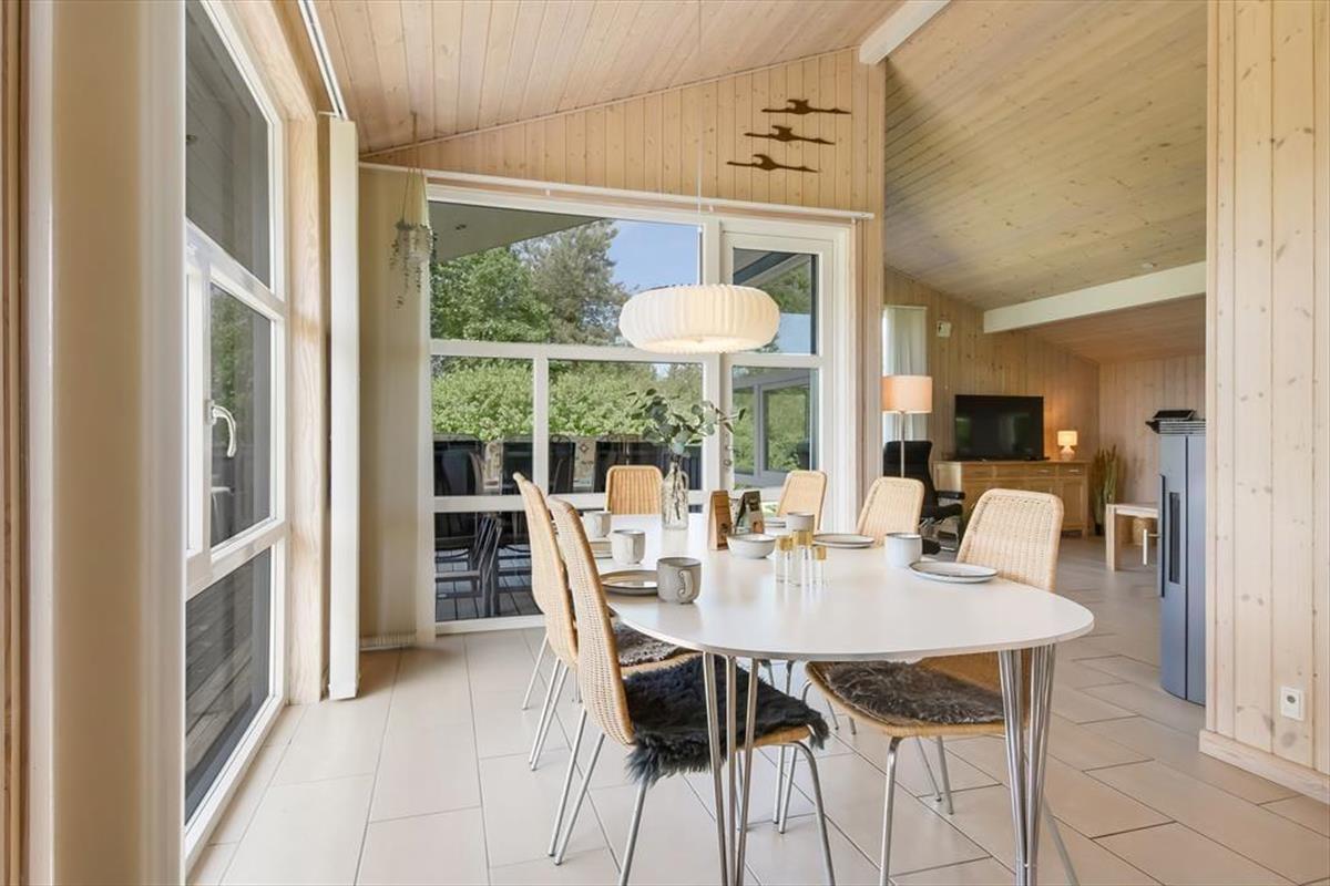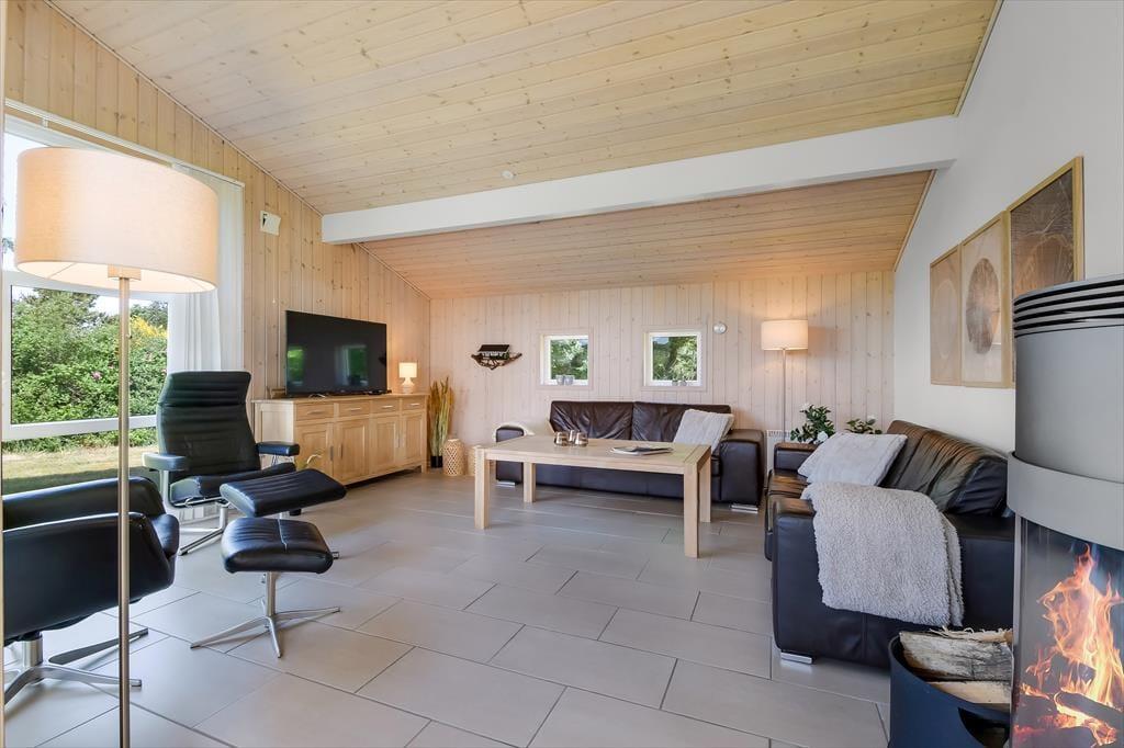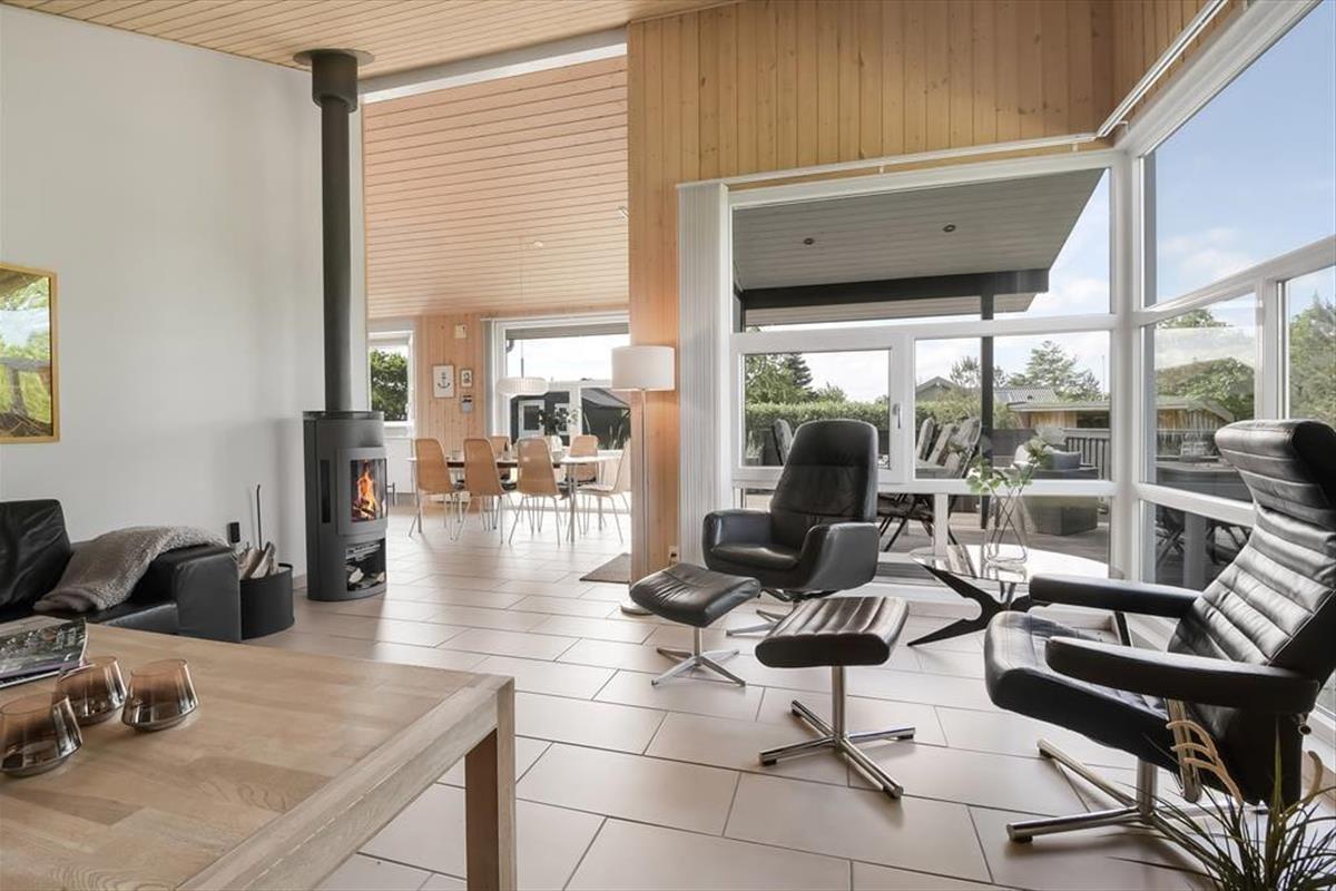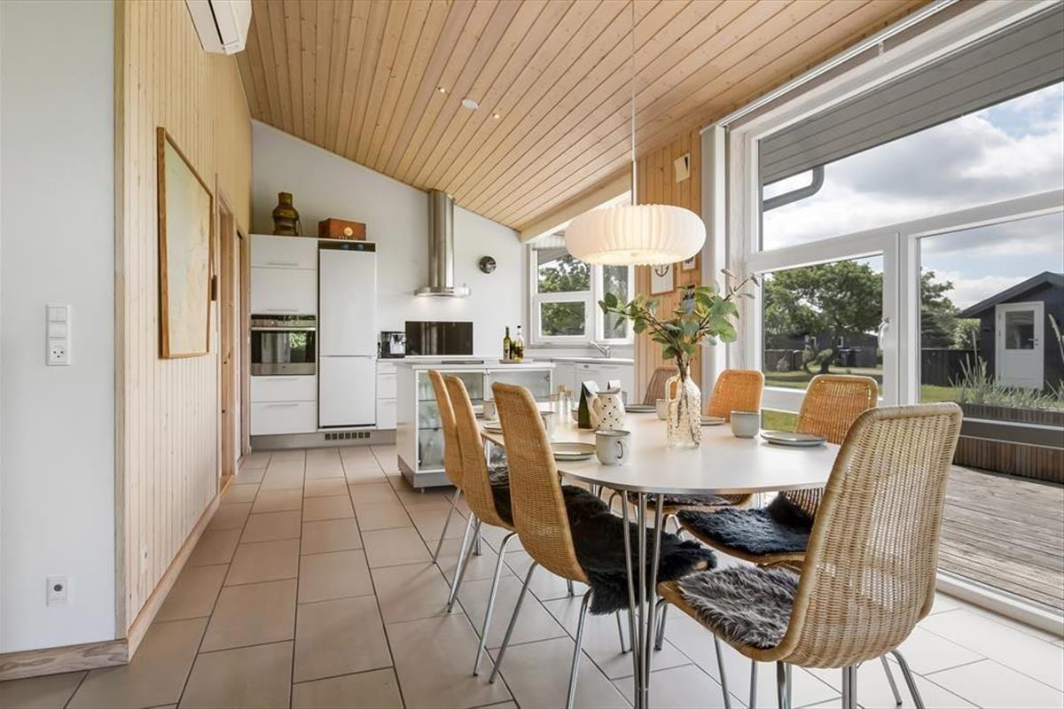 Im Haus erwartet dich ein ausgesprochen einladender Rahmen für gelungene, stimmungsvolle Urlaubstage. Du darfst dich auf eine helle, freundliche Atmosphäre freuen. Alle Räume sind modern und ansprechend möbliert. Wohnraum, Essbereich und Küche bilden zusammen einen schönen, offenen Aufenthaltsbereich. Der Kaminofen verleiht dem Aufenthaltsbereich an kühlen Tagen maximalen Ferienhauscharme. Falls sich das Wetter nicht unbedingt für Kaminfeuerromantik eignen sollte, stellst du einfach die Terrassentüren weit auf, heißt den Sommer willkommen und begibst dich mit einem Eiskaffee oder deinem Lieblingsgetränk hinaus ins Freie. Ein geräumiges Badezimmer mit Dusche ist vom Eingangsbereich aus zugänglich. Der Rest der Wohnfläche ist drei attraktiven Schlafräumen mit insgesamt sechs Schlafplätzen überlassen.