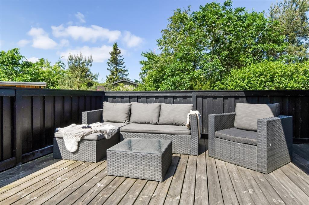 Sobald die Sommersonne hoch über Skaven Strand steht, wird es dich und deine Lieben unwiderstehlich hinaus auf die große Terrasse ziehen, auf der ihr das entspannte Urlaubsleben in vollen Zügen genießt. Ein Teil der Terrasse ist abgeschirmt. Ein überdachter Terrassenbereich steht ebenfalls zur Verfügung. Du findest daher zu jeder Zeit ein windgeschütztes Plätzchen und sitzt mit deiner Familie sicher noch lange nach Einbruch der Dunkelheit auf der Terrasse beisammen. Die Grasfläche deines Grundstücks animiert Groß und Klein zum gemeinsamen Spielen und Umhertollen. Abends könnt ihr einen langen Urlaubstag wunderbar in gemütlicher Runde an der Lagerfeuerstelle ausklingen lassen. Für eine Übernachtung unter freiem Himmel steht ein Shelter bereit - ein einmalig schönes Erlebnis für kleine und große Urlauber.