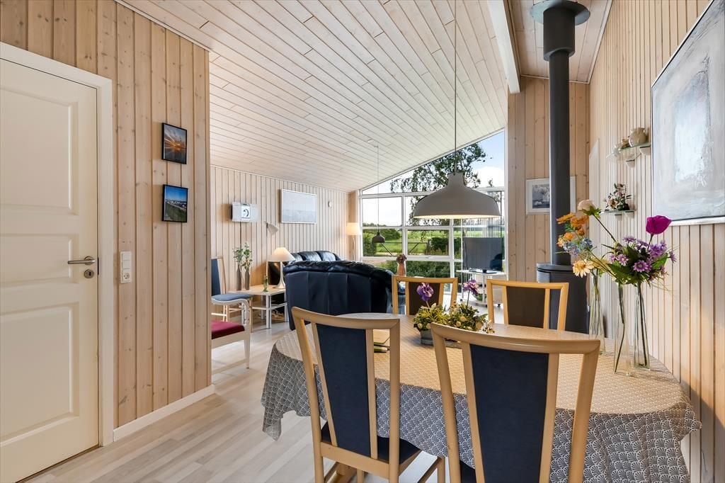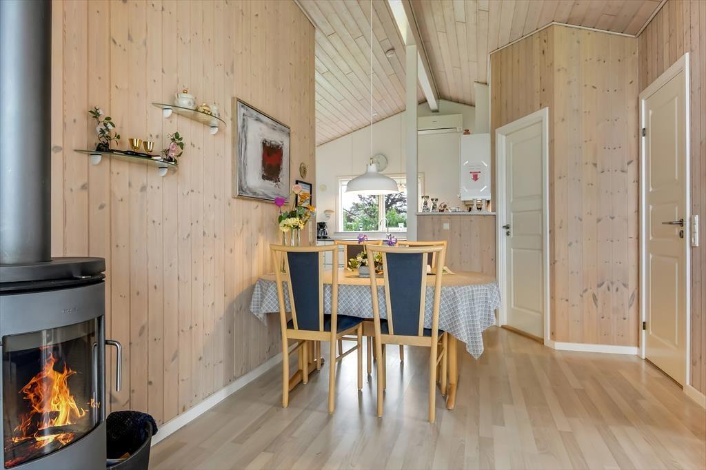 Das Ferienhaus ist ein gut ausgestattetes Holzhaus im klassischen Stil, das im Jahr 2007 gebaut und seitdem gut gepflegt wurde. Die hohen Decken sowie eine helle Holzvertäfelung im Inneren und die großen Fenster lassen viel Tageslicht herein und bieten Aussicht auf den grünen Garten und die offene Landschaft im Süden. Deiner Familie und dir stehen drei große Schlafzimmer zur Verfügung. Wenn du gerne kochst, kannst du dich auf die gut ausgestattete Küche freuen, die zum Wohnzimmer hin offen ist. Das Wohnzimmer hat eine gemütliche Sofaecke, die dazu einlädt, sich bei einem Film auf dem Flachbildfernseher völlig zu entspannen – und bevor du es dir zu bequem machst, kannst du, je nach Jahreszeit, den Kaminofen anheizen.