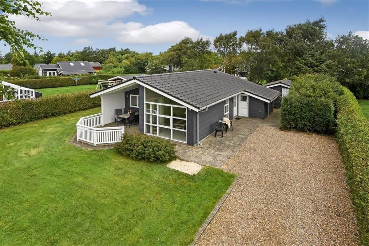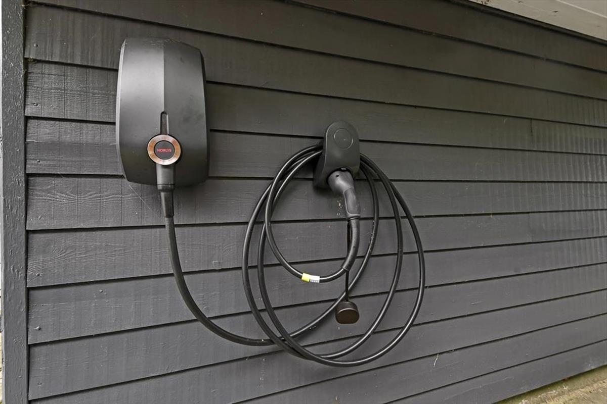 Wenn das Wetter nicht zum Kuscheln vor dem Kaminofen, sondern zum Sonnenbaden und frisch Gegrilltem einlädt, ist es eine gute Idee, sich nach draußen zu setzen – zum Beispiel auf eine der Terrassen, die das Ferienhaus umgeben. Der grüne Rasen lädt zum Spielen ein und die Schaukel mit Rutsche und Sandkasten wird die jüngsten Familienmitglieder garantiert lange beschäftigen. Eltern von Kleinkindern sowie Hundebesitzer werden es zu schätzen wissen, dass das Grundstück komplett eingezäunt ist, was es einfacher macht, alle in sicherer Umgebung zu wissen. Daher ist die Einfahrt zum Grundstück mit einem Tor versehen. Eine Ladestation an der Vorderseite des Hauses steht für dein Elektroauto bereit.