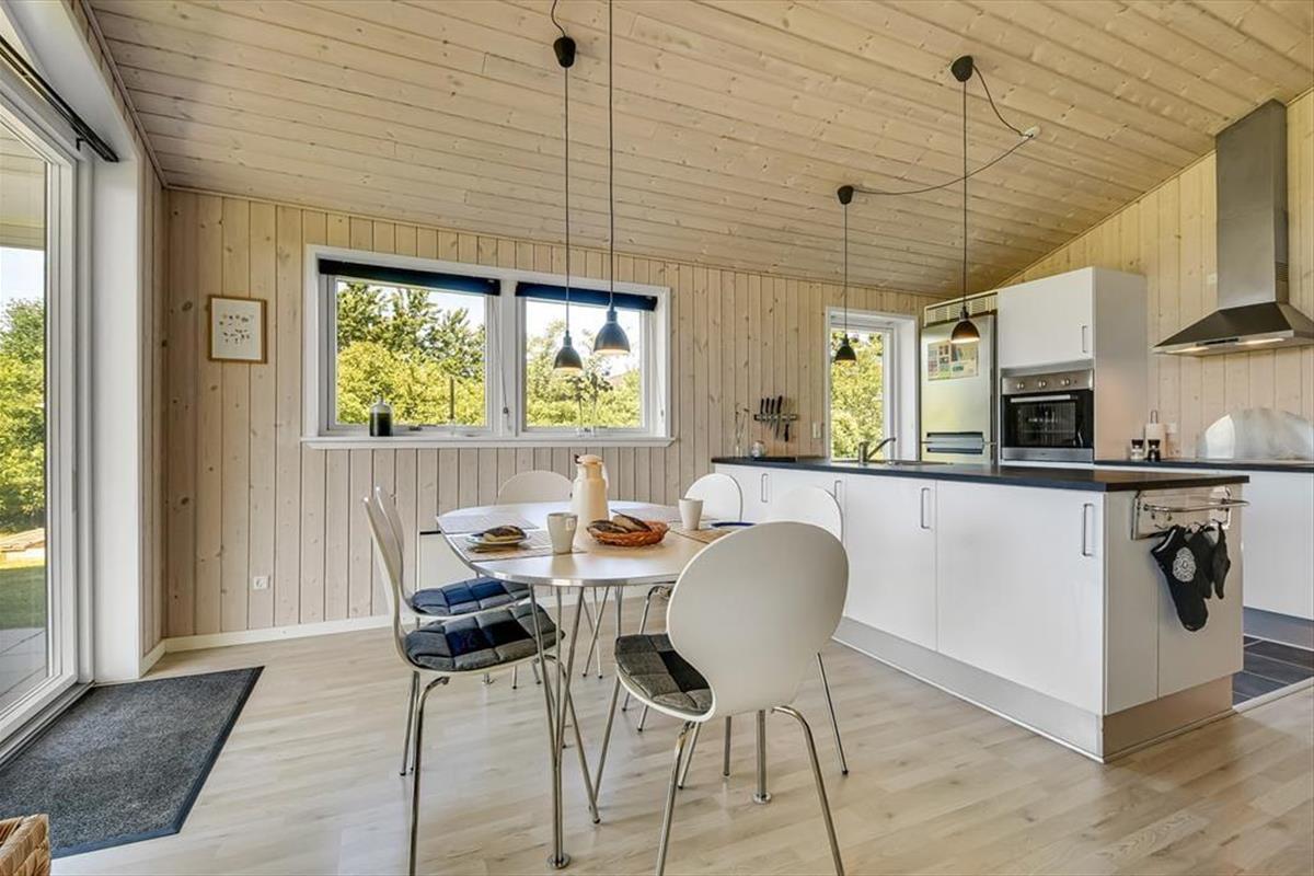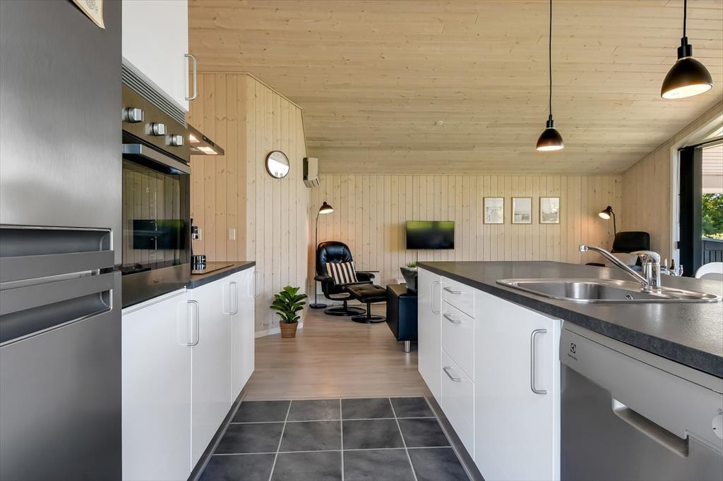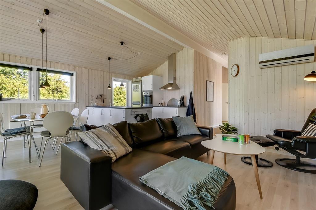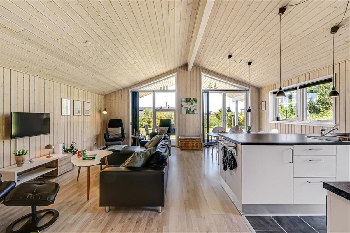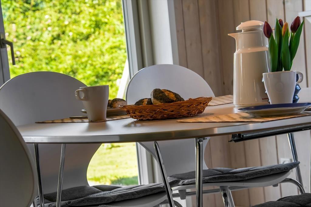Beim Betreten des Ferienhauses wirst du von einem hellen und geräumigen Wohnbereich empfangen, in dem Wohnzimmer, Esszimmer und Küche zu einem einladenden Raum verschmelzen. Hier bietet es sich an, mit der Familie die Mahlzeiten am Esstisch zu genießen, während die Gespräche fließen und sich der Duft von Speisen aus der Küche ausbreitet. Nach dem Essen könnt ihr euch im Sofa mit einem Kartenspiel oder einem guten Film entspannen, während draußen der Abend hereinbricht. Die Einrichtung schafft eine entspannte Atmosphäre mit Platz für gemeinsame Erlebnisse ebenso wie für ruhige Momente – so kannst du den Urlaub genau in deinem eigenen Tempo genießen.