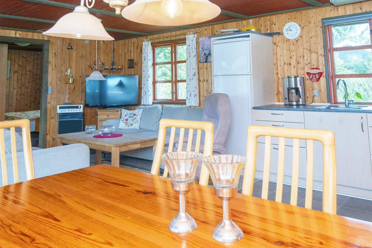 Das Ferienhaus ist für bis zu fünf Personen geeignet und mit gemischtem Mobiliar eingerichtet. Es gibt drei Schlafzimmer mit fünf Schlafplätzen in Betten. Eine passende Unterkunft für Urlauber, die viel draußen unterwegs sind und quasi nur ein Quartier für die Nacht suchen.