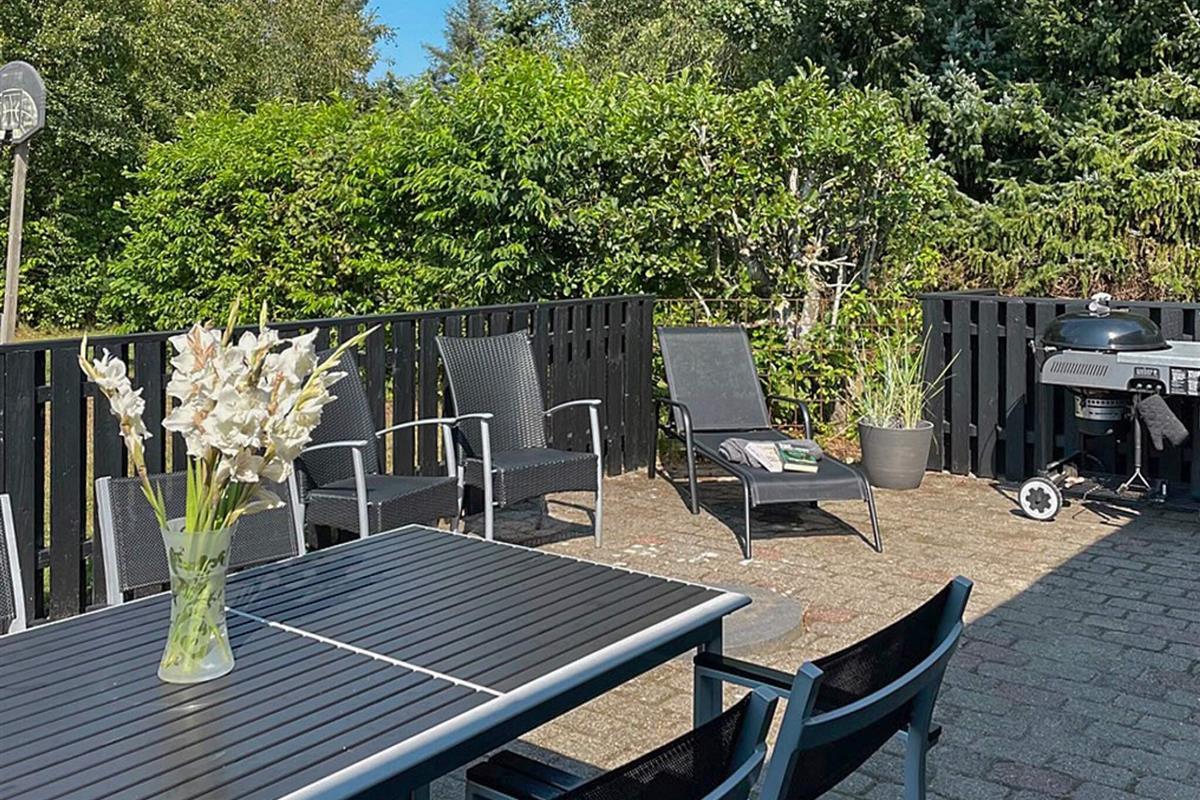 Und: Terrasse, Carport, E-Heiz., Luft-Luft-Wärmepumpe, Spielgeräte, Holzkohlegrill, Naturgrundst. m. Bäumen 1200 m2, gemütliche Möblierung, Ferienhausgebiet, Nichtraucherhaus
