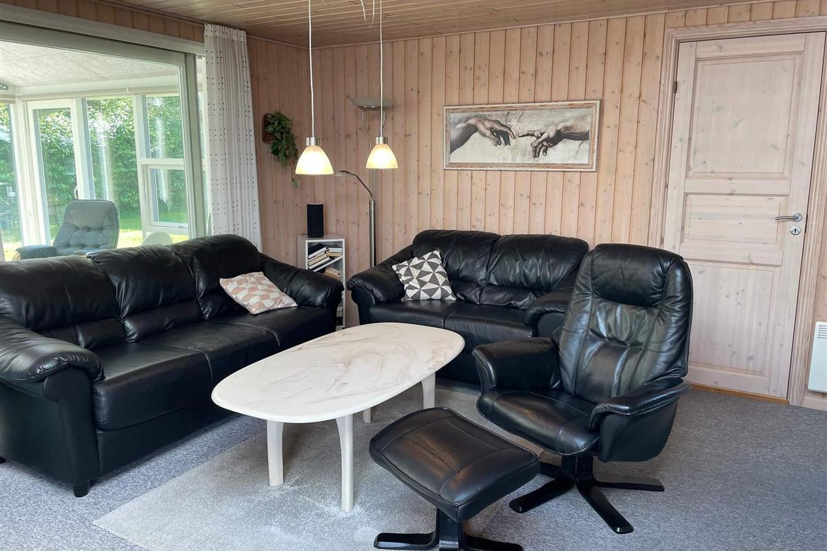 Das Ferienhaus ist gut eingerichtet und bietet drei Schlafzimmer sowie einen großen, offenen Küchen-/Wohnbereich für das Familienleben. In Erweiterung des Wohnzimmers wurde 2022 ein unbeheizter Wintergarten von 22 m2 Größe hinzugefügt. Im Haus wurde eine klimafreundliche Wärmepumpe installiert, die sowohl heizen als auch kühlen kann. Im Haus gibt es viele Spiele und Spielgeräte, die frei genutzt werden können.