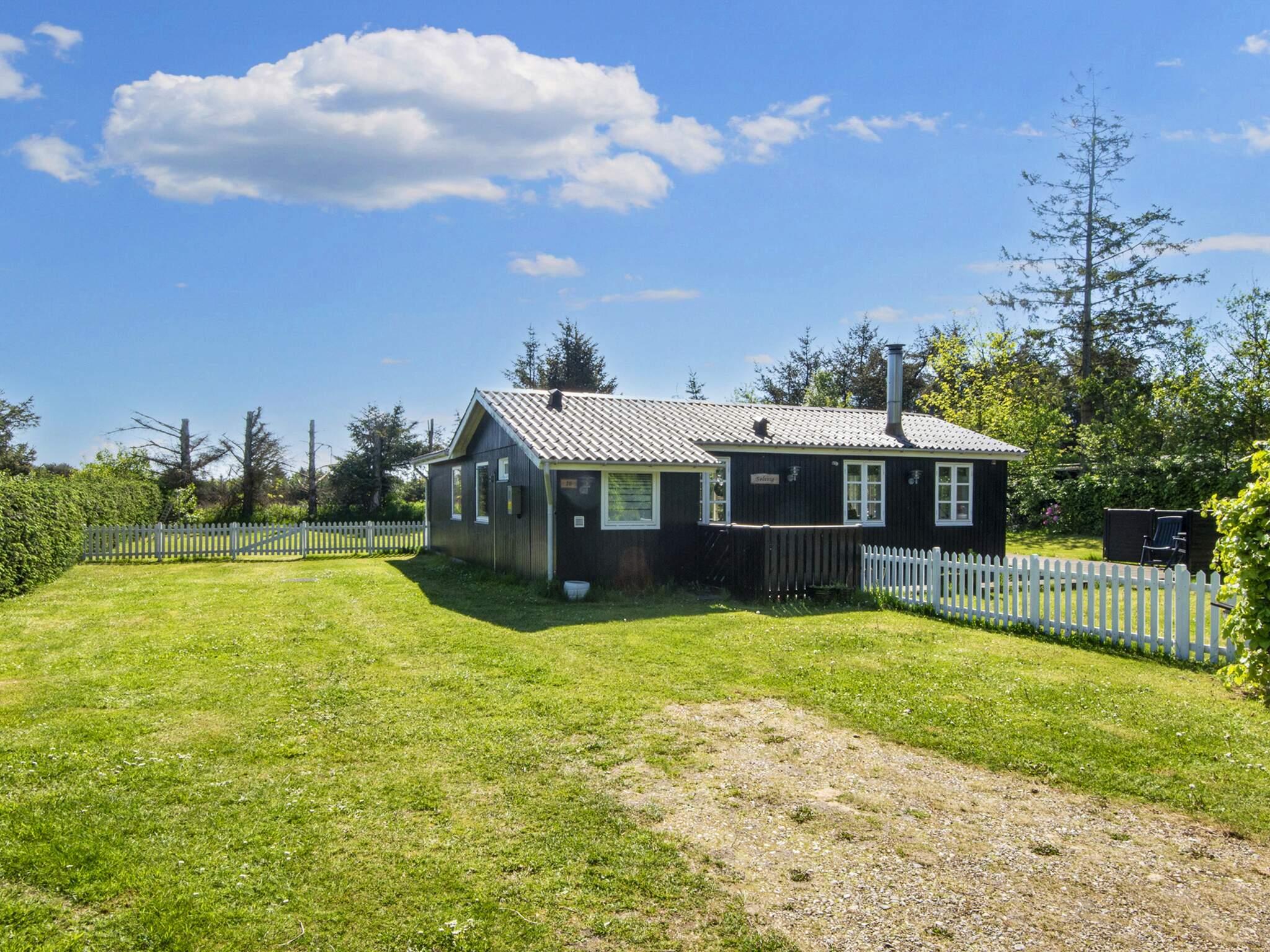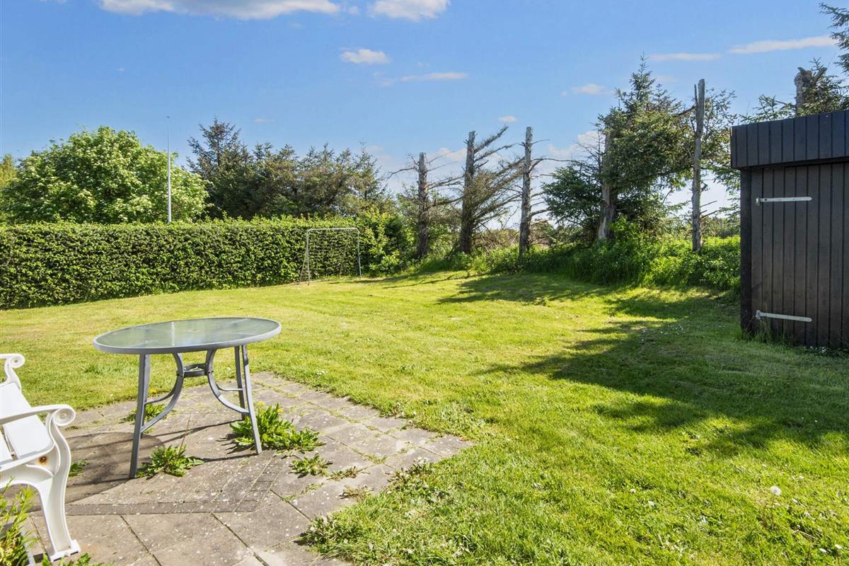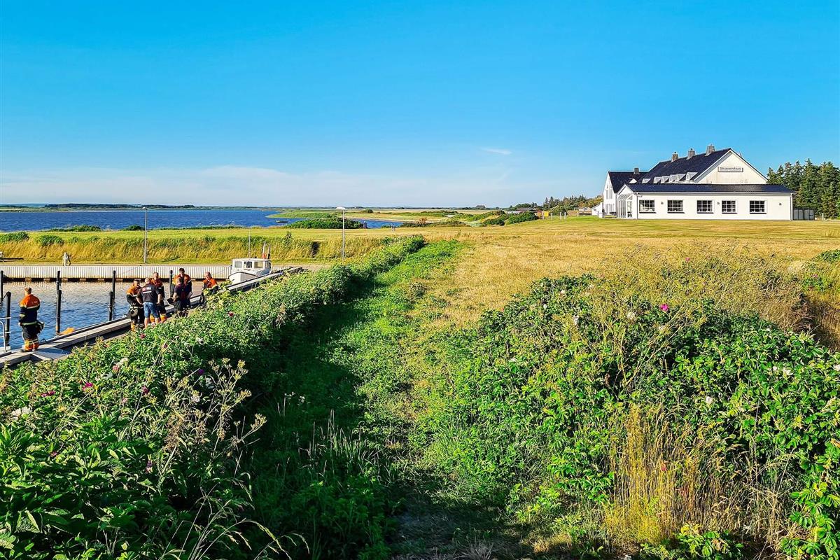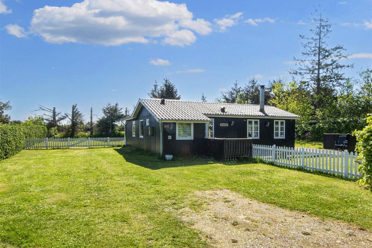 Ferienhaus bei Skaven havn, nur ca. 600 m vom Ringkøbing Fjord entfernt. Das Haus liegt schön abgeschirmt, das Grundstück grenzt zudem an ein unbebautes Feld.
