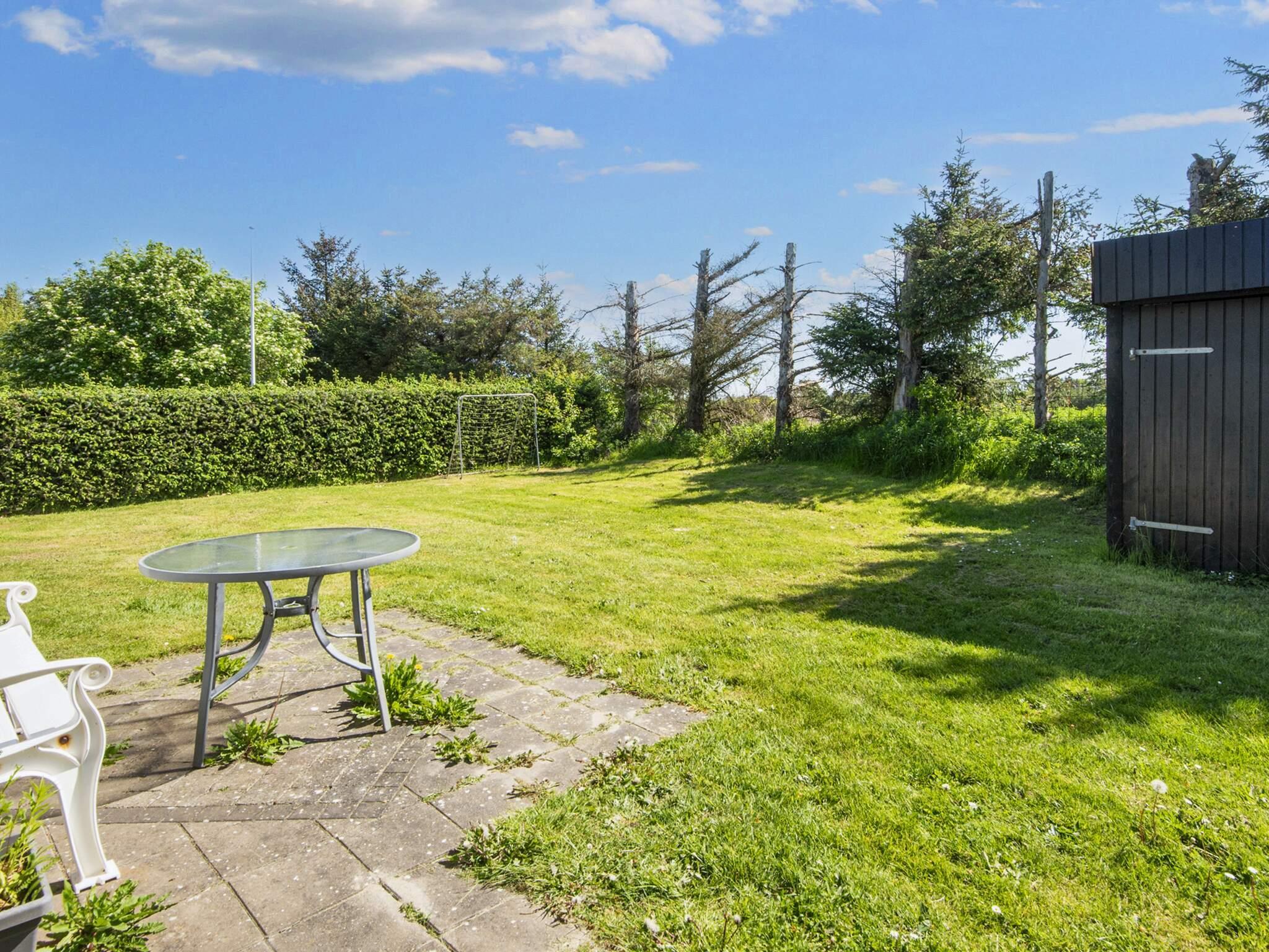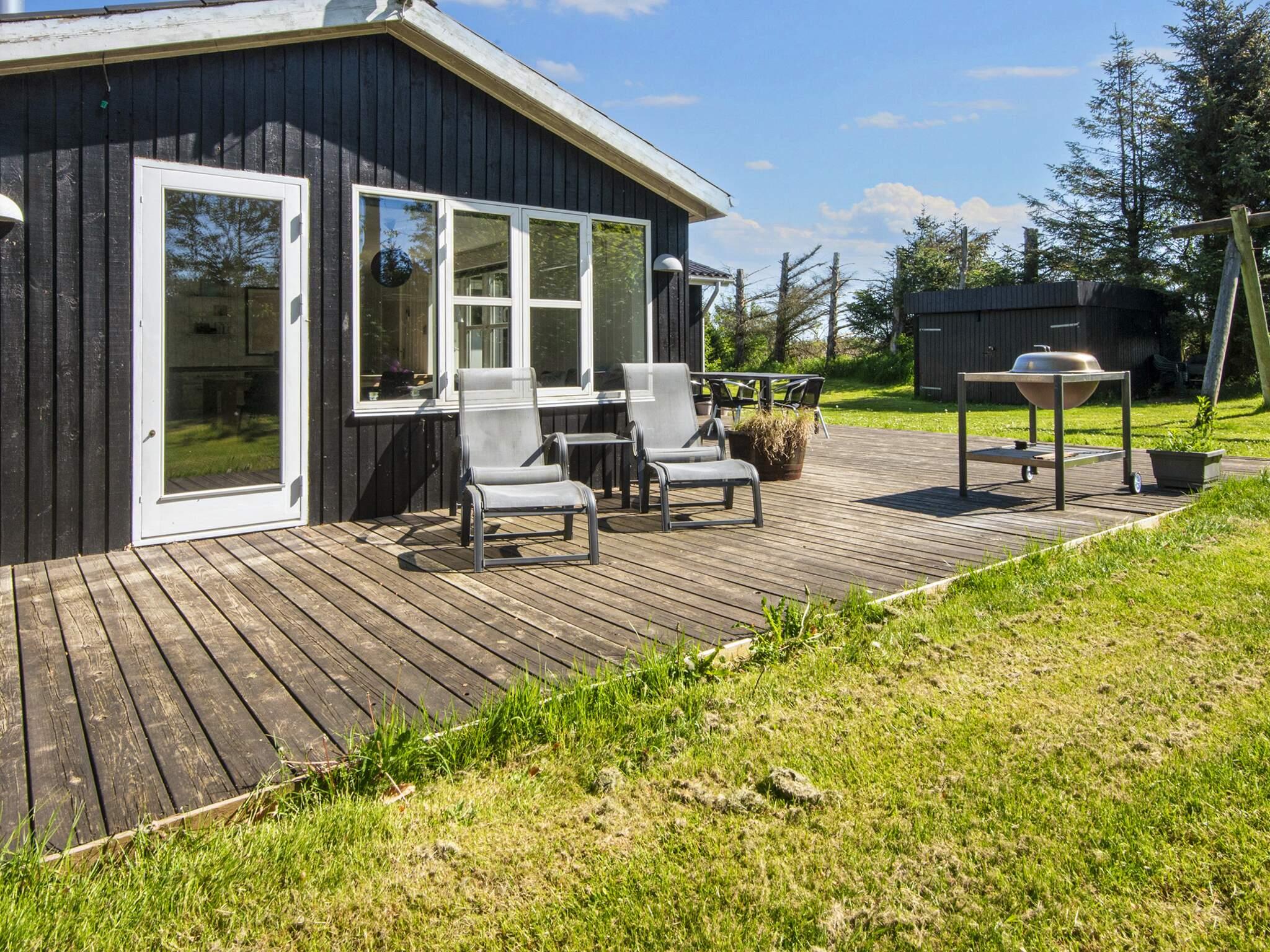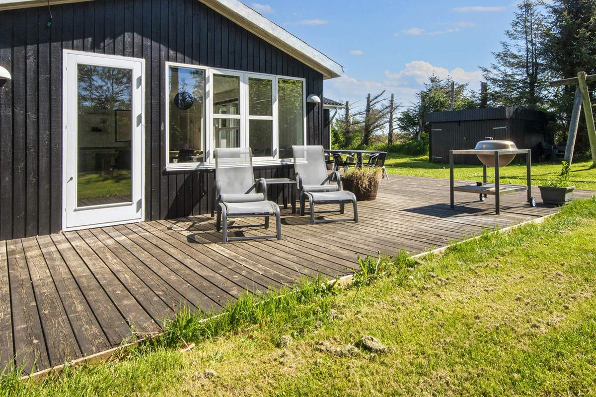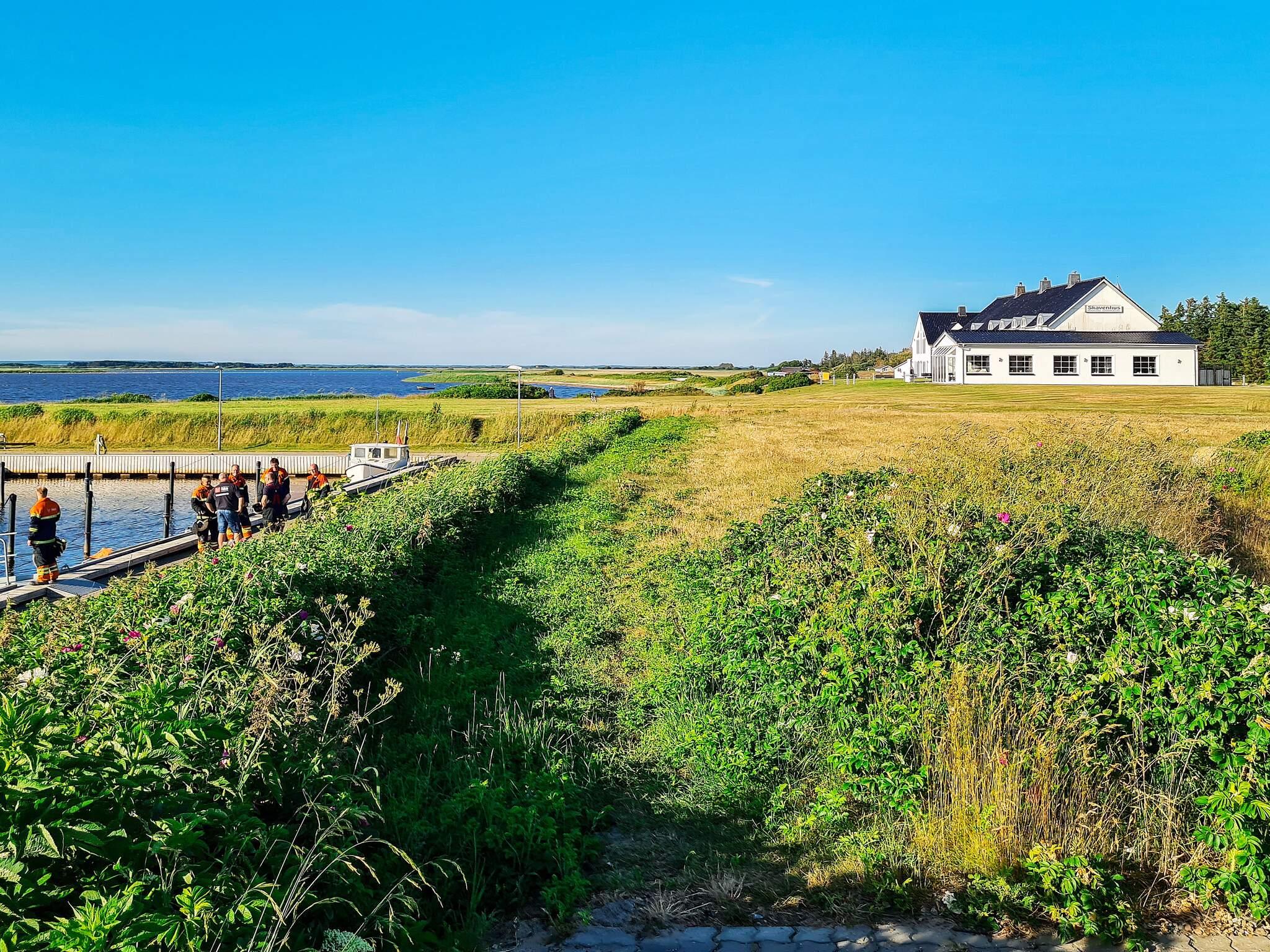 Ferienhaus bei Skaven havn, nur ca. 600 m vom Ringkøbing Fjord entfernt. Das Haus liegt schön abgeschirmt, das Grundstück grenzt zudem an ein unbebautes Feld.