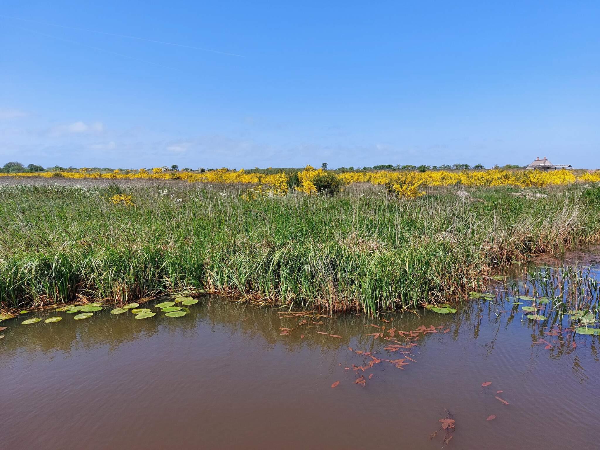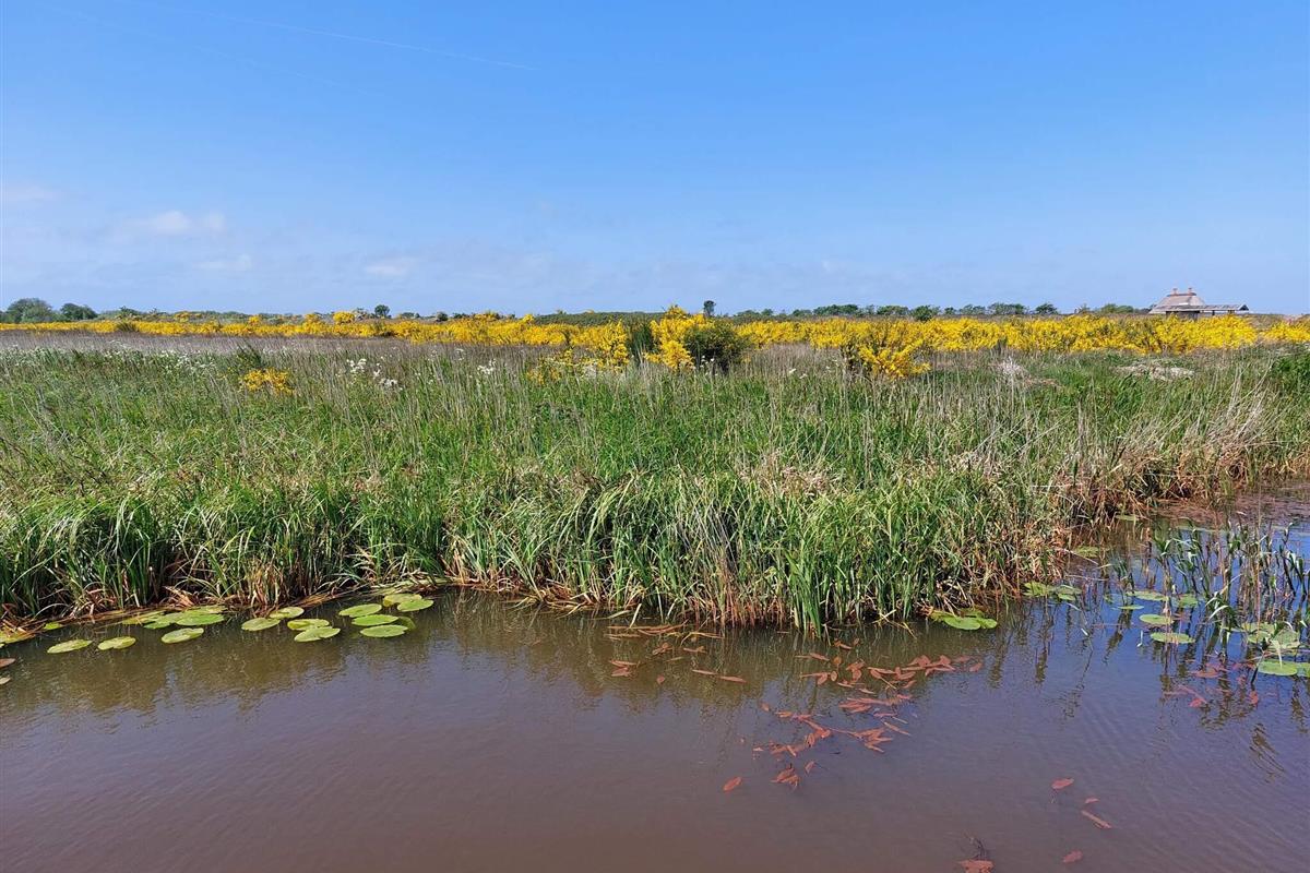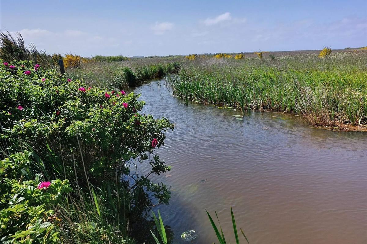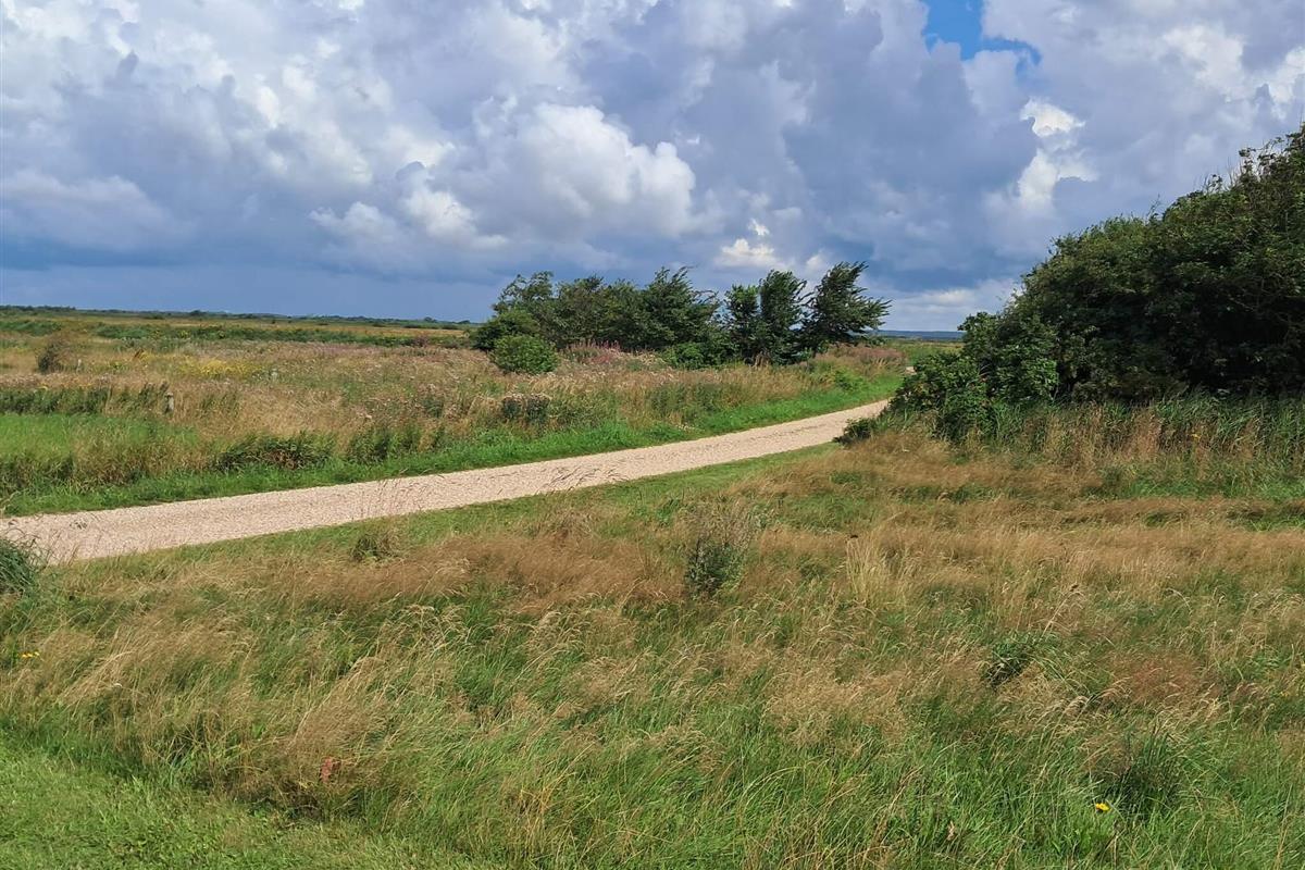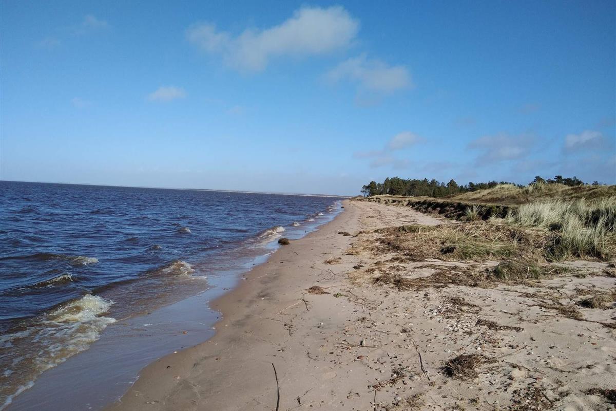 Ferienhaus bei Skaven havn, nur ca. 600 m vom Ringkøbing Fjord entfernt. Das Haus liegt schön abgeschirmt, das Grundstück grenzt zudem an ein unbebautes Feld.
