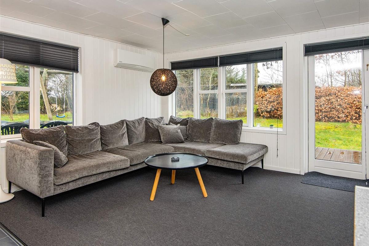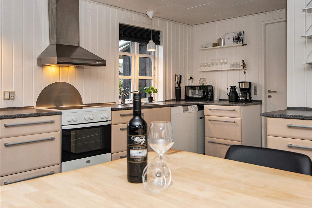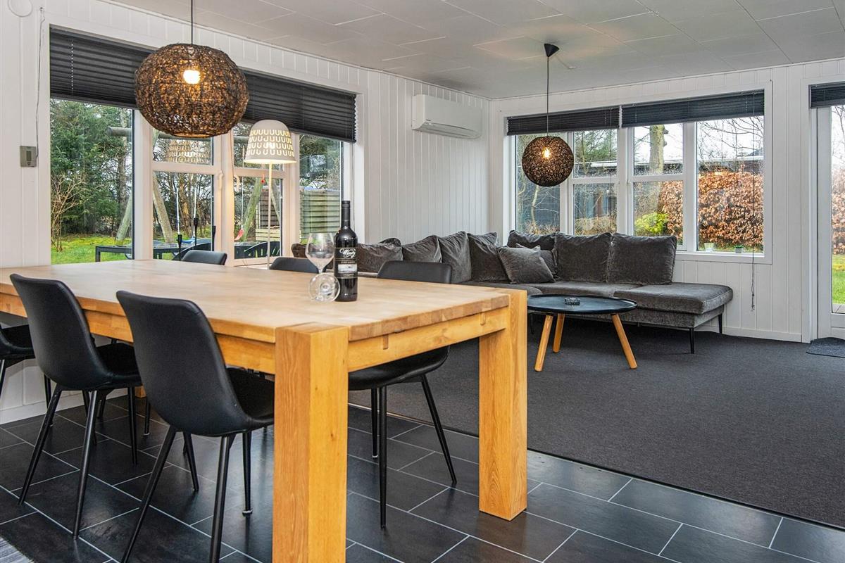 Das Ferienhaus wurde 2021 renoviert und präsentiert sich gut gepflegt. Es gibt eine große Eingangsdiele und drei Schlafzimmer. Eines der Zimmer verfügt über ein ausziehbares Bett und einen zusätzlichen Fernseher, an dem eine PlayStation 3 angeschlossen ist, sodass es auch als Spielzimmer genutzt werden kann. Der große, offene Küchen-/Wohnbereich ist wohnlich eingerichtet und bietet Platz für das Familienleben. Von hier hat man auch Zugang zur großen, sonnigen Holzterrasse. Auf dem Grundstück auch Schaukel und eine große Rasenfläche für Ballspiele etc. Das Haus verfügt nun über einen geschlossenen Zaun und ist somit ideal für Mieter mit Hunden.