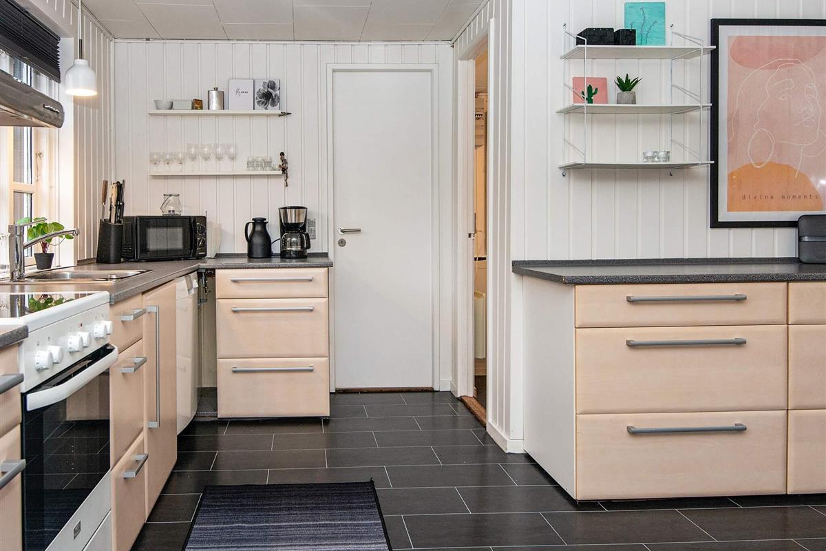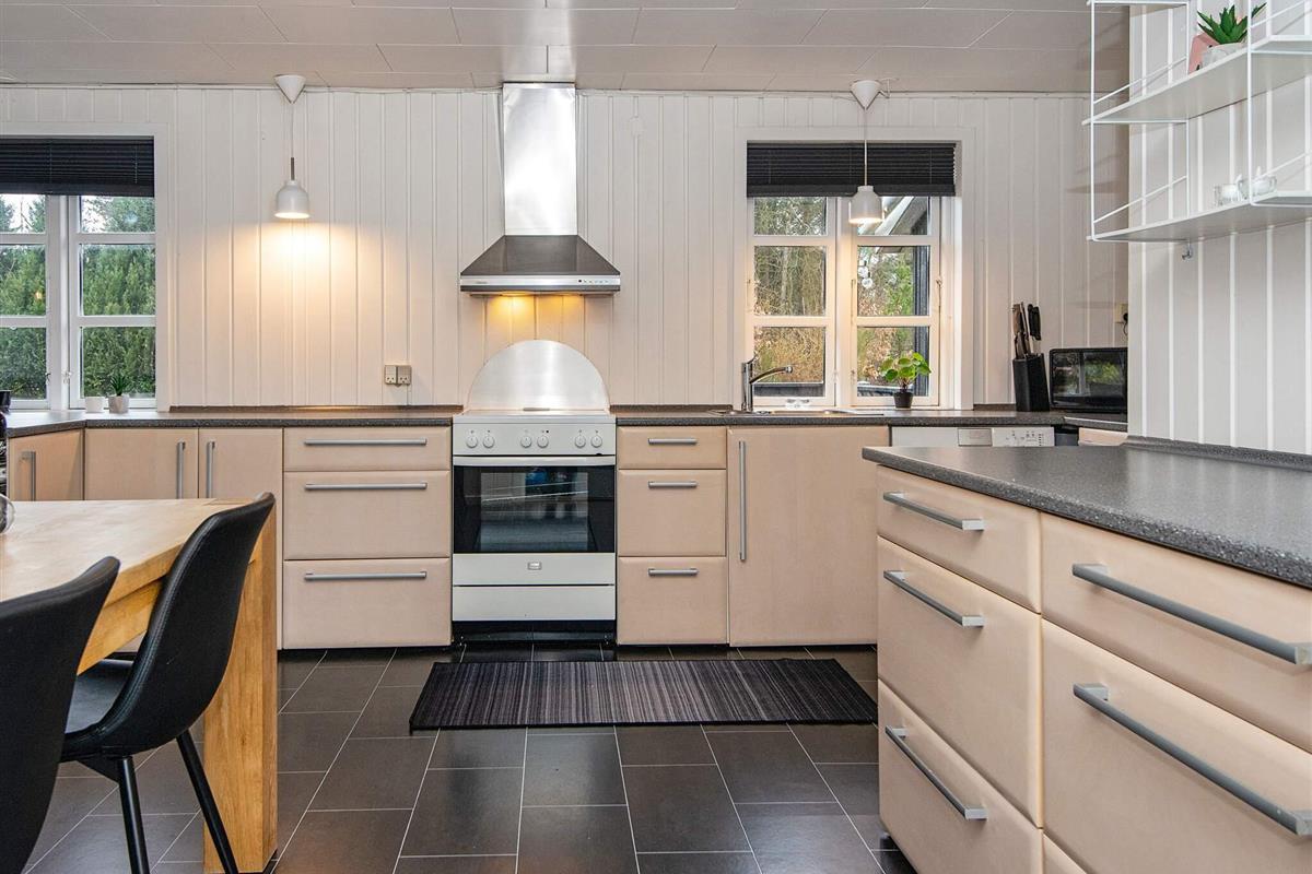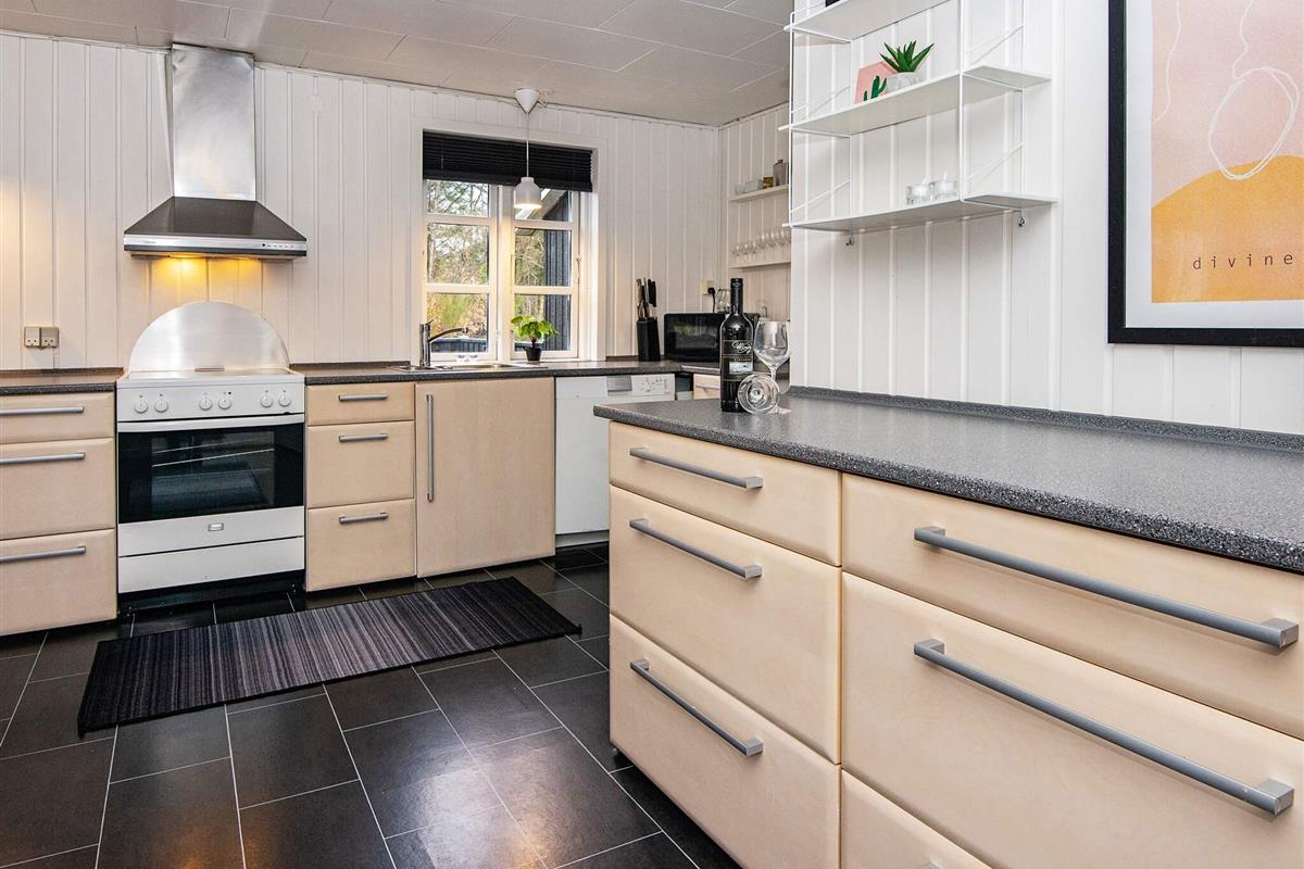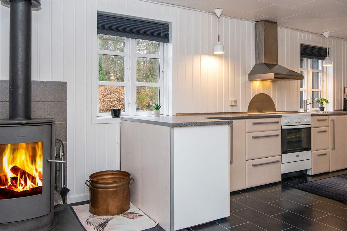 Das Ferienhaus wurde 2021 renoviert und präsentiert sich gut gepflegt. Es gibt eine große Eingangsdiele und drei Schlafzimmer. Eines der Zimmer verfügt über ein ausziehbares Bett und einen zusätzlichen Fernseher, an dem eine PlayStation 3 angeschlossen ist, sodass es auch als Spielzimmer genutzt werden kann. Der große, offene Küchen-/Wohnbereich ist wohnlich eingerichtet und bietet Platz für das Familienleben. Von hier hat man auch Zugang zur großen, sonnigen Holzterrasse. Auf dem Grundstück auch Schaukel und eine große Rasenfläche für Ballspiele etc. Das Haus verfügt nun über einen geschlossenen Zaun und ist somit ideal für Mieter mit Hunden.