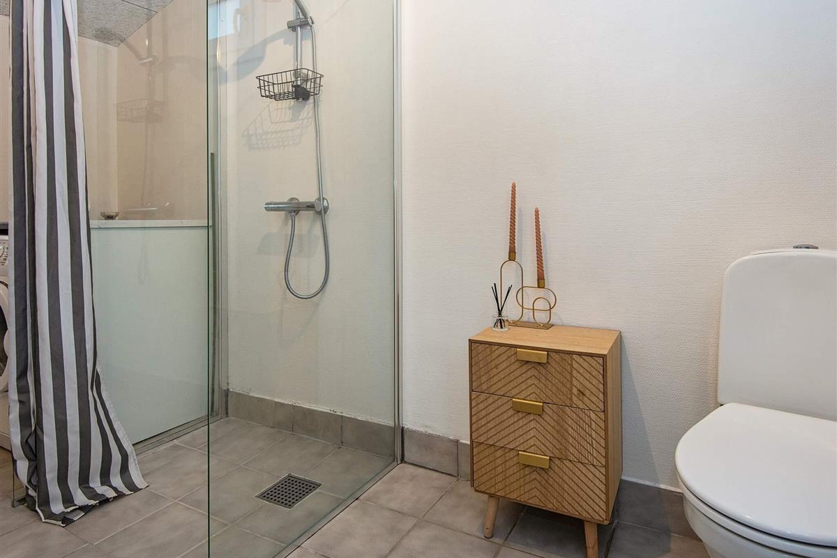 Bad: Waschm., WC, Waschb., Dusche, Fußbodenheiz.