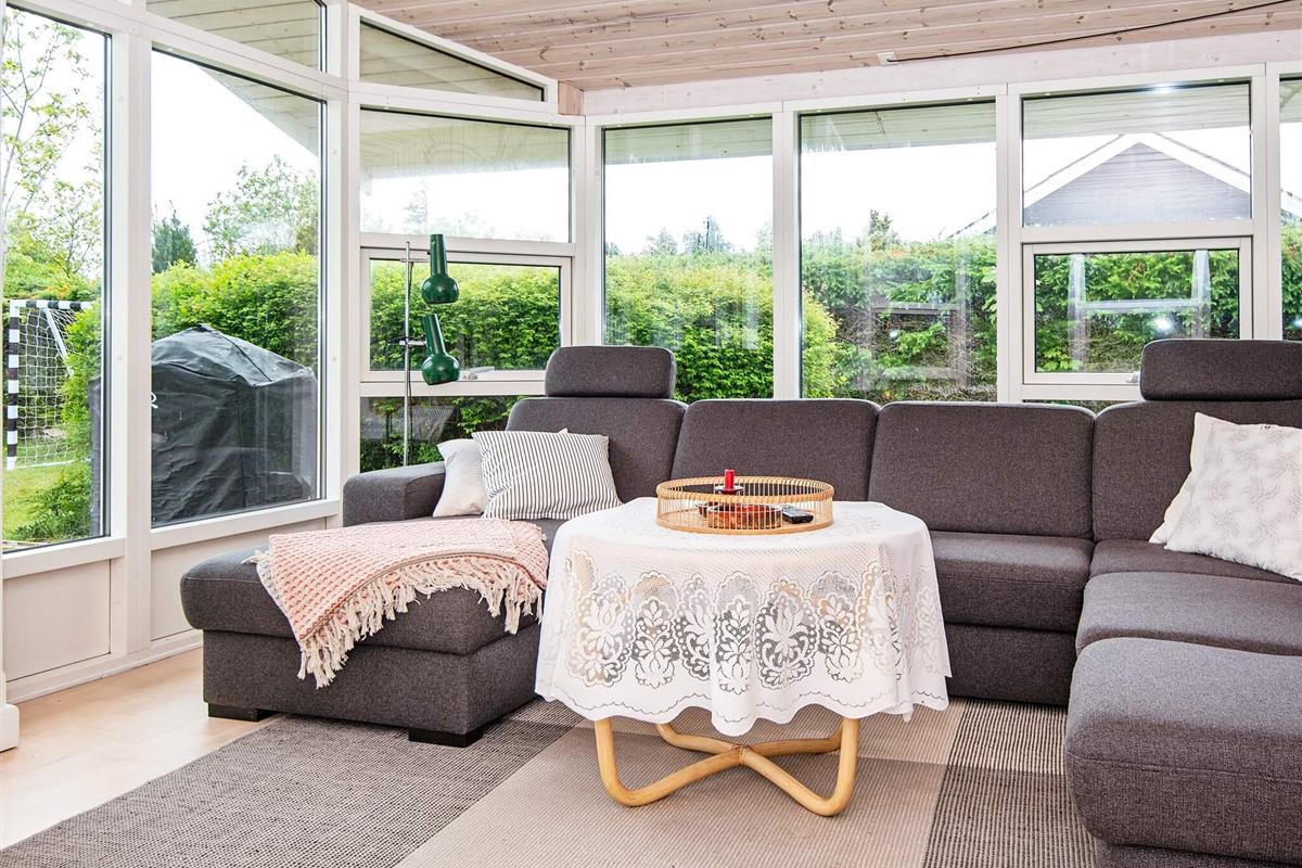 Das Haus verfügt über drei Schlafzimmer: zwei mit Doppelbetten und eines mit einem Einzelbett. Das Herzstück des Hauses bildet ein geräumiger Küchen-, Ess- und Wohnbereich, der für das Familienleben konzipiert ist. Von der Küche aus haben Sie einen freien Blick und direkten Zugang zum Wintergarten. Neben der Küche sorgt ein Spieltisch mit verschiedenen Spielen und einer Spielkonsole für stundenlange Unterhaltung. Bequeme Möbel, darunter ein Tagesbett, bieten Platz zum Entspannen und für ein Nickerchen. Das Haus ist mit einer energieeffizienten Wärmepumpe ausgestattet, die das ganze Jahr über für eine angenehme Innentemperatur sorgt.