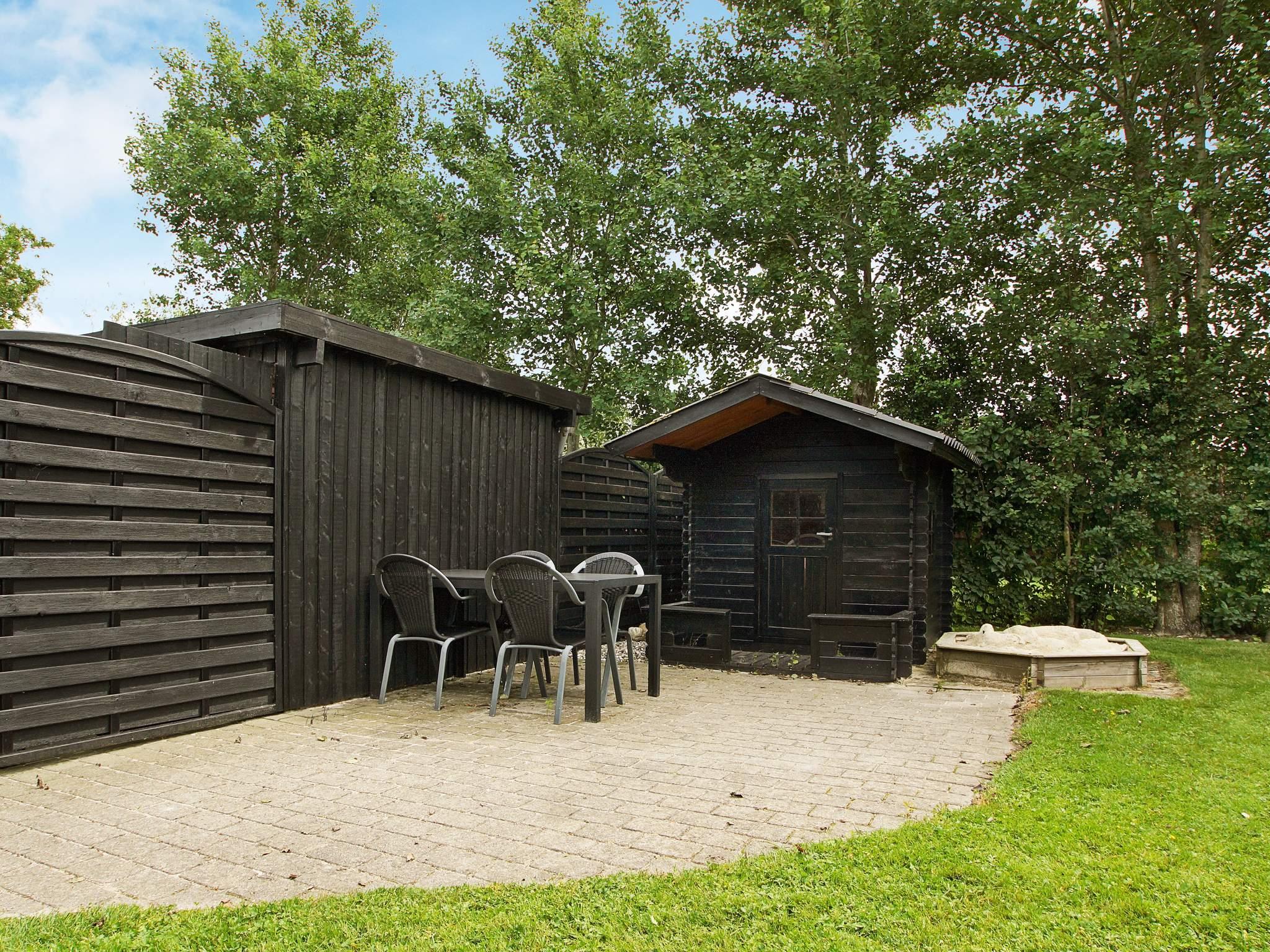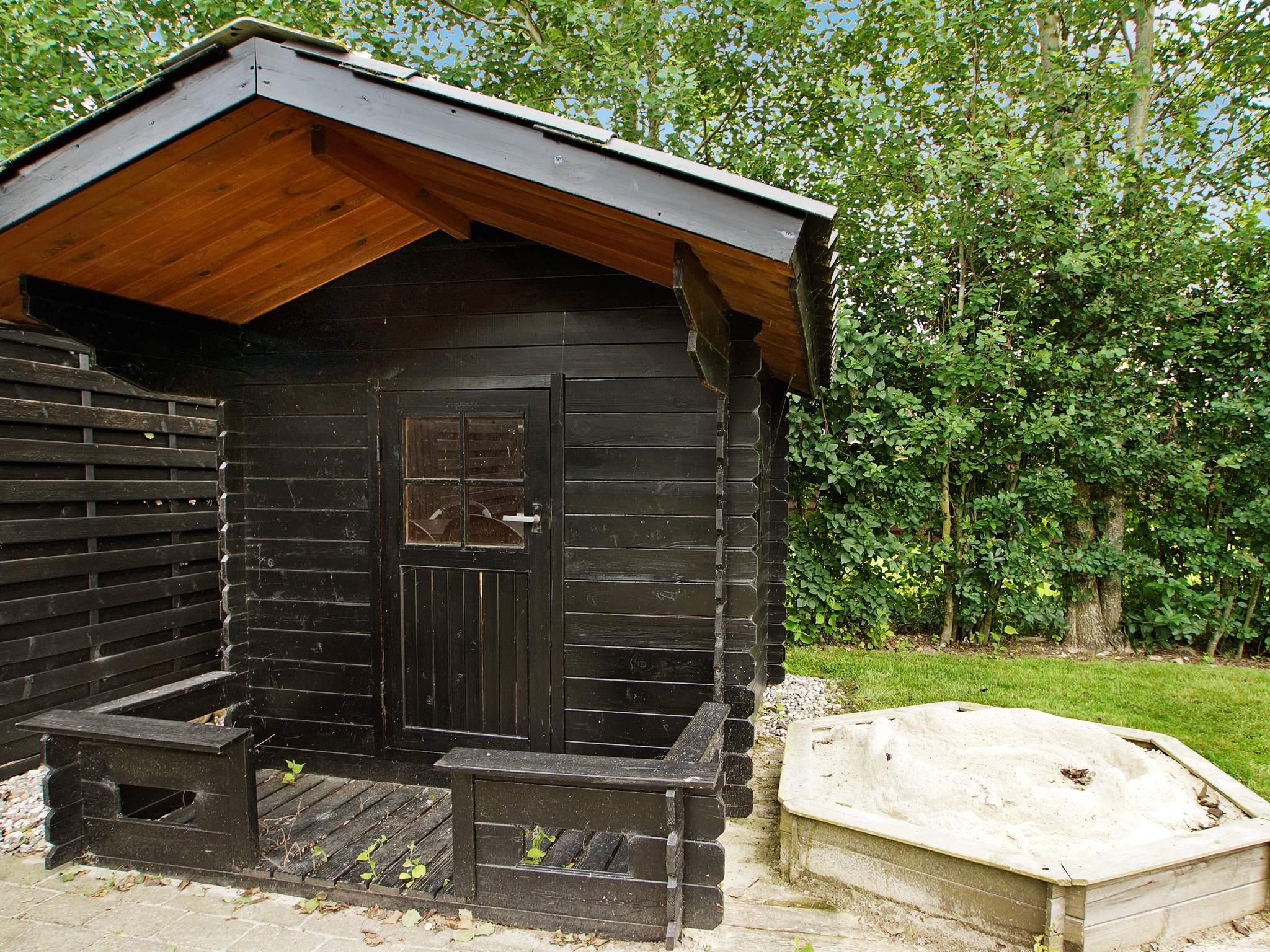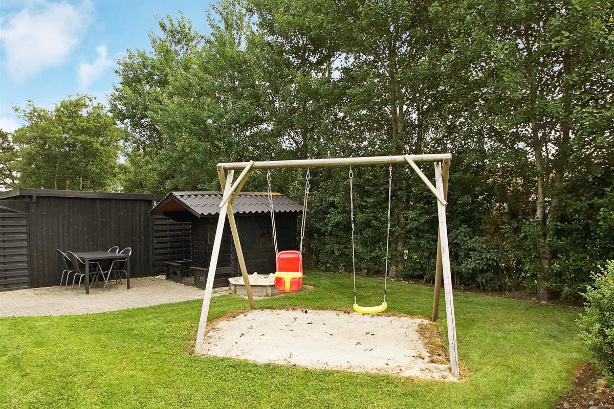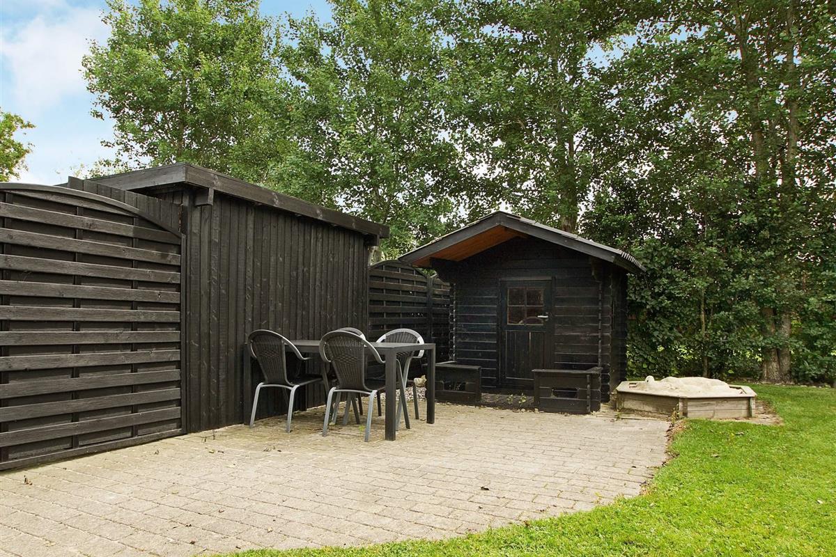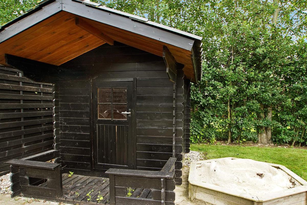 Terrasse mit Sandkasten und Spielhäuschen. Im Geräteraum finden Sie