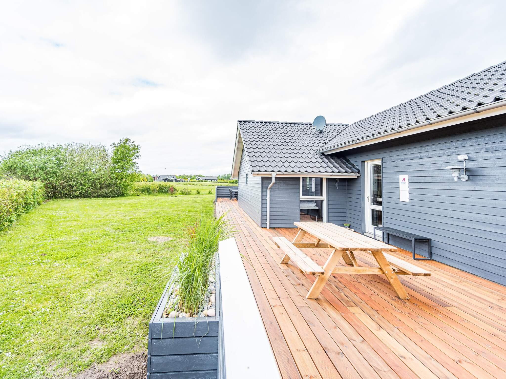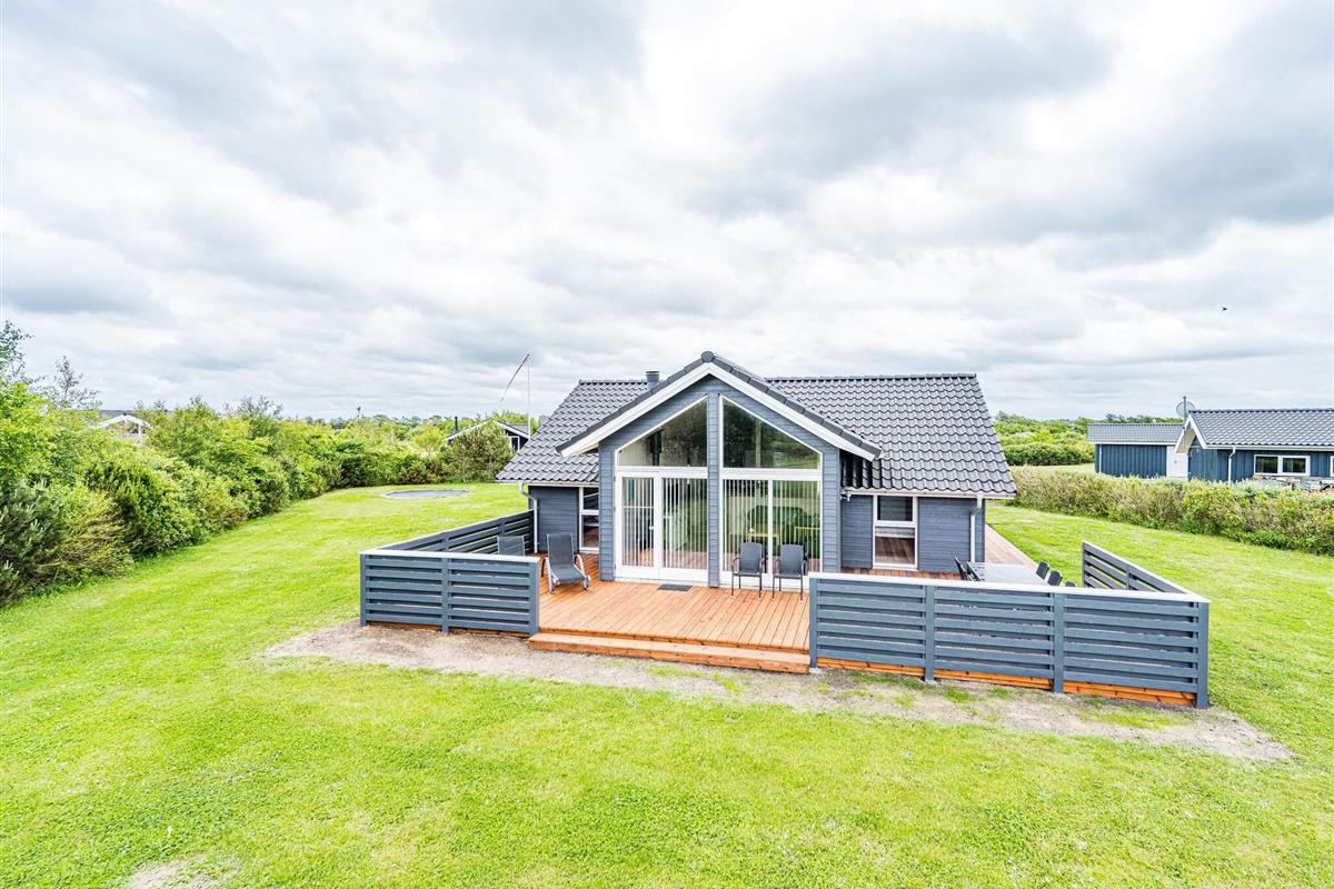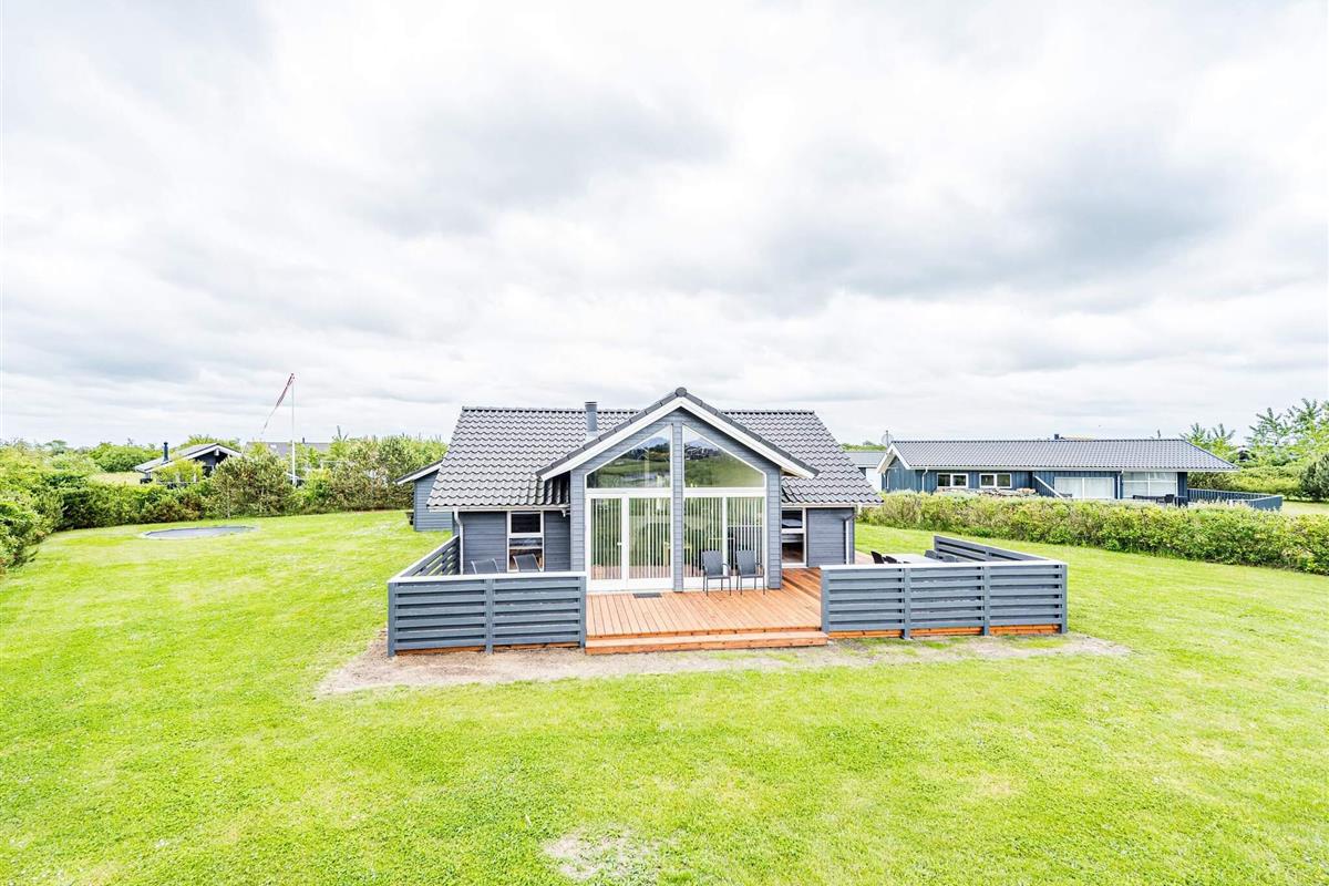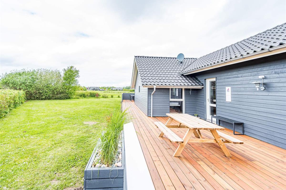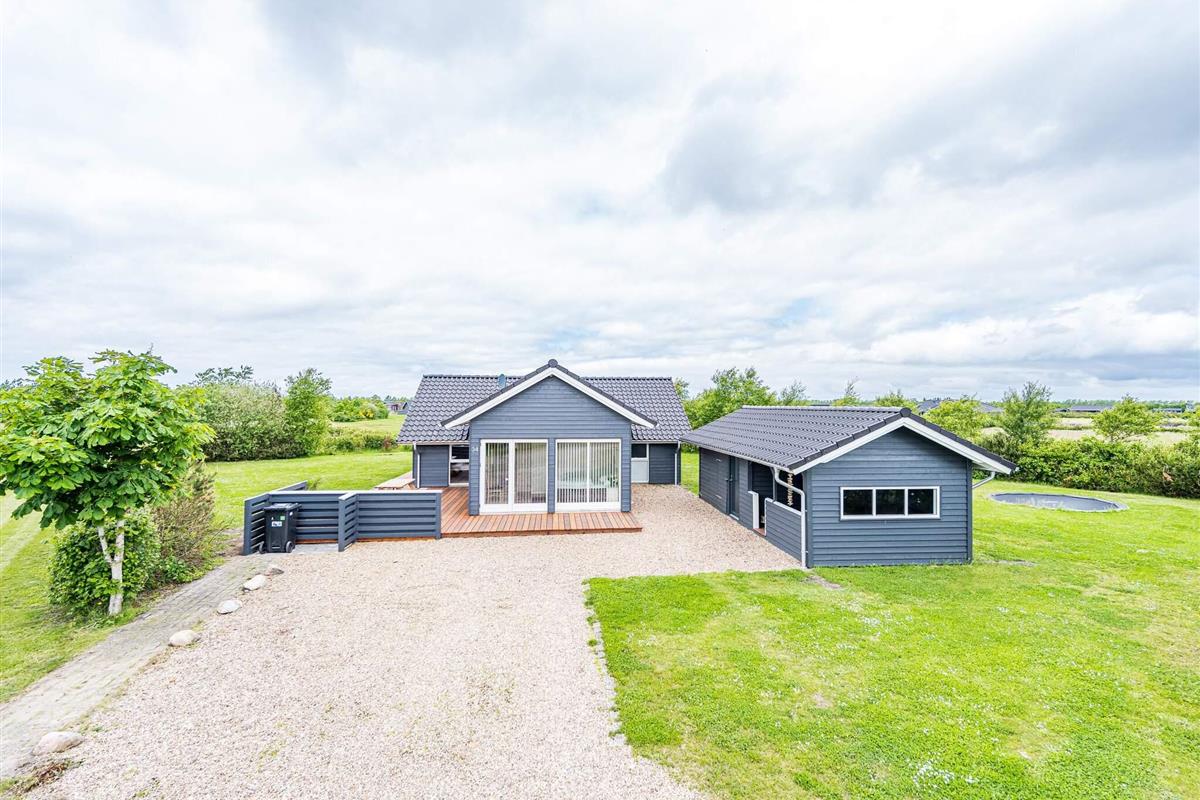 Im Außenbereich findet man eine weitläufige Terrassenfläche mit mehreren gemütlichen Sitzecken. Sie wohnen hier unweit der Küste von Skaven Strand, auf einem schönen, großen Rasengrundstück mit Gartentrampolin (Nutzung nur auf eigenes Risiko) sowie Platz für Spiel und Sport an der frischen Luft.