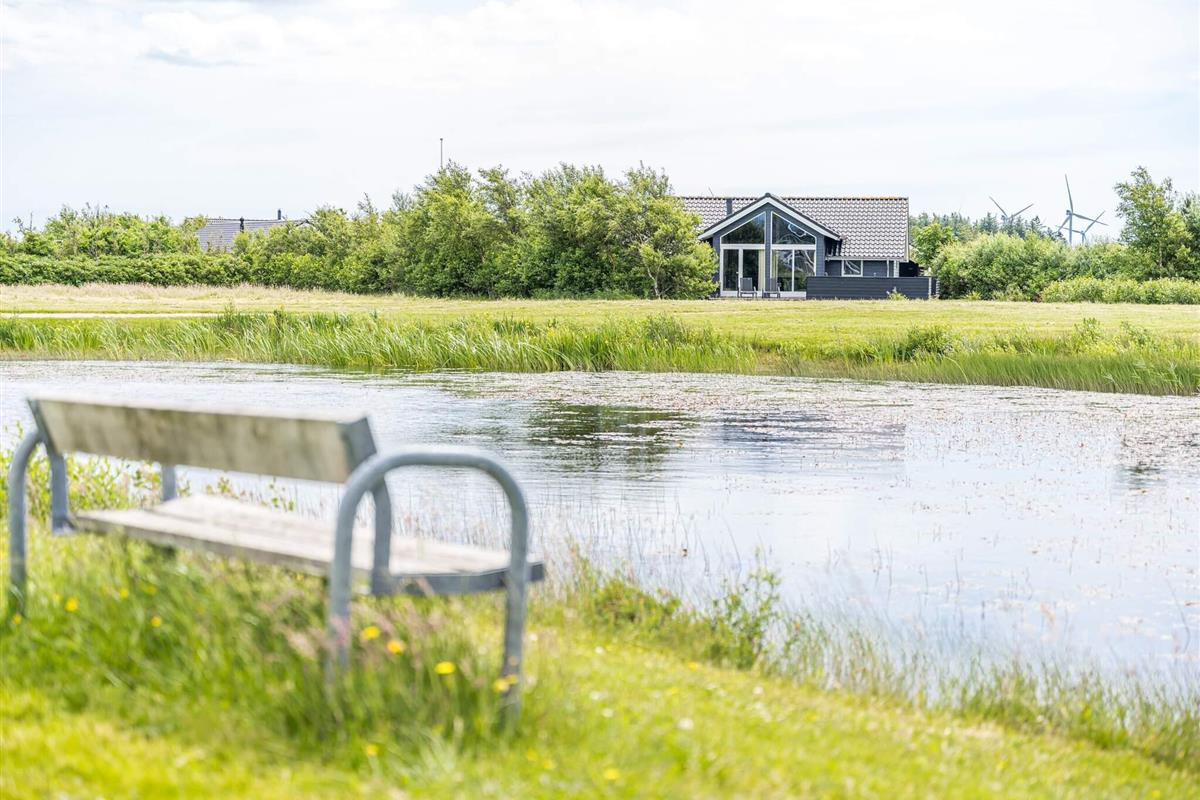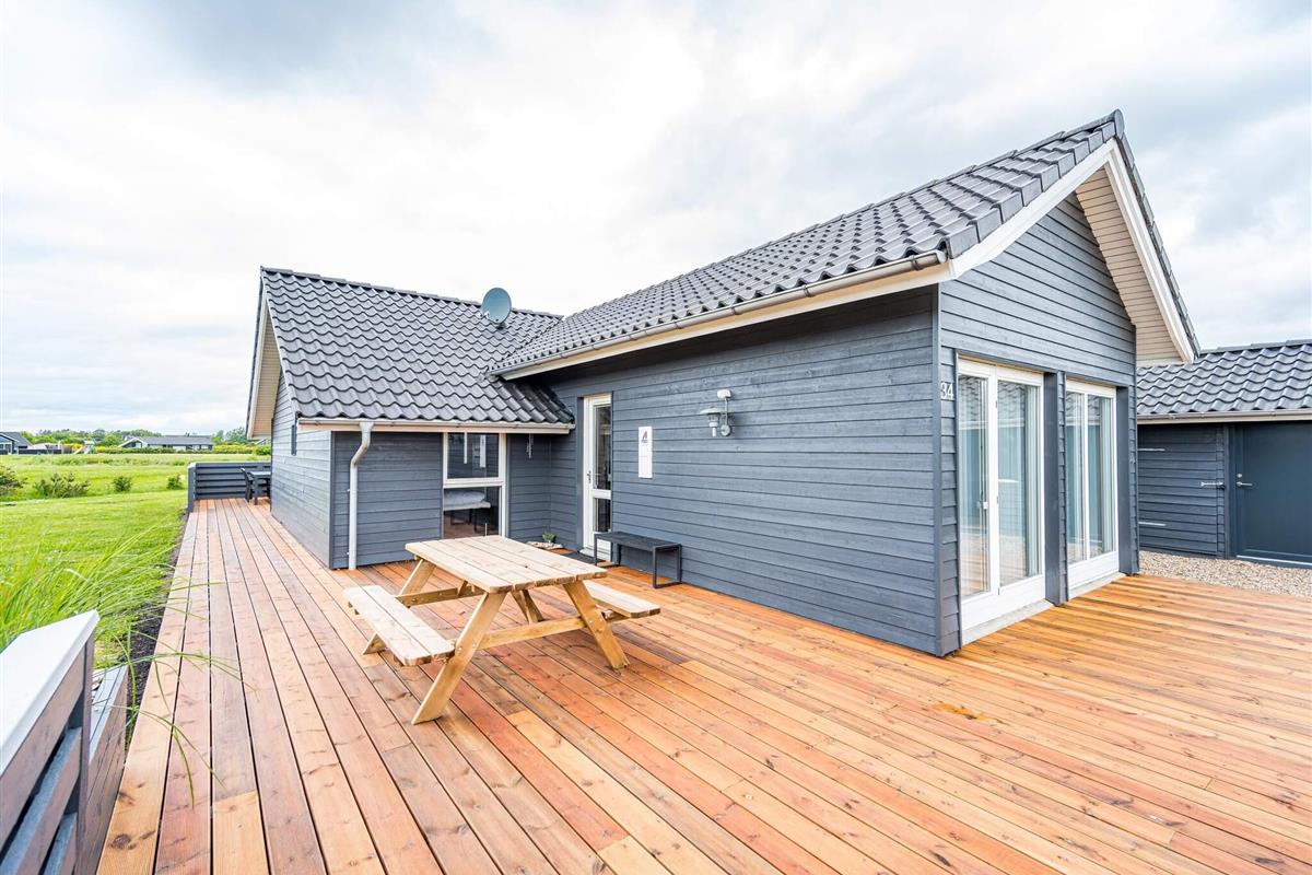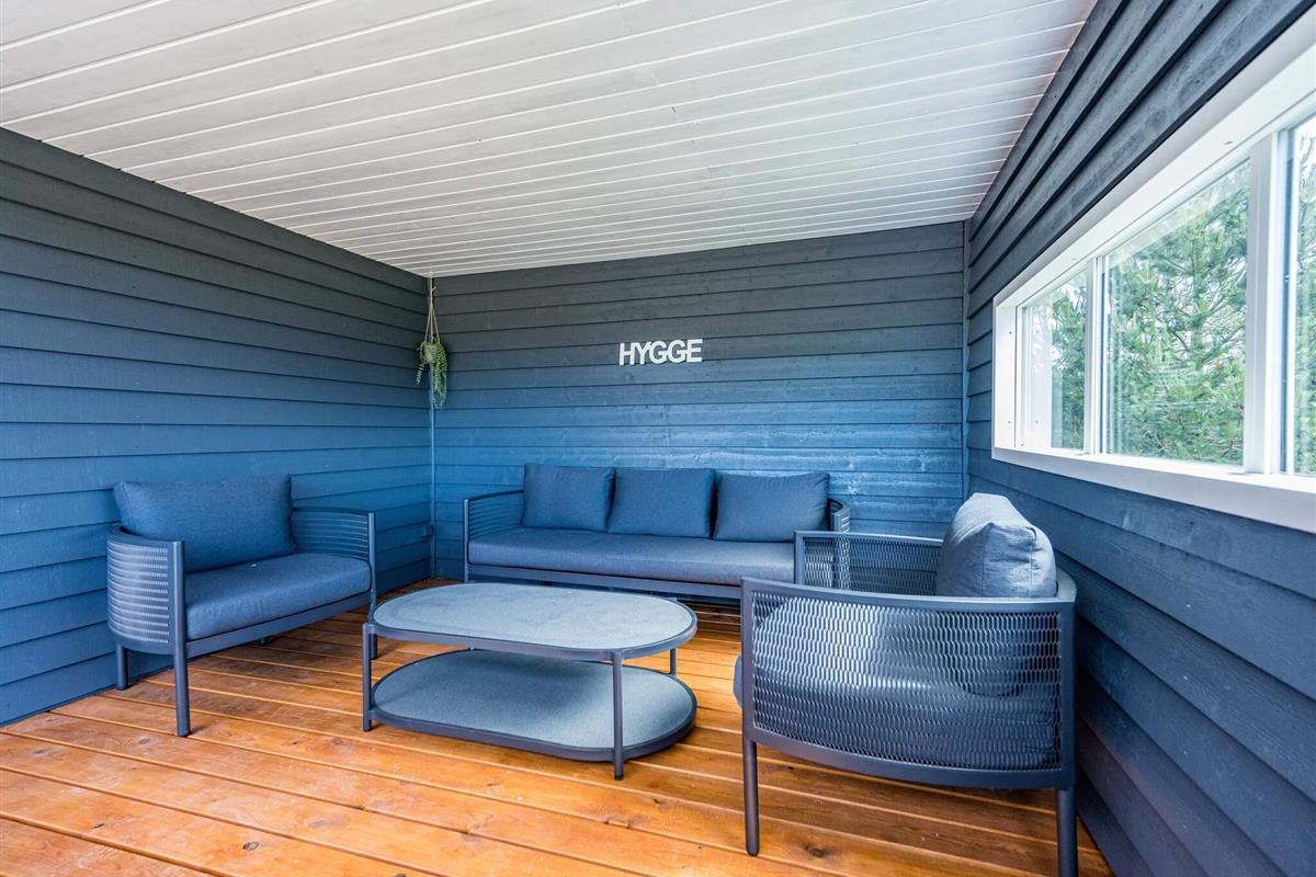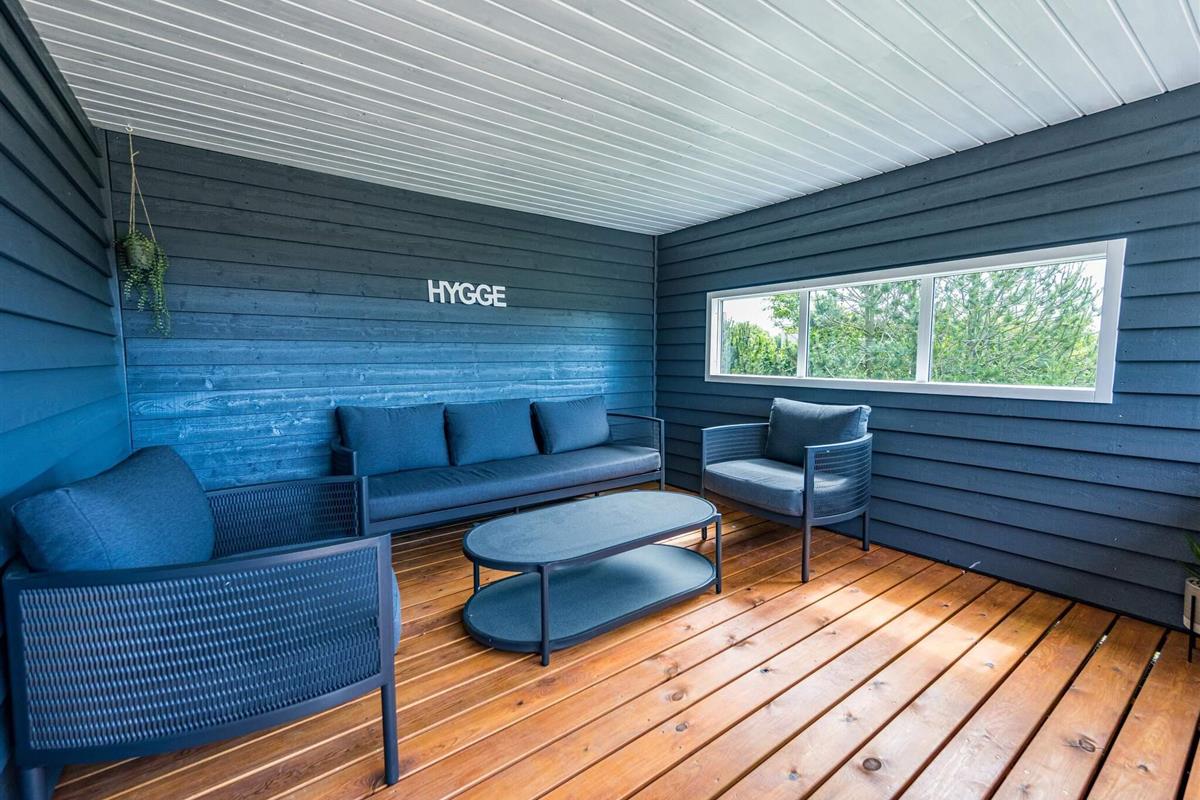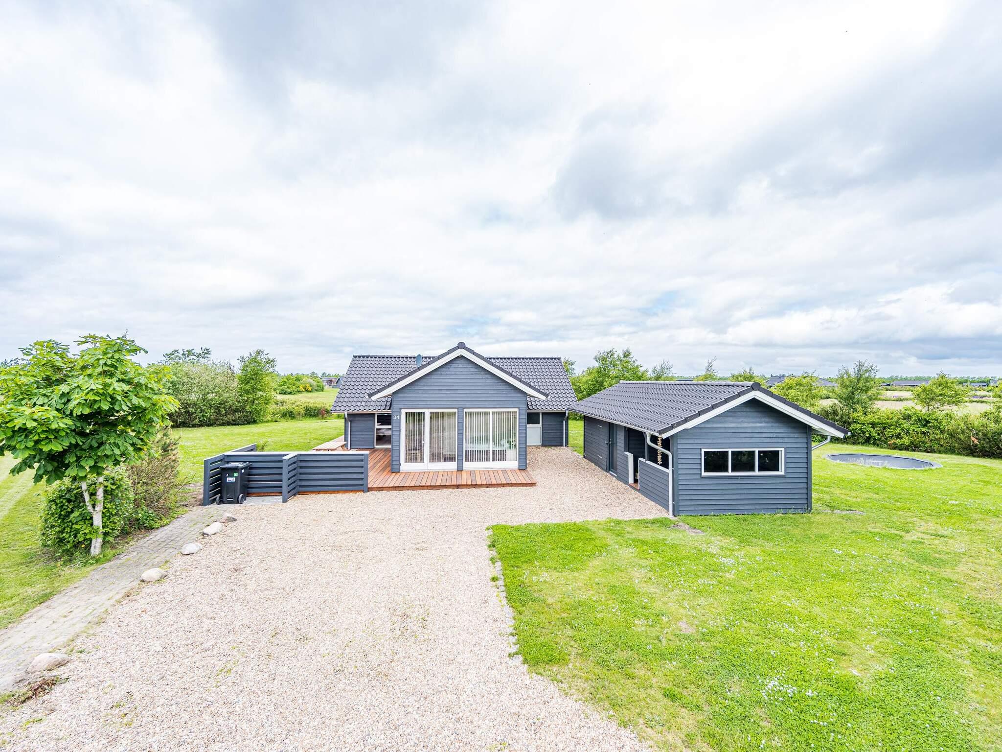 Im Außenbereich findet man eine weitläufige Terrassenfläche mit mehreren gemütlichen Sitzecken. Sie wohnen hier unweit der Küste von Skaven Strand, auf einem schönen, großen Rasengrundstück mit Gartentrampolin (Nutzung nur auf eigenes Risiko) sowie Platz für Spiel und Sport an der frischen Luft.