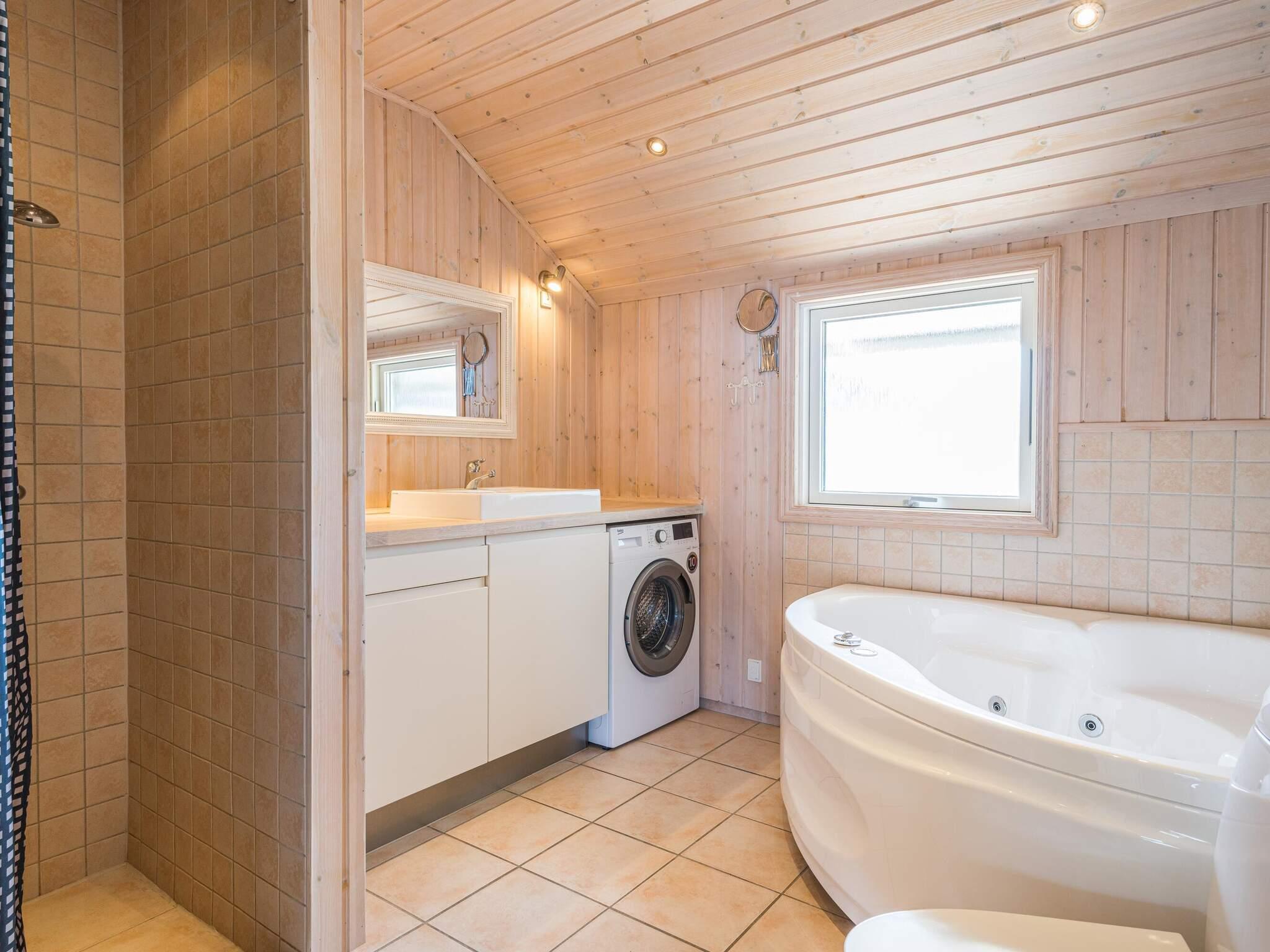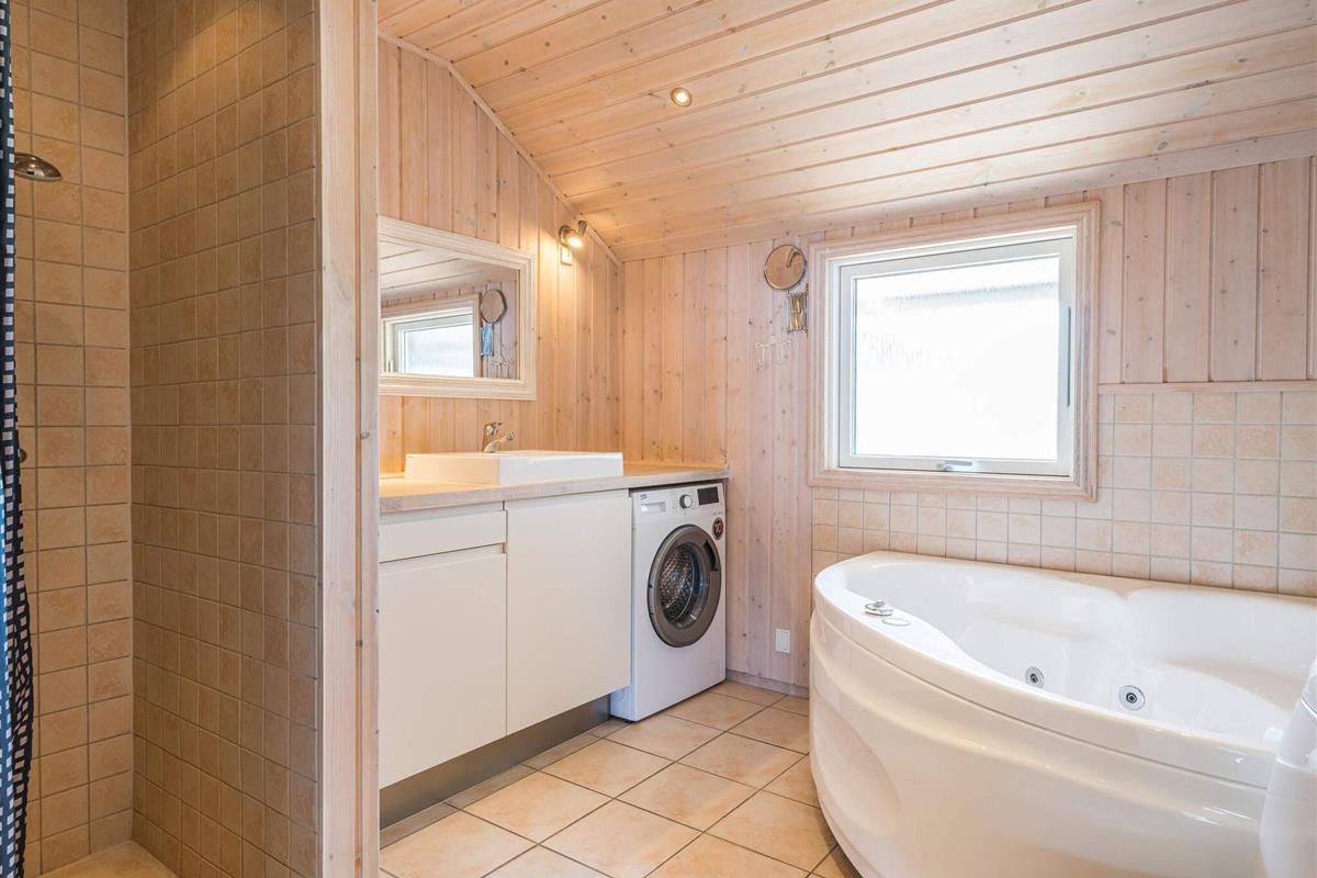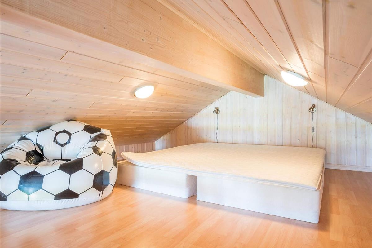 Im Ferienhaus stehen auch zwei Badezimmer bereit, das größere mit Whirlpool und Sauna zur Erholung. Darüber hinaus gibt es vier schöne Schlafzimmer mit jeweils einem Doppelbett im Haus. Oben unter der Dachschräge können sich die Kinder auf dem Hems vergnügen.