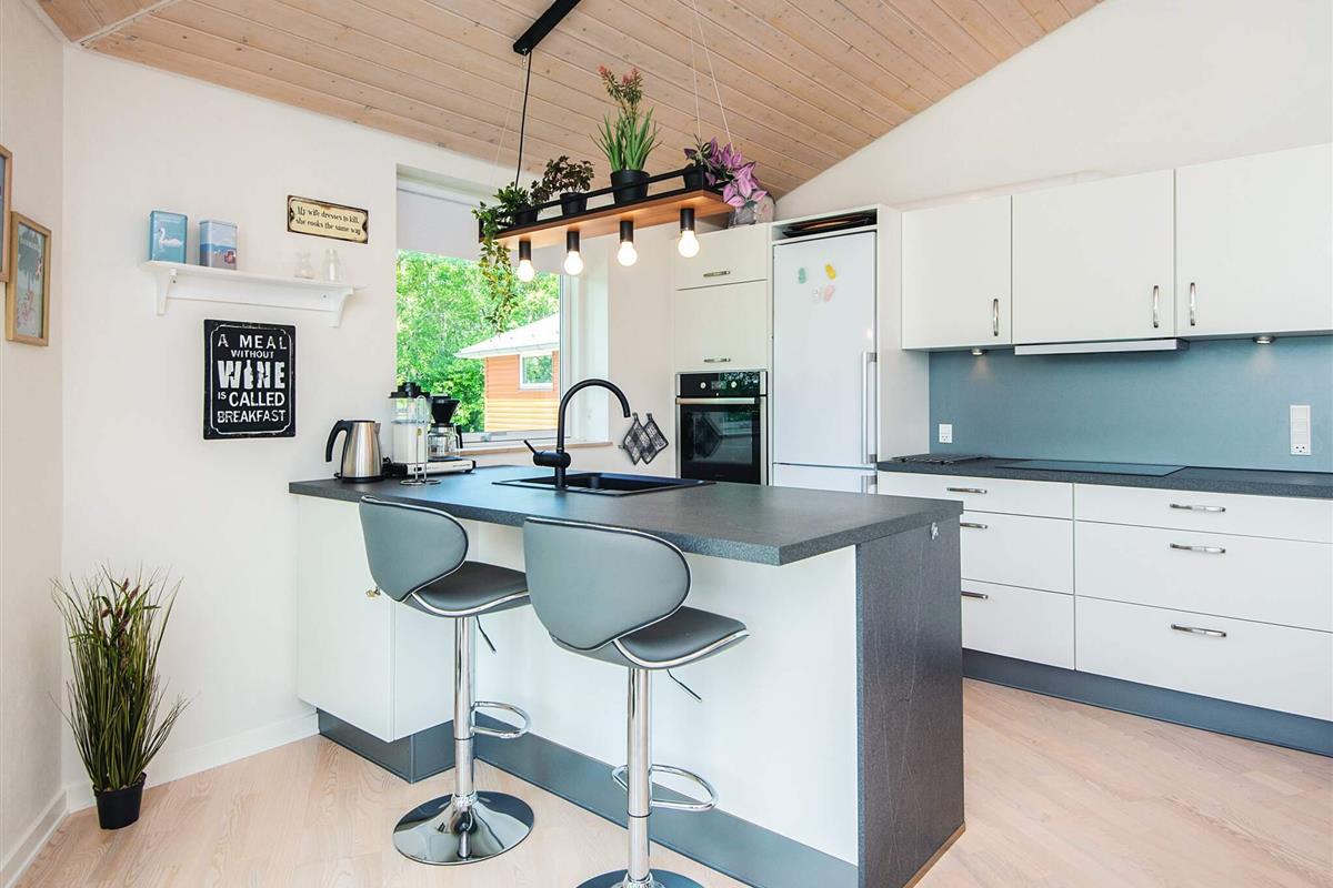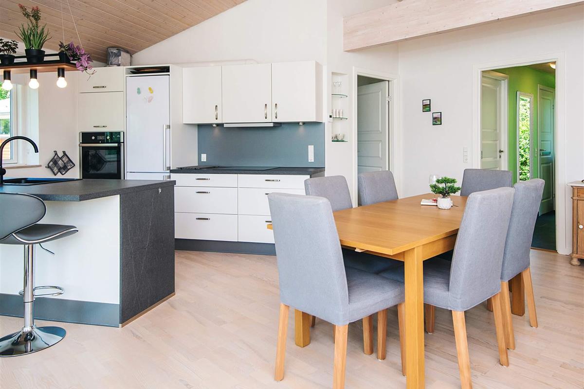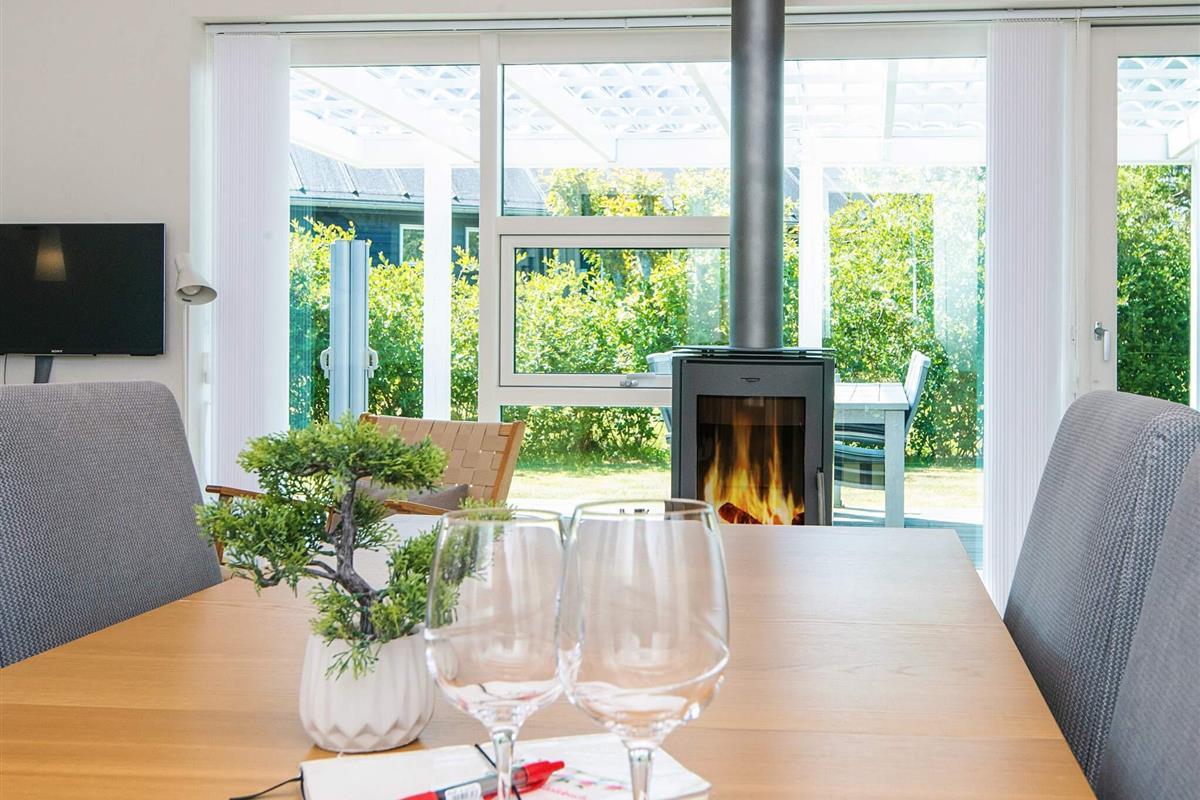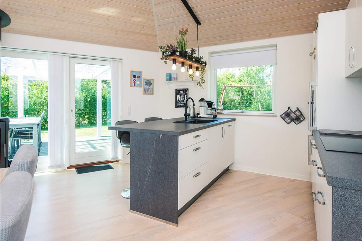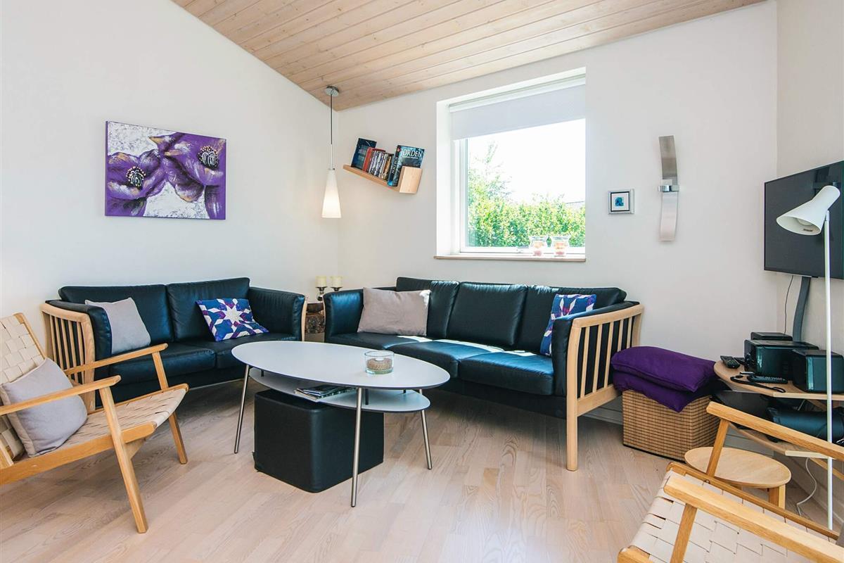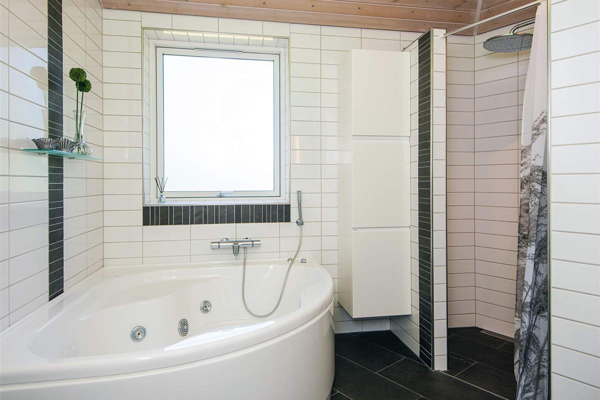 In einem Naturgebiet auf einem Grundstück mit schönen Bäumen liegt dieses sechseckige und gemütliche Ferienhaus in Skaven Strand. Das Ferienhaus hat Wohnzimmer und Küche in offener Verbindung miteinander und mit dem Kaminofen zentral plaziert. Alle Zimmer sind gemütlich und geräumig. Im Wohnzimmer ist Zugang auf der schönen Terrasse, die mit sehr vielen schönen Gartenmöbeln ausgestattet ist, sowie gute Windschutzzäune die nach Bedarf und Windrichtung zugezogen werden können. Im schönen Badezimmer ist der Whrilpool, in dem Sie sich richtig entspannen können. Endreinigung ist im Preis enthalten!