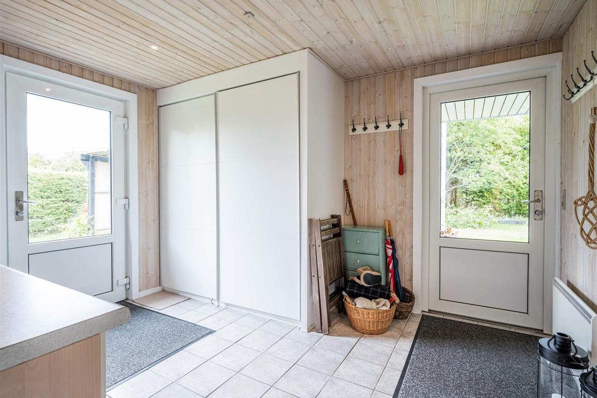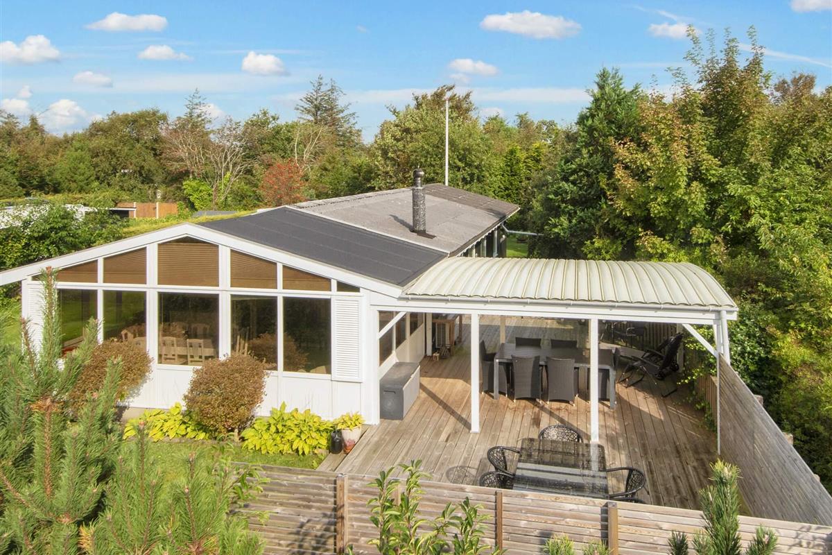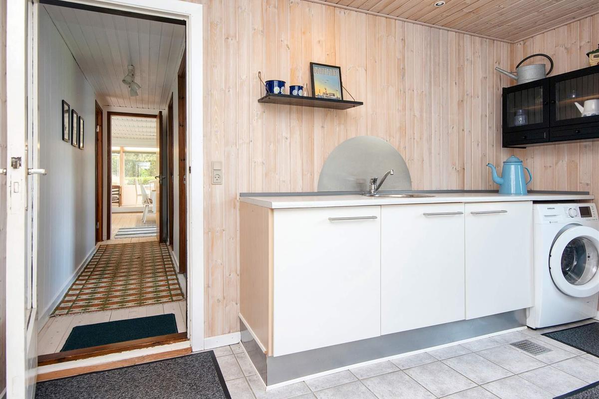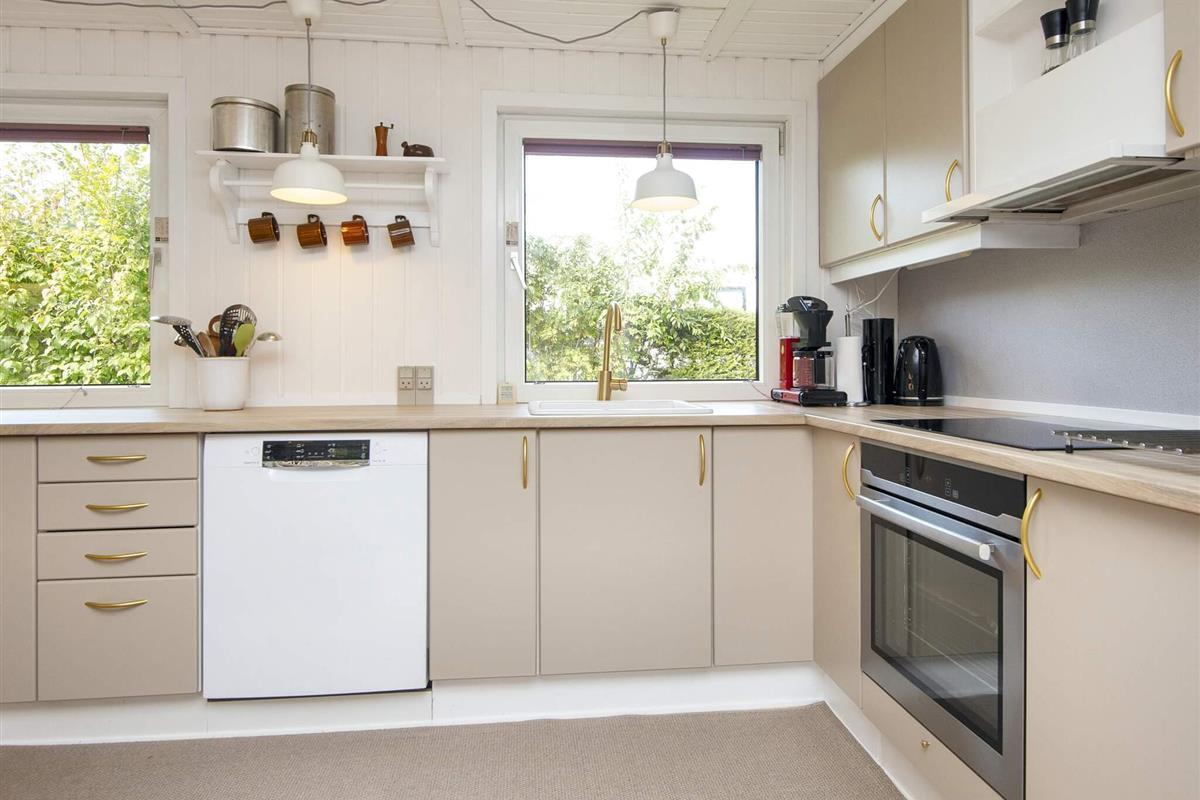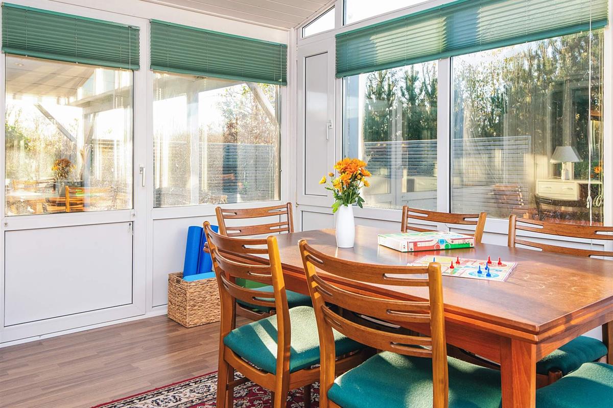 Gemütliches Ferienhaus nur 400 Meter vom Wasser entfernt, im alten und charmanten Teil von Skaven Strand. Das Haus verfügt über ein helles und einladendes Wohnzimmer mit offener Verbindung zur Küche und zum Essbereich, der um einen Holzofen herum angeordnet ist. Vom Wohnzimmer aus gelangt man in den hellen und luftigen Wintergarten, der direkt auf eine große, teilweise überdachte Holzterrasse mit Gartenmöbeln führt – ideal zum Entspannen oder Essen im Freien.