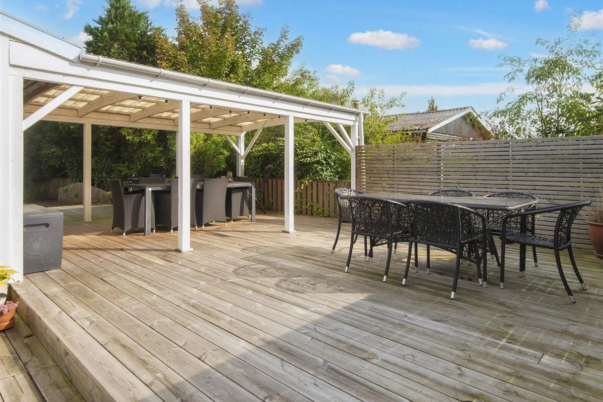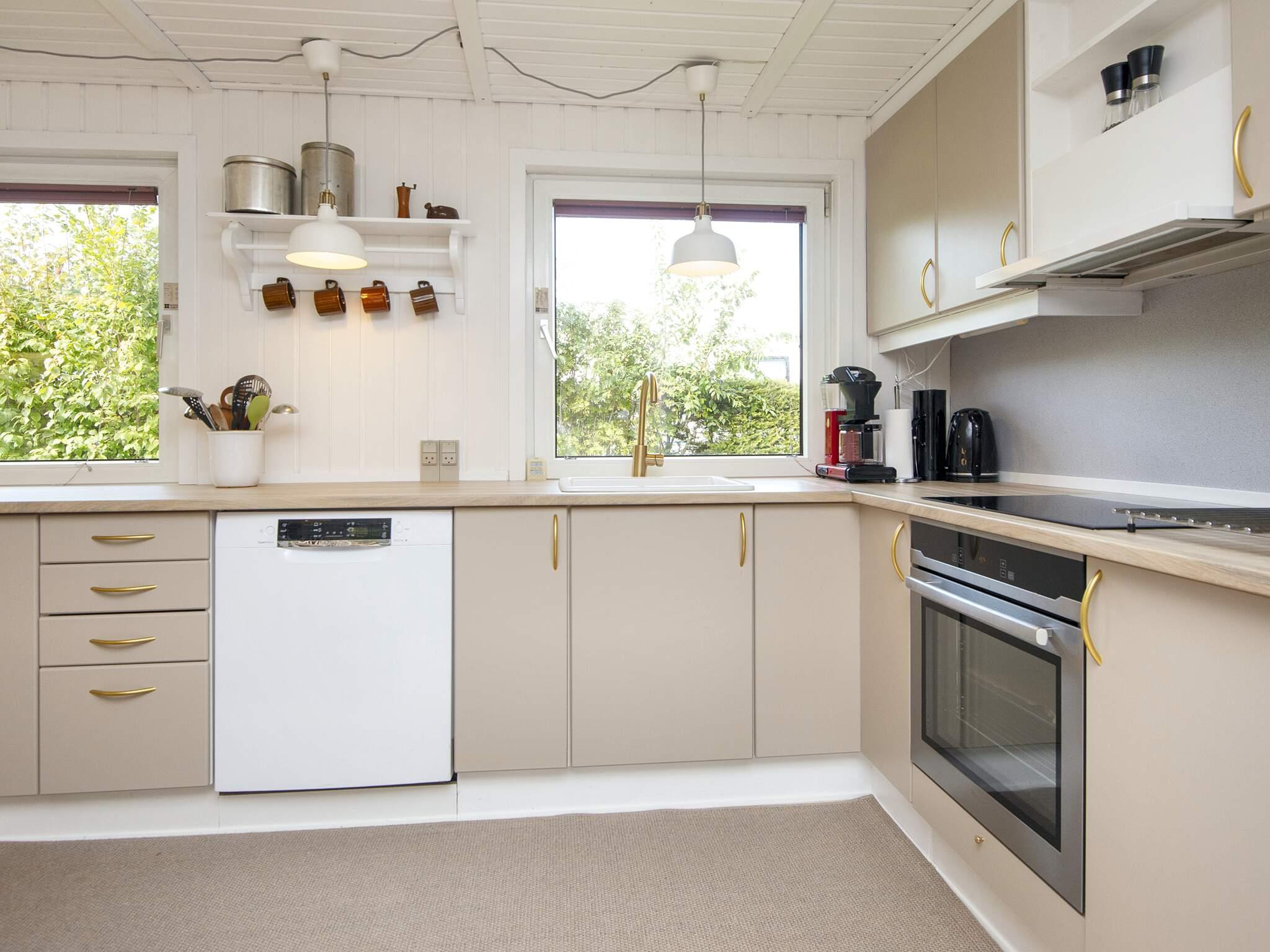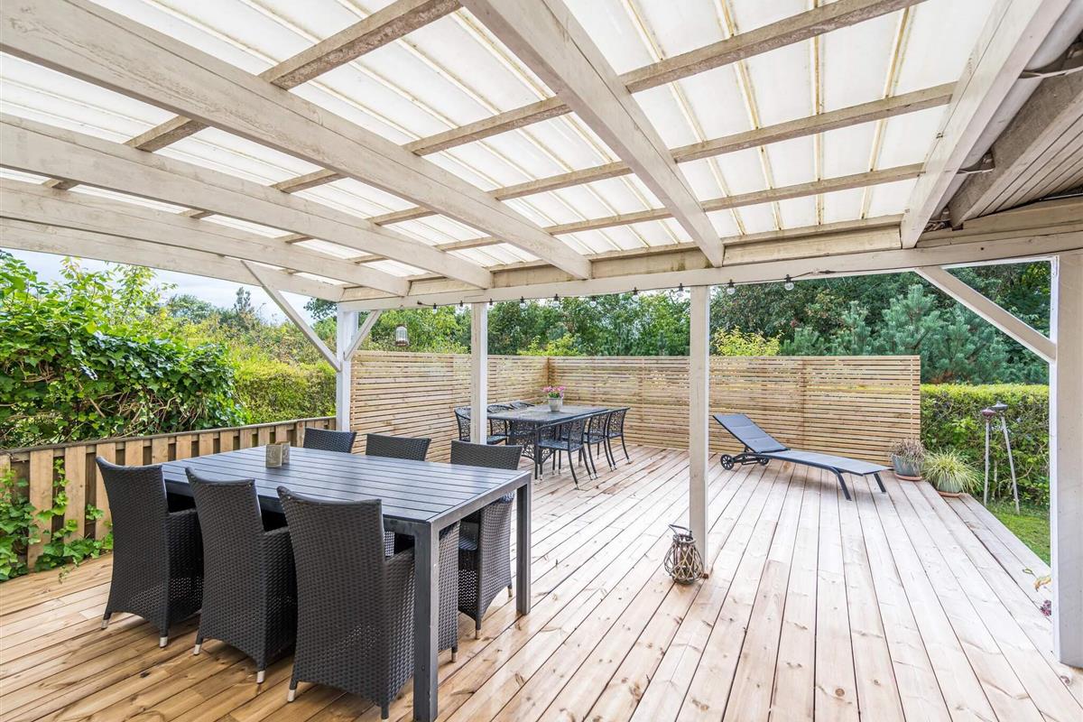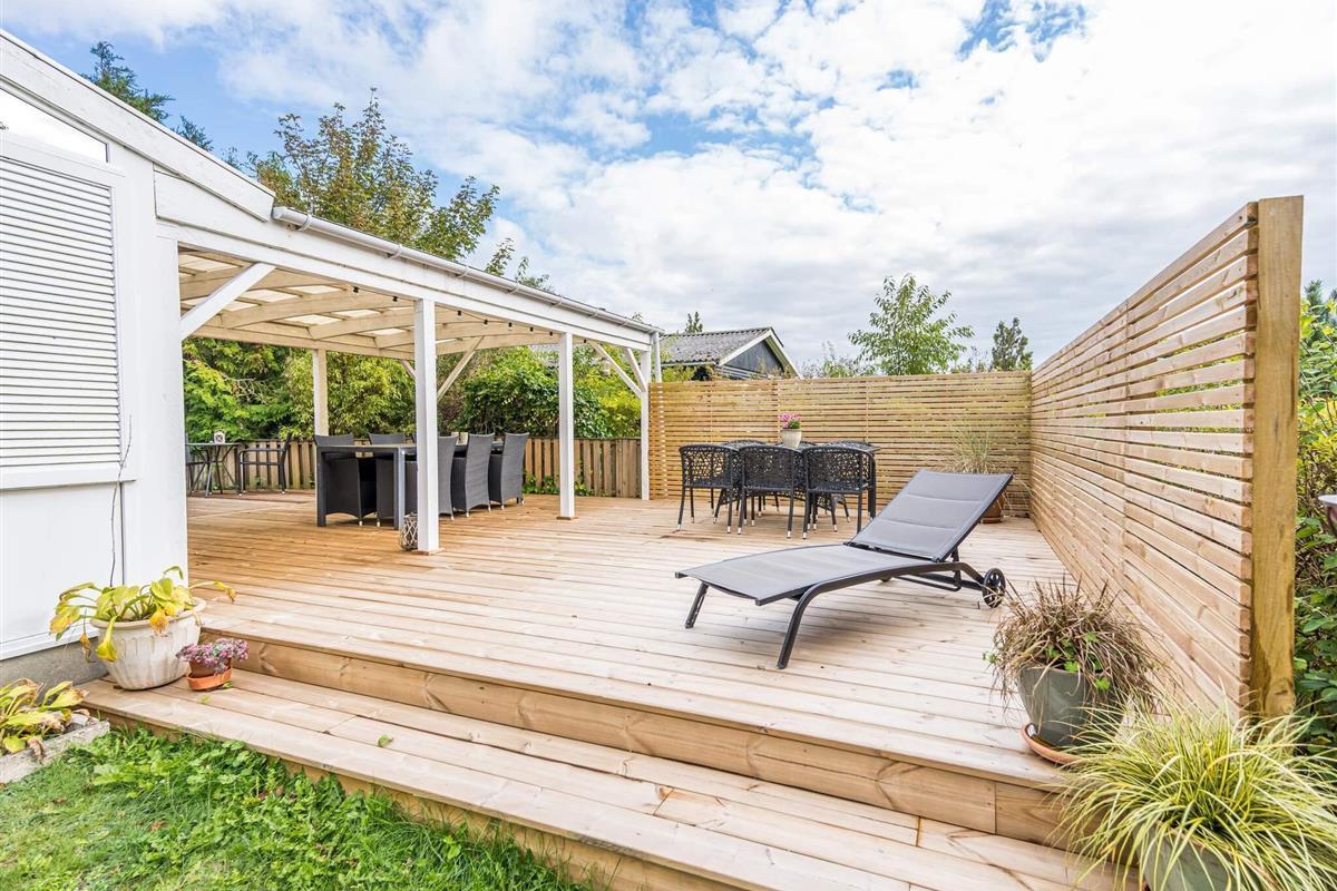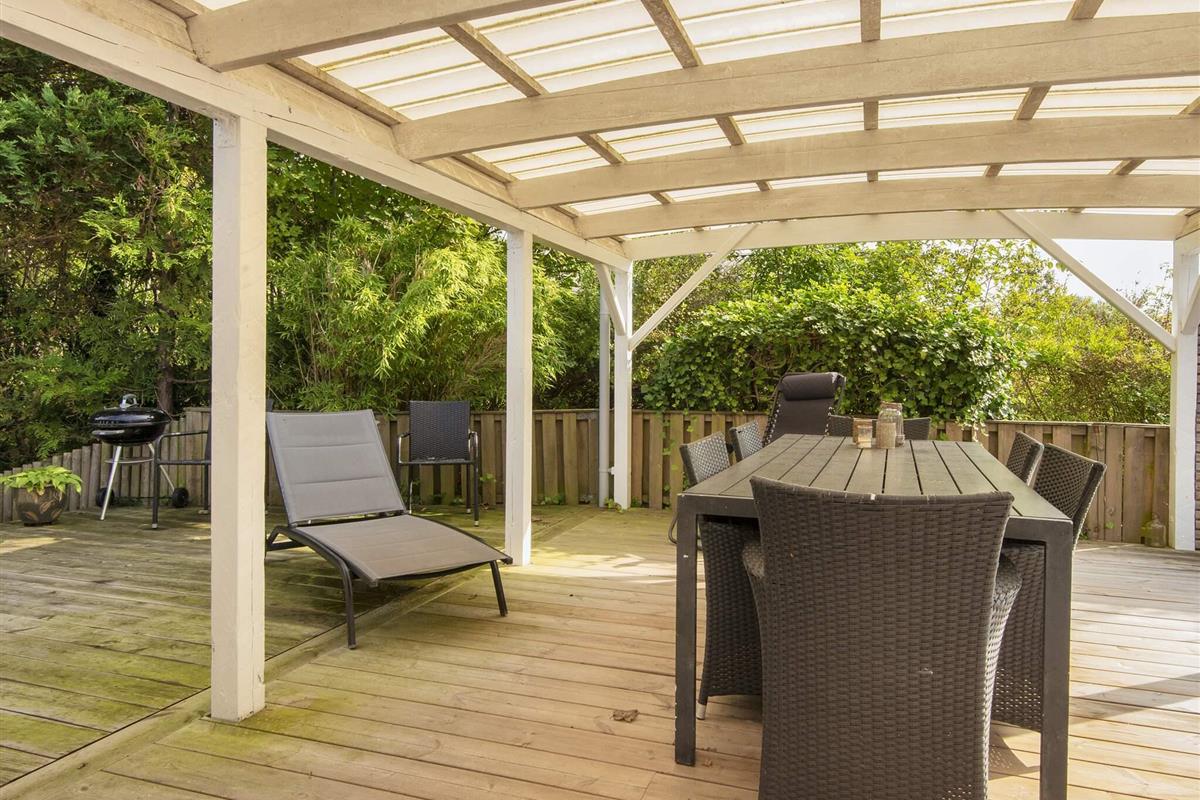 Gemütliches Ferienhaus nur 400 Meter vom Wasser entfernt, im alten und charmanten Teil von Skaven Strand. Das Haus verfügt über ein helles und einladendes Wohnzimmer mit offener Verbindung zur Küche und zum Essbereich, der um einen Holzofen herum angeordnet ist. Vom Wohnzimmer aus gelangt man in den hellen und luftigen Wintergarten, der direkt auf eine große, teilweise überdachte Holzterrasse mit Gartenmöbeln führt – ideal zum Entspannen oder Essen im Freien.