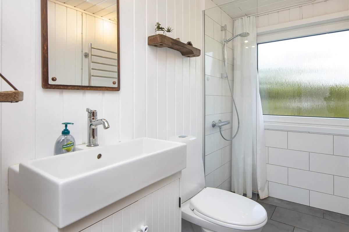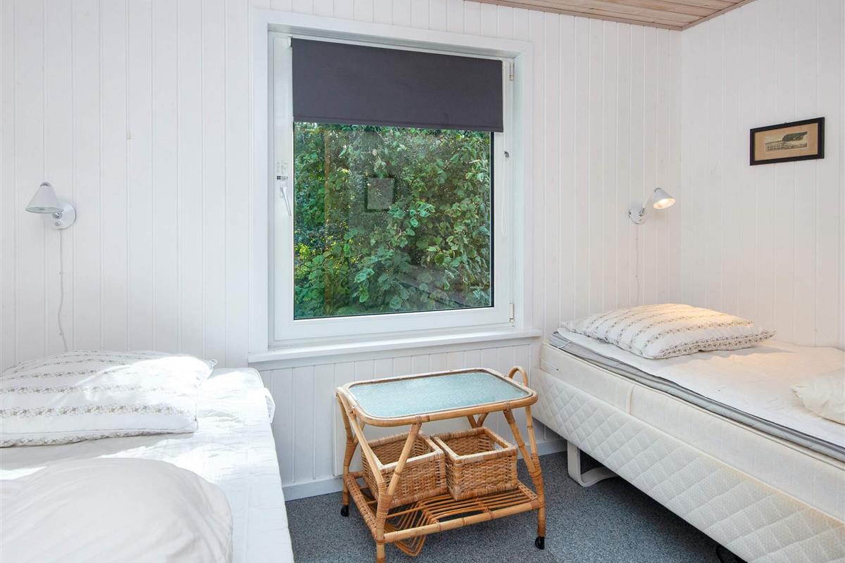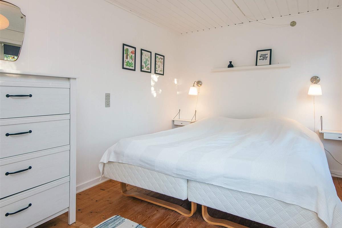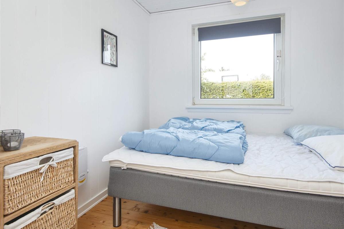 Das Haus verfügt über drei Schlafzimmer: eines mit Doppelbett, ein zweites mit einem 140 cm breiten Doppelbett und ein drittes mit zwei Einzelbetten. Das Badezimmer ist hell und modern und verfügt über eine Dusche. Im hinteren Teil des Hauses befindet sich ein praktischer Hauswirtschaftsraum mit viel Stauraum, einer Waschmaschine und einem Trockner.