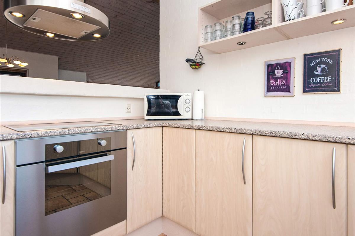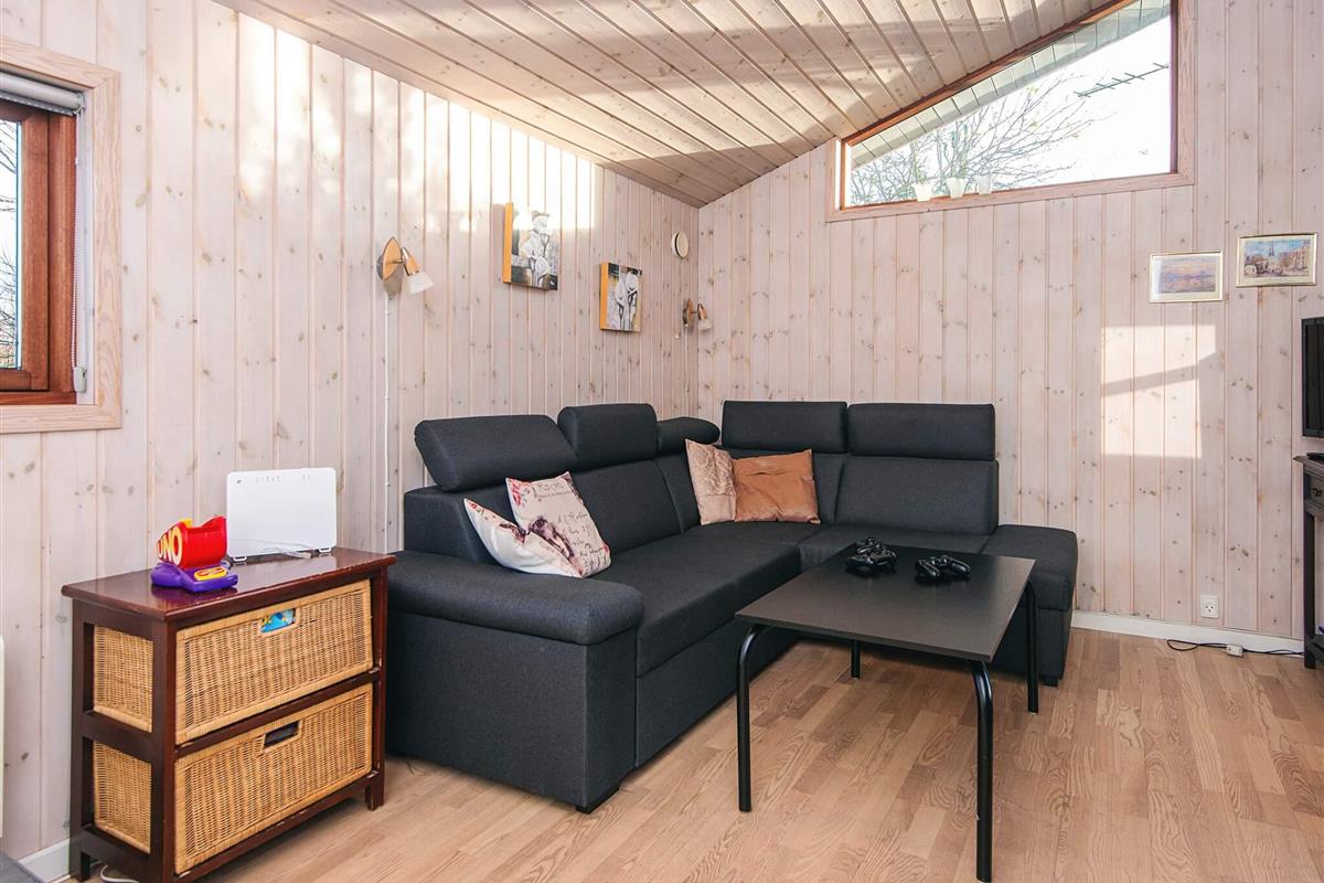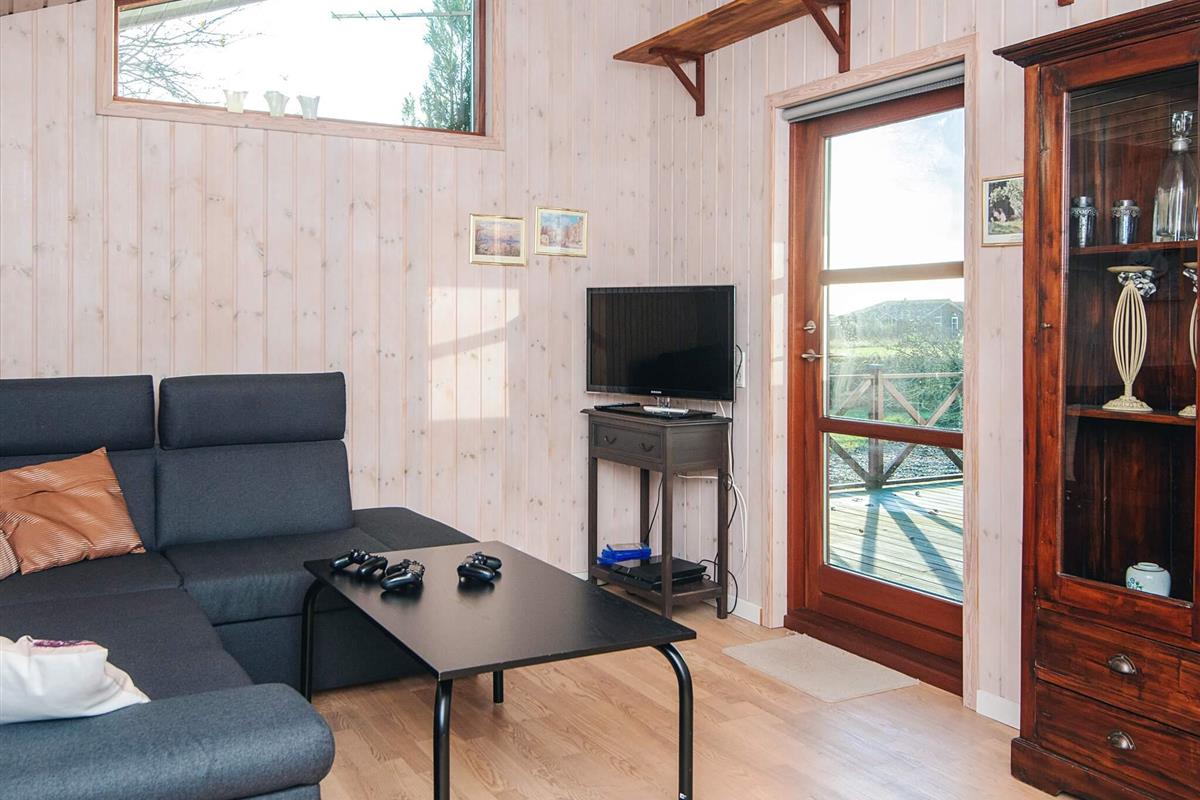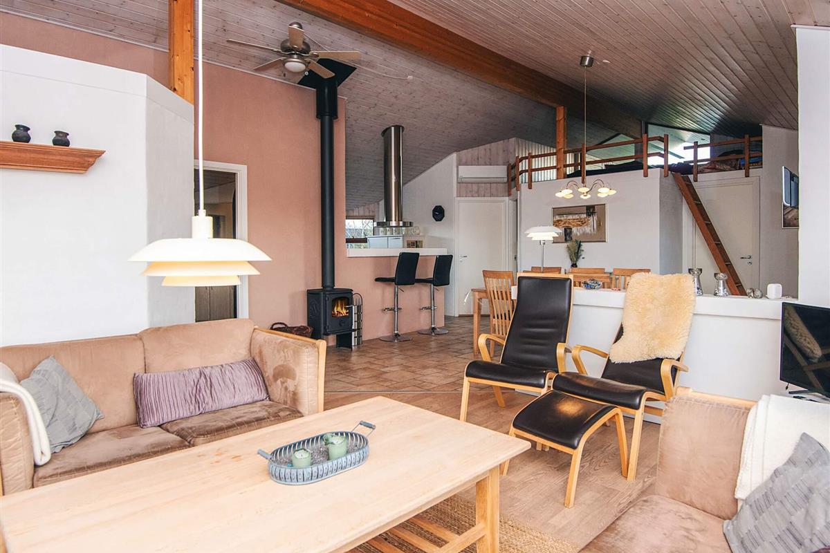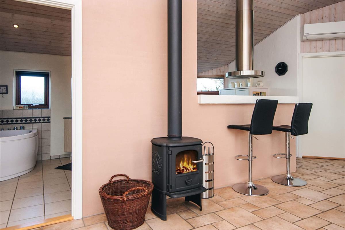 Es hat eine gute Küche, die zum Wohnzimmer hin offen ist, wo es einen Holzofen und Zugang zu mehreren Terrassen gibt. In den beiden Badezimmern gibt es angenehme Fußbodenheizung, im größeren zudem einen Wellnessbereich und Zugang zur Sauna. Außen schön abgeschirmter Innenhof zum Entspannen sowie eine wirklich große Terrasse, auf der Sie den ganzen Tag im Freien der Sonne folgen können. Das Ferienhaus wurde aus guten Materialien erbaut und ist sehr gepflegt. Es steht direkt gegenüber einem Spielplatz.