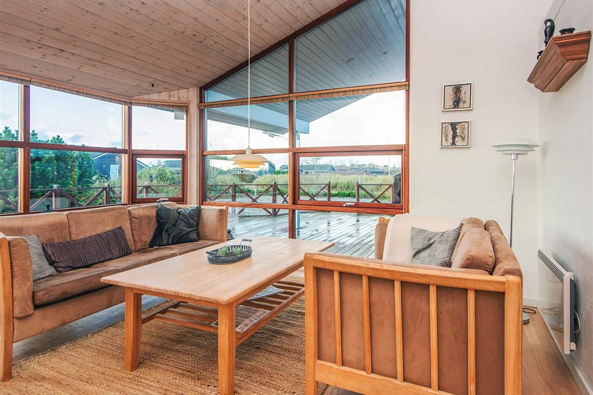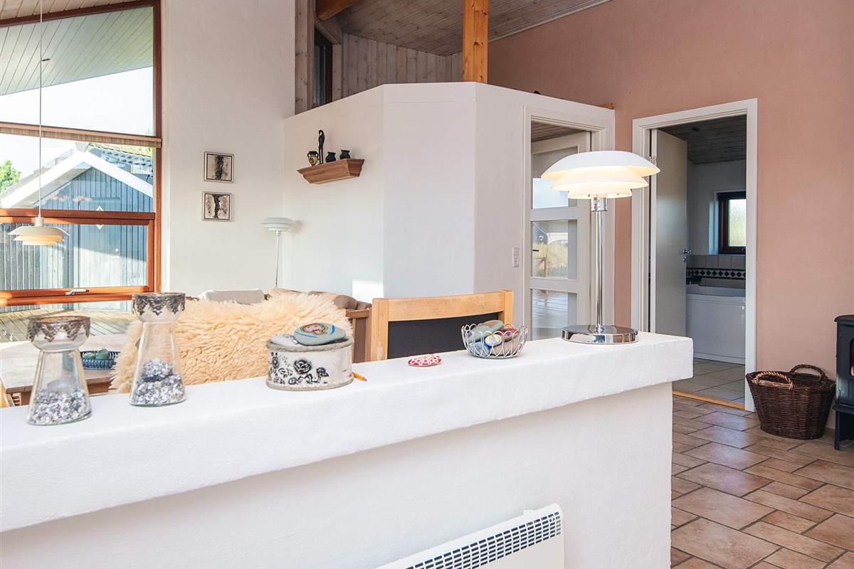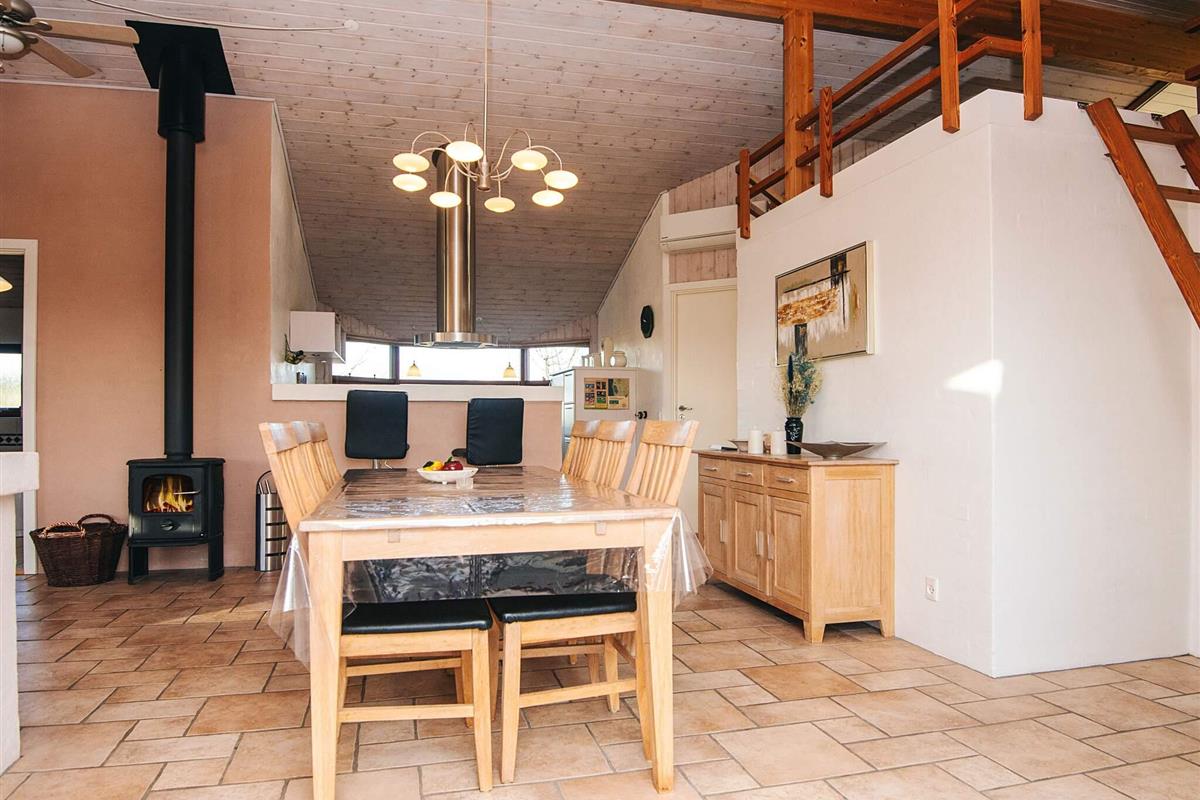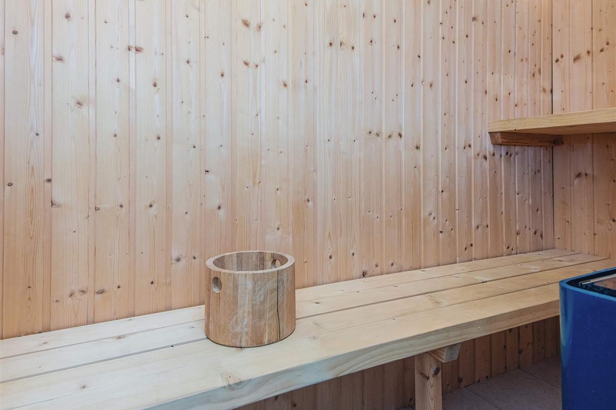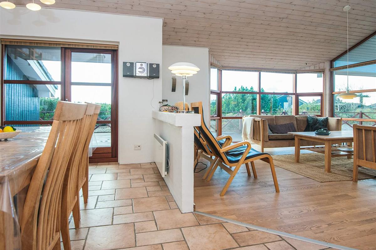 Es hat eine gute Küche, die zum Wohnzimmer hin offen ist, wo es einen Holzofen und Zugang zu mehreren Terrassen gibt. In den beiden Badezimmern gibt es angenehme Fußbodenheizung, im größeren zudem einen Wellnessbereich und Zugang zur Sauna. Außen schön abgeschirmter Innenhof zum Entspannen sowie eine wirklich große Terrasse, auf der Sie den ganzen Tag im Freien der Sonne folgen können. Das Ferienhaus wurde aus guten Materialien erbaut und ist sehr gepflegt. Es steht direkt gegenüber einem Spielplatz.