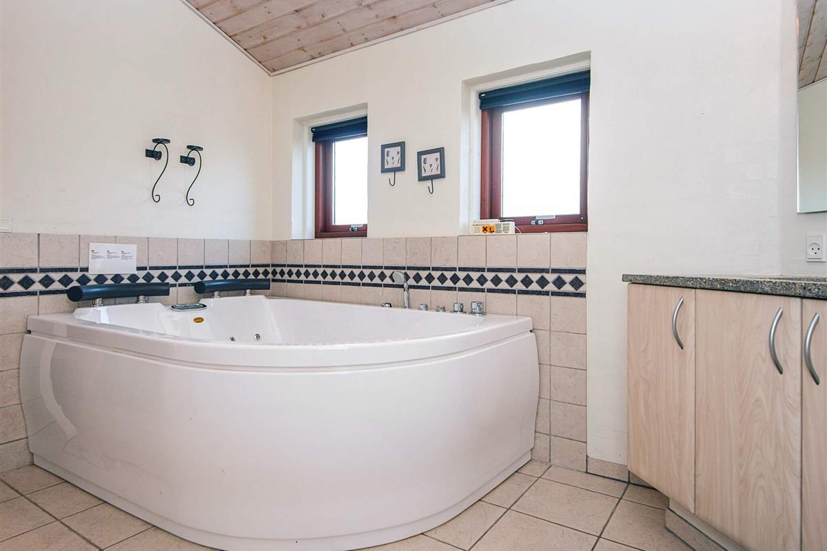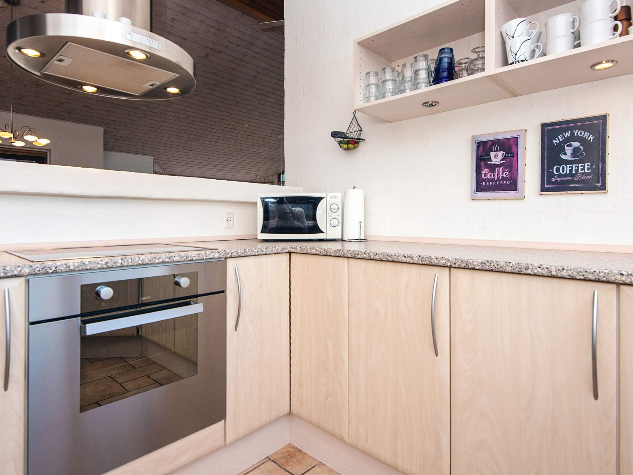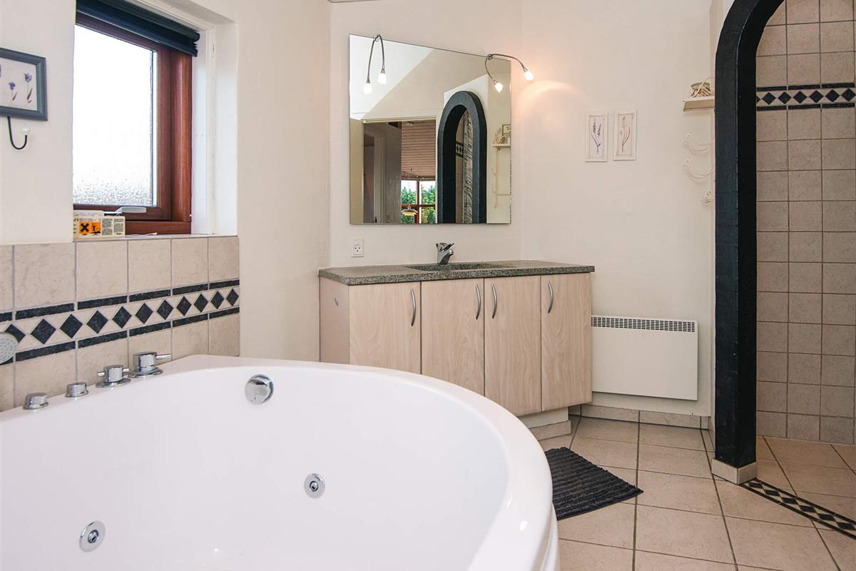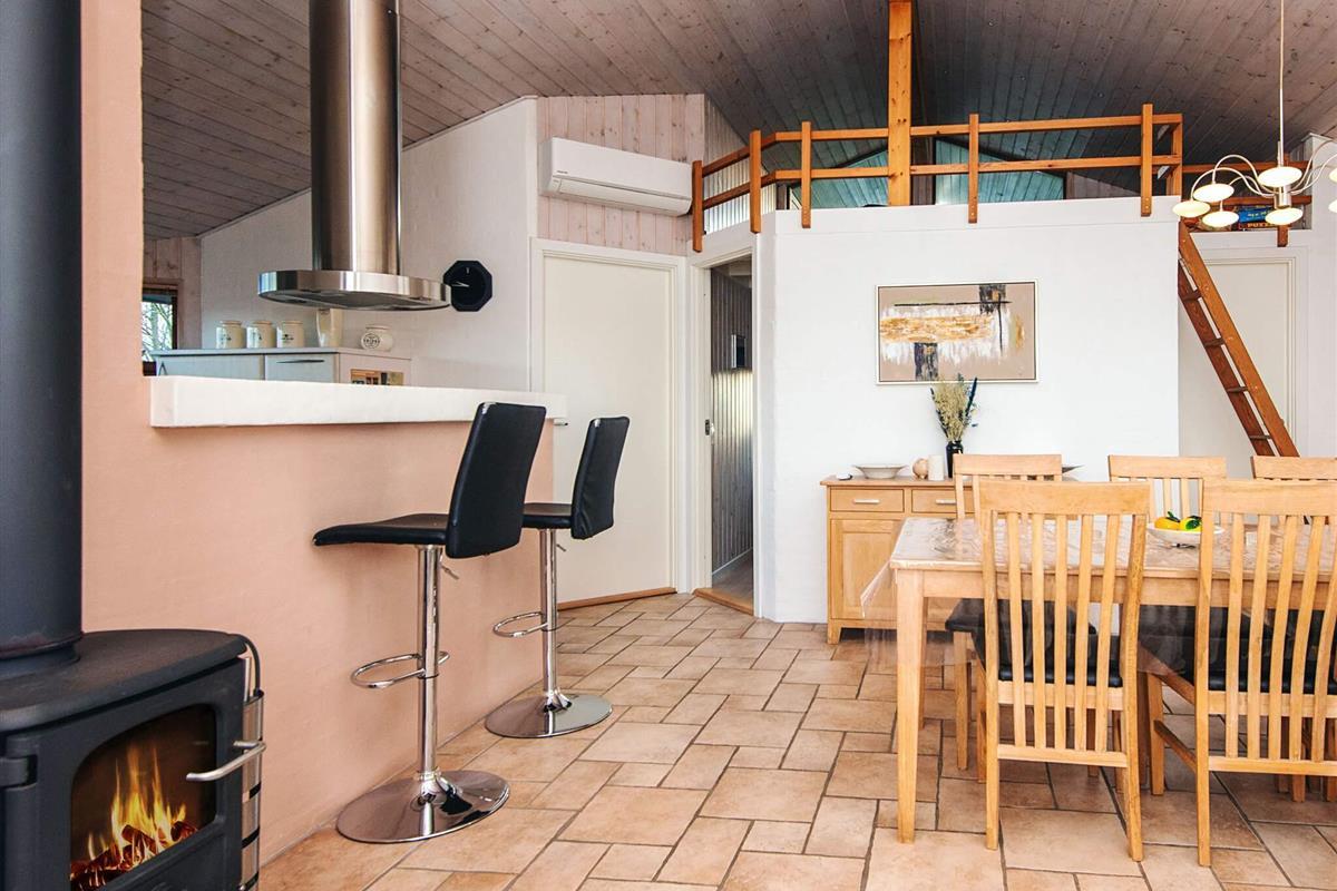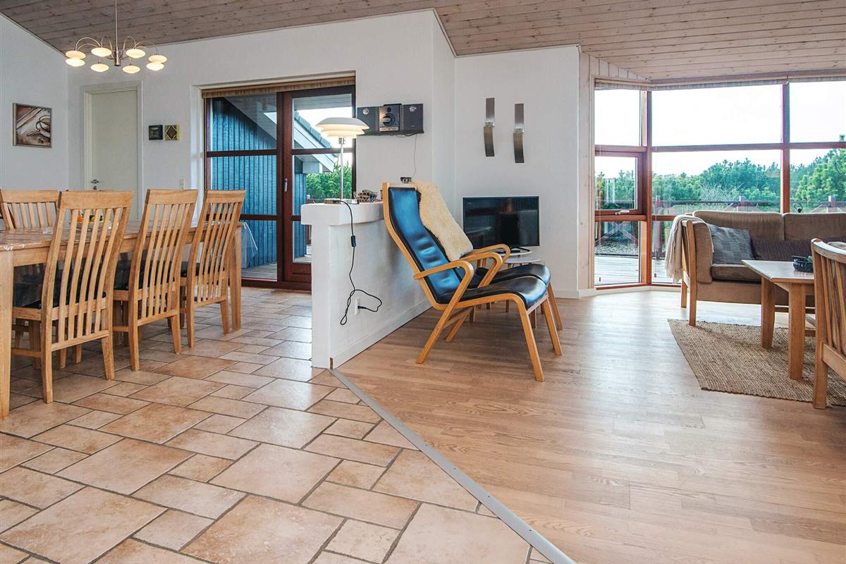 Es hat eine gute Küche, die zum Wohnzimmer hin offen ist, wo es einen Holzofen und Zugang zu mehreren Terrassen gibt. In den beiden Badezimmern gibt es angenehme Fußbodenheizung, im größeren zudem einen Wellnessbereich und Zugang zur Sauna. Außen schön abgeschirmter Innenhof zum Entspannen sowie eine wirklich große Terrasse, auf der Sie den ganzen Tag im Freien der Sonne folgen können. Das Ferienhaus wurde aus guten Materialien erbaut und ist sehr gepflegt. Es steht direkt gegenüber einem Spielplatz.