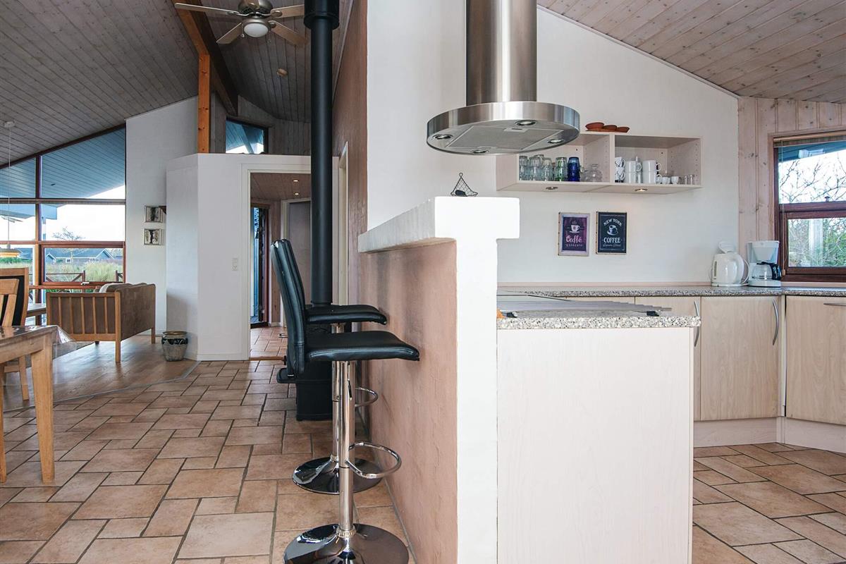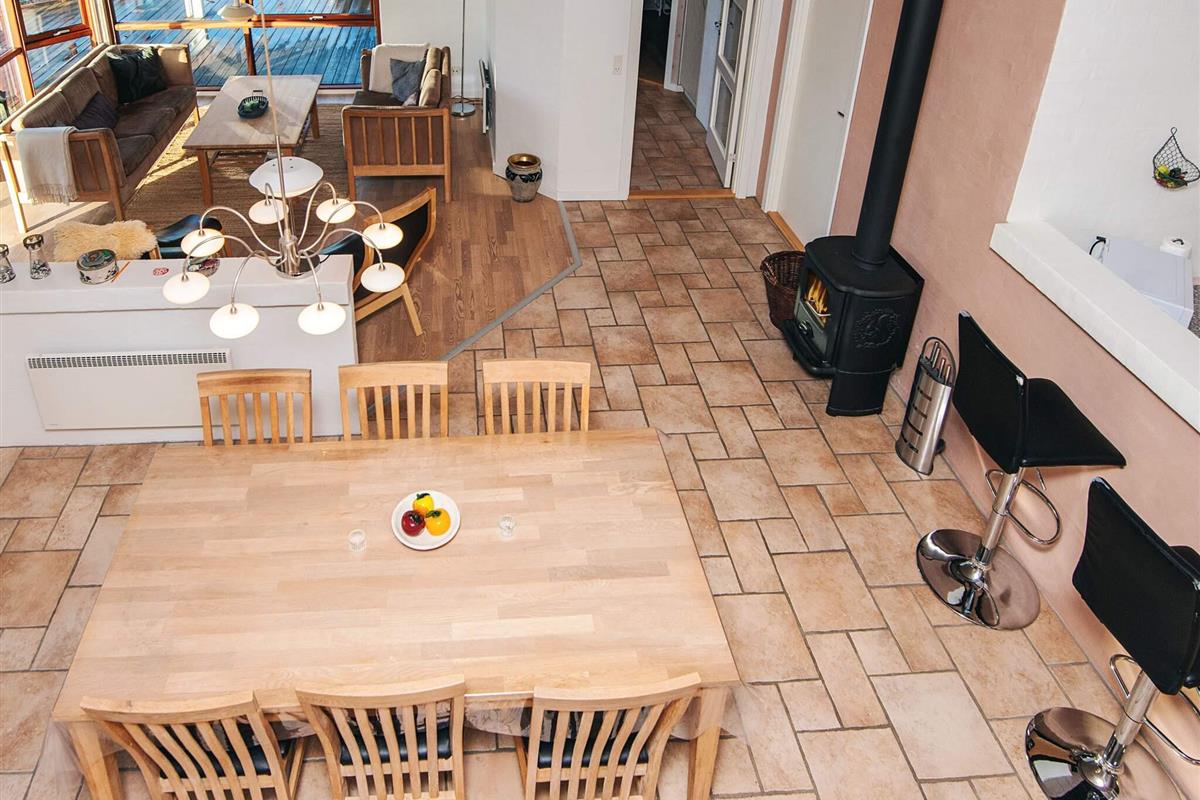 Sie wohnen hier an einer kleinen, unbefestigten Straße mit sehr wenig Verkehr und nur wenige Gehminuten von einem Put&Take-See entfernt. Skaven ist ein sehr beliebter Ort für Wassersportler und viele Surfer und Kitesurfer kommen wegen des flachen Wassers und des fast immer frischen Windes hierher. Genießen Sie die Atmosphäre im kleinen, charmanten Hafen mit Ausflugs- und Fischerbooten, wo Sie fangfrischen Fisch kaufen können. Hier gibt es auch ein Restaurant, von dem aus Sie die Aussicht auf den Fjord genießen können. Die wunderschöne Natur lädt zu herrlichen Wander- und Radtouren ein.