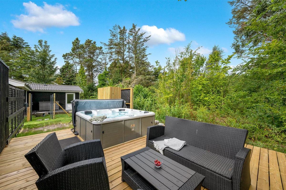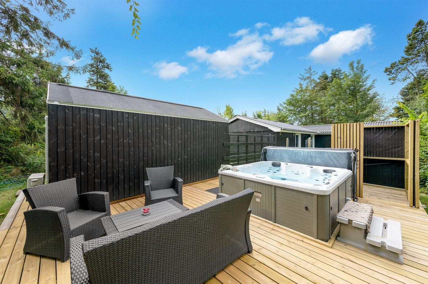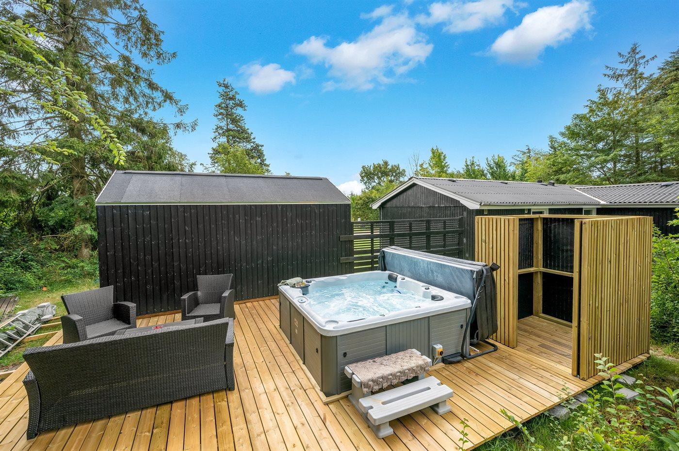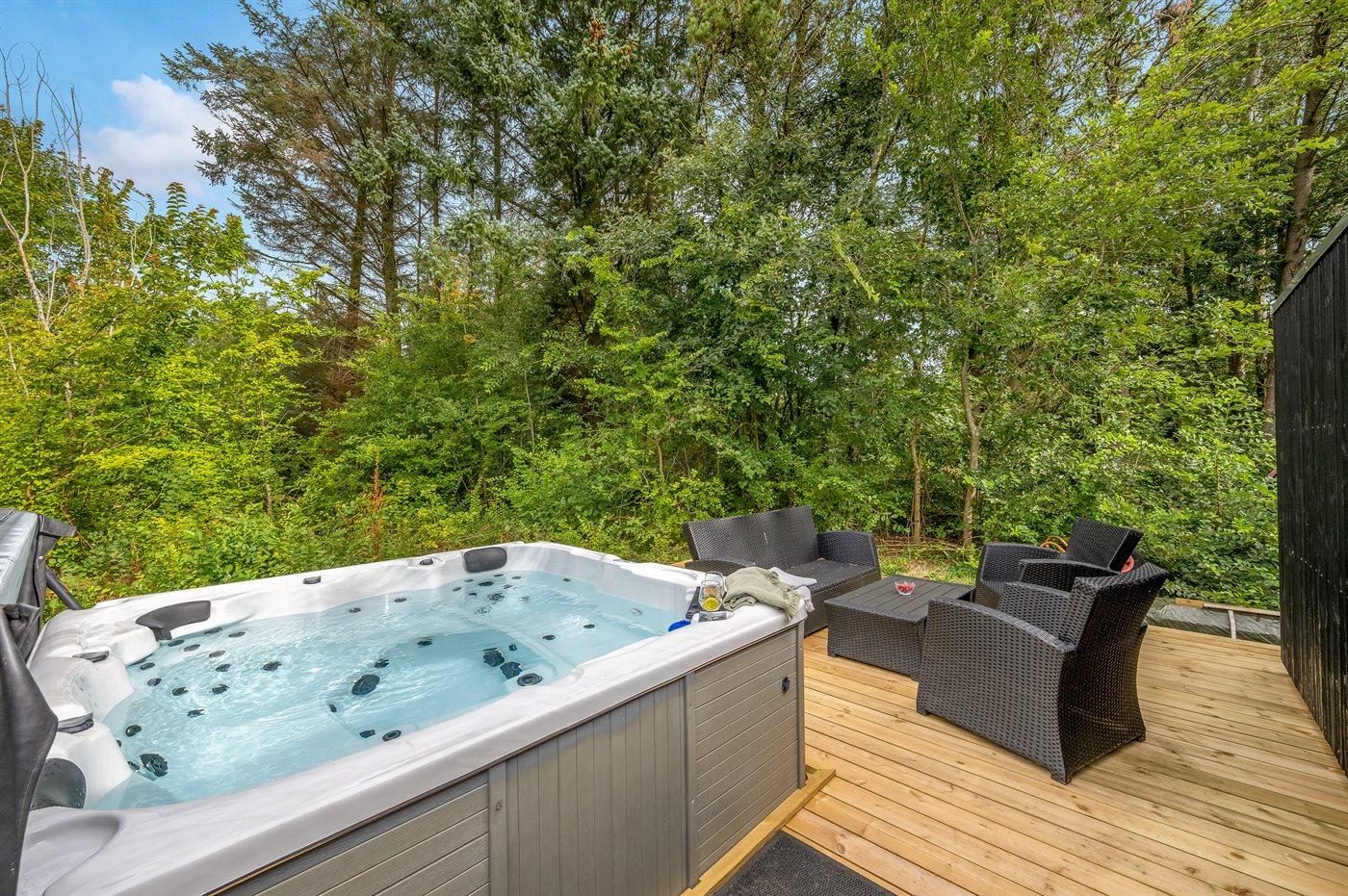 Het buitenbubbelbad (standwater) biedt ontspanning aan 5 personen.