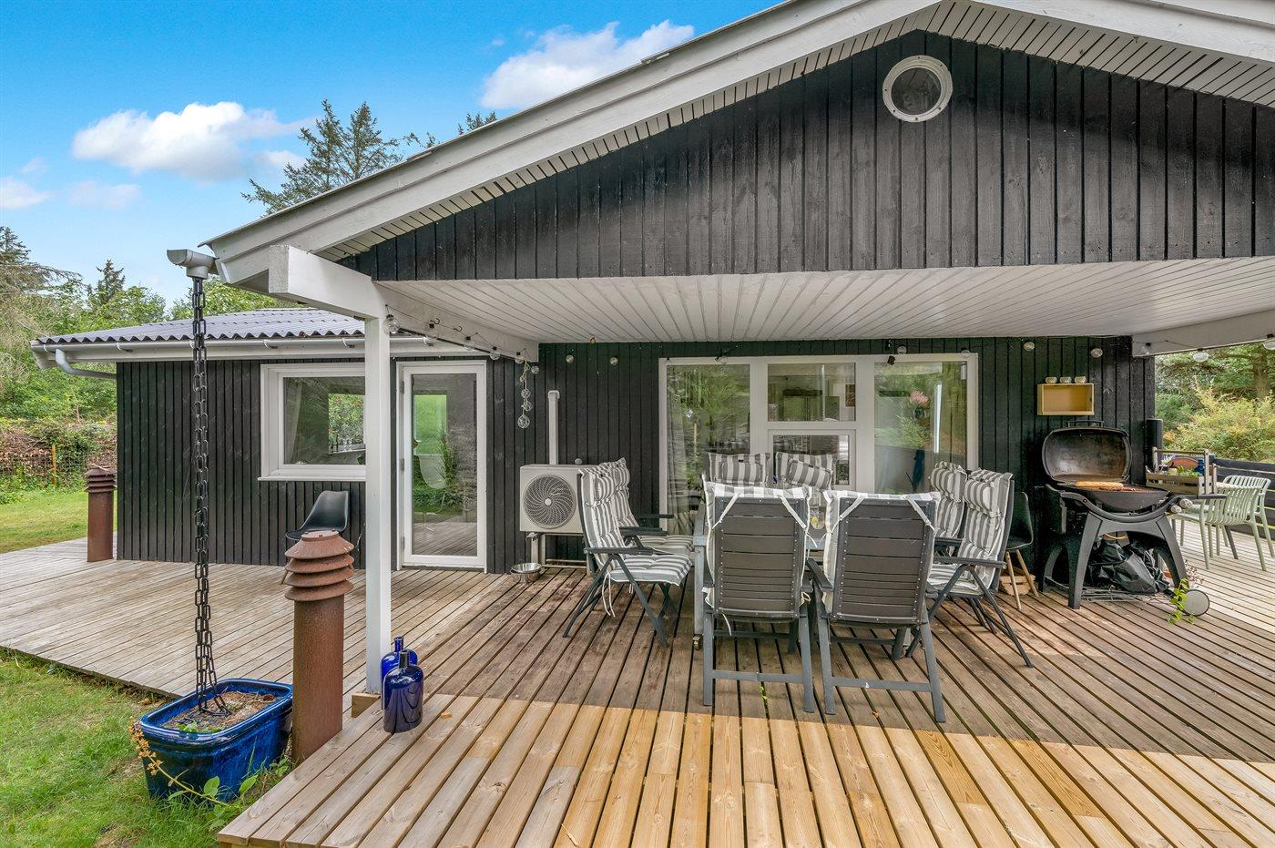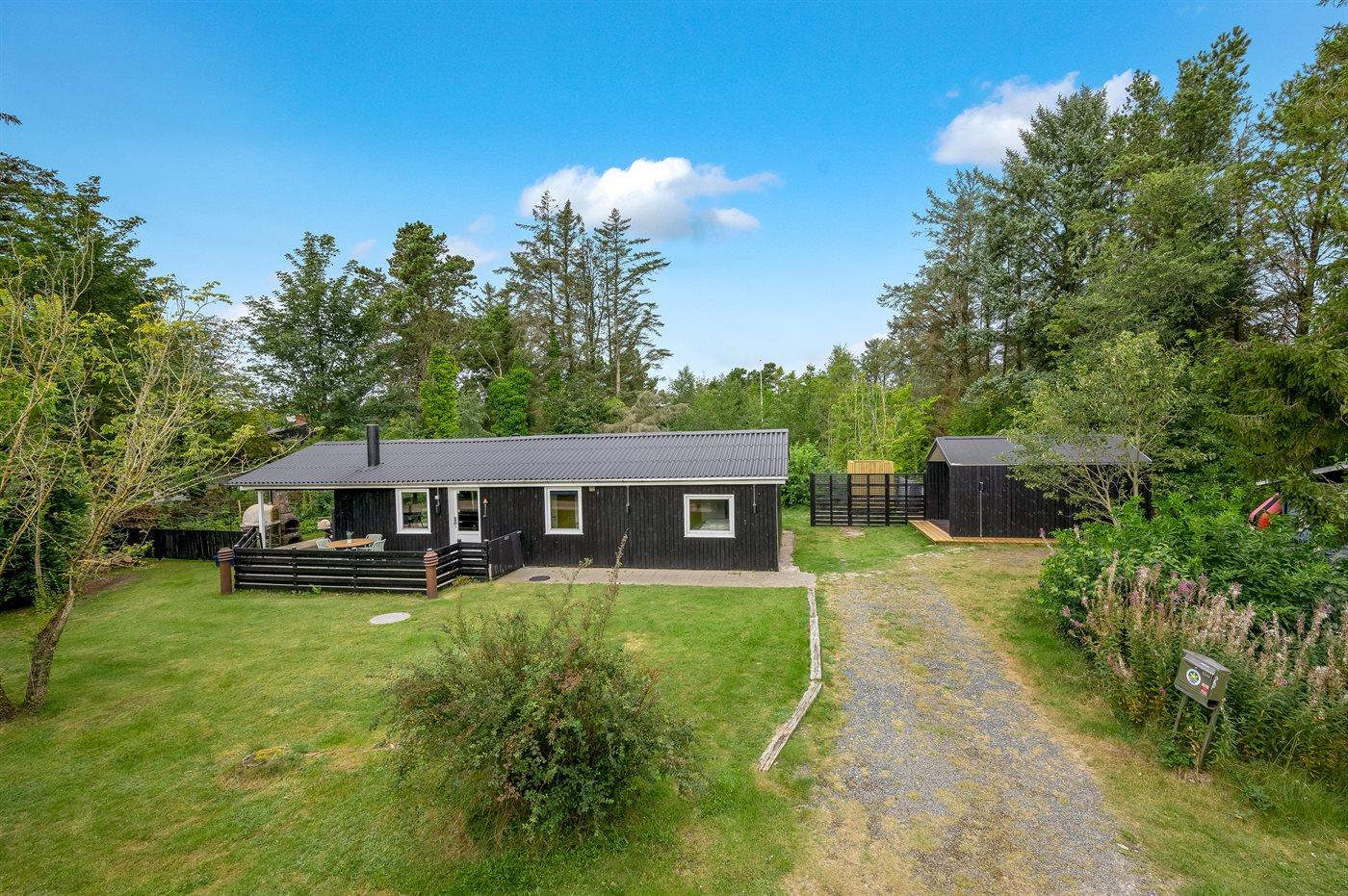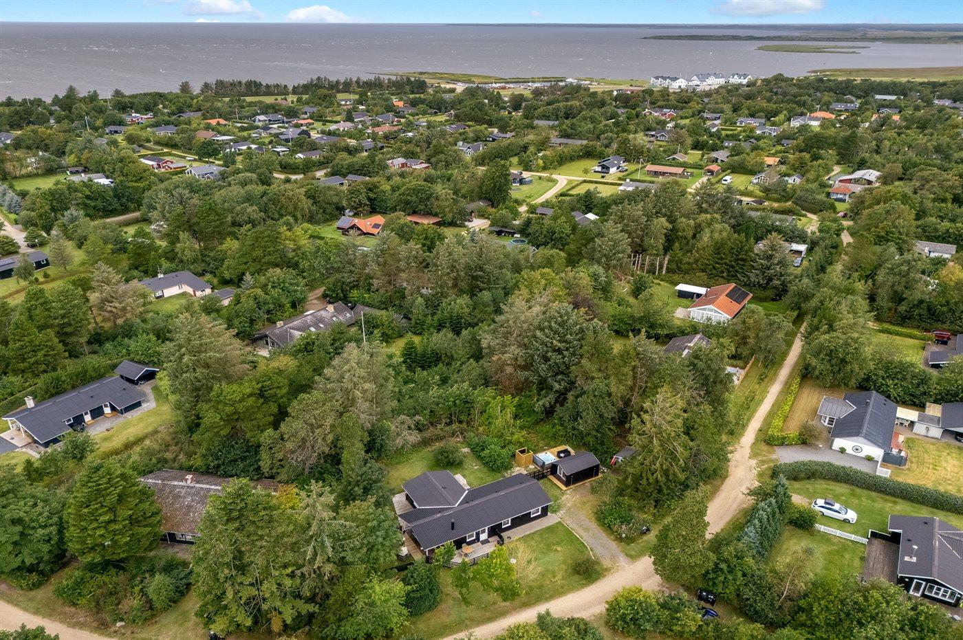 De vakantiewoning is gelegen op een 1186 m² groot natuural grond. Afstand tot de zee 13000 m. Afstand tot de fjord 500 m. Dichtstbijzijnde winkel 600 m. Bij de vakantiewoning hoort terras. Daarnaast is er een overdekt terras. Buitendouche. Parkeerplaats bij het huis.