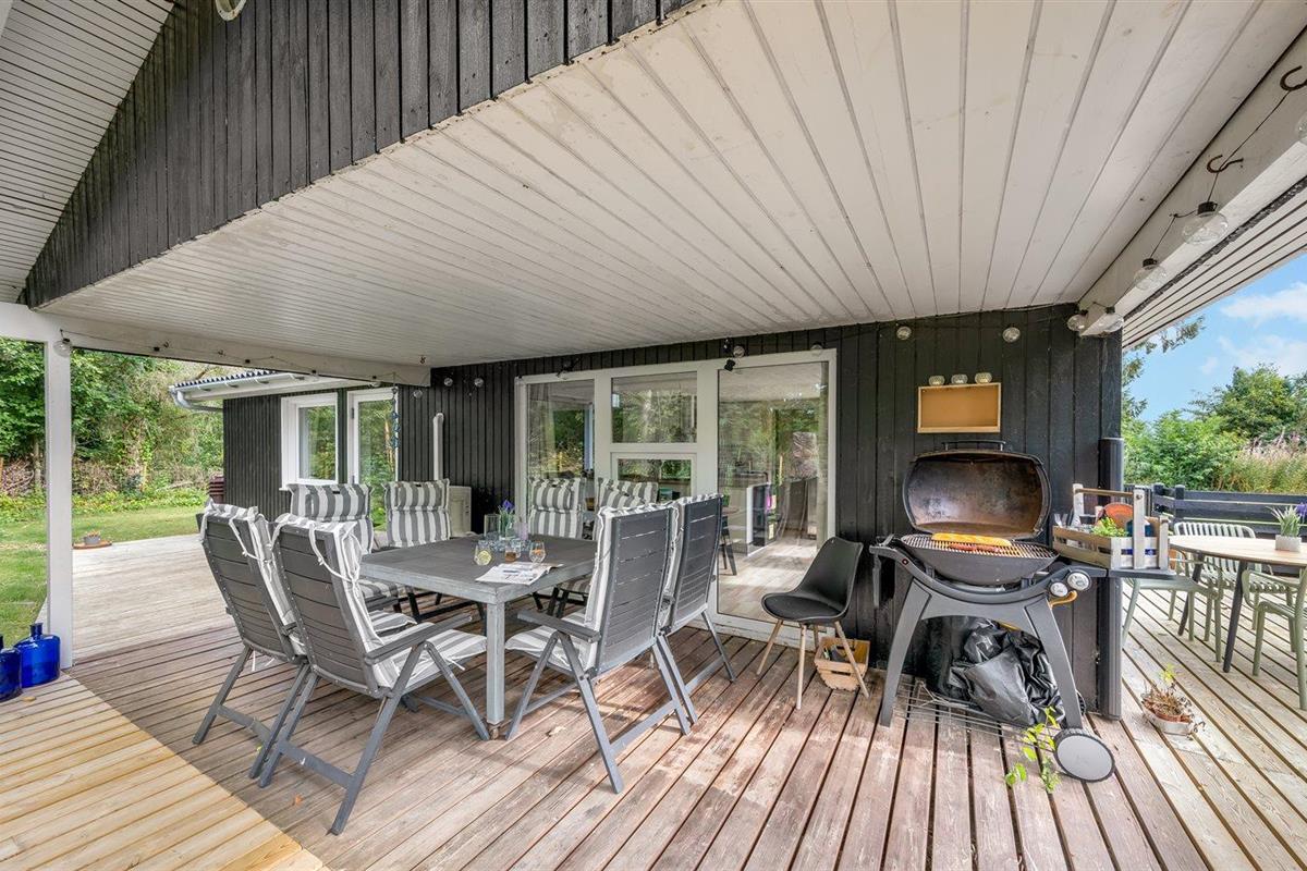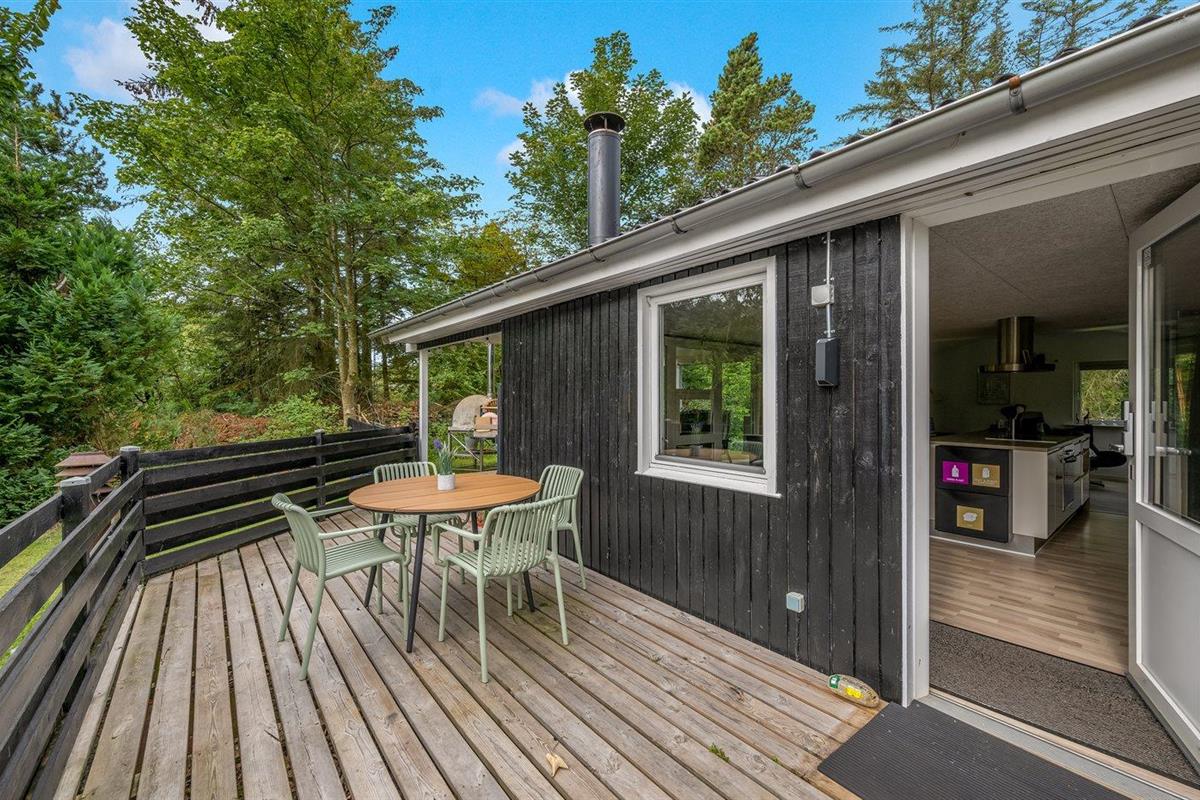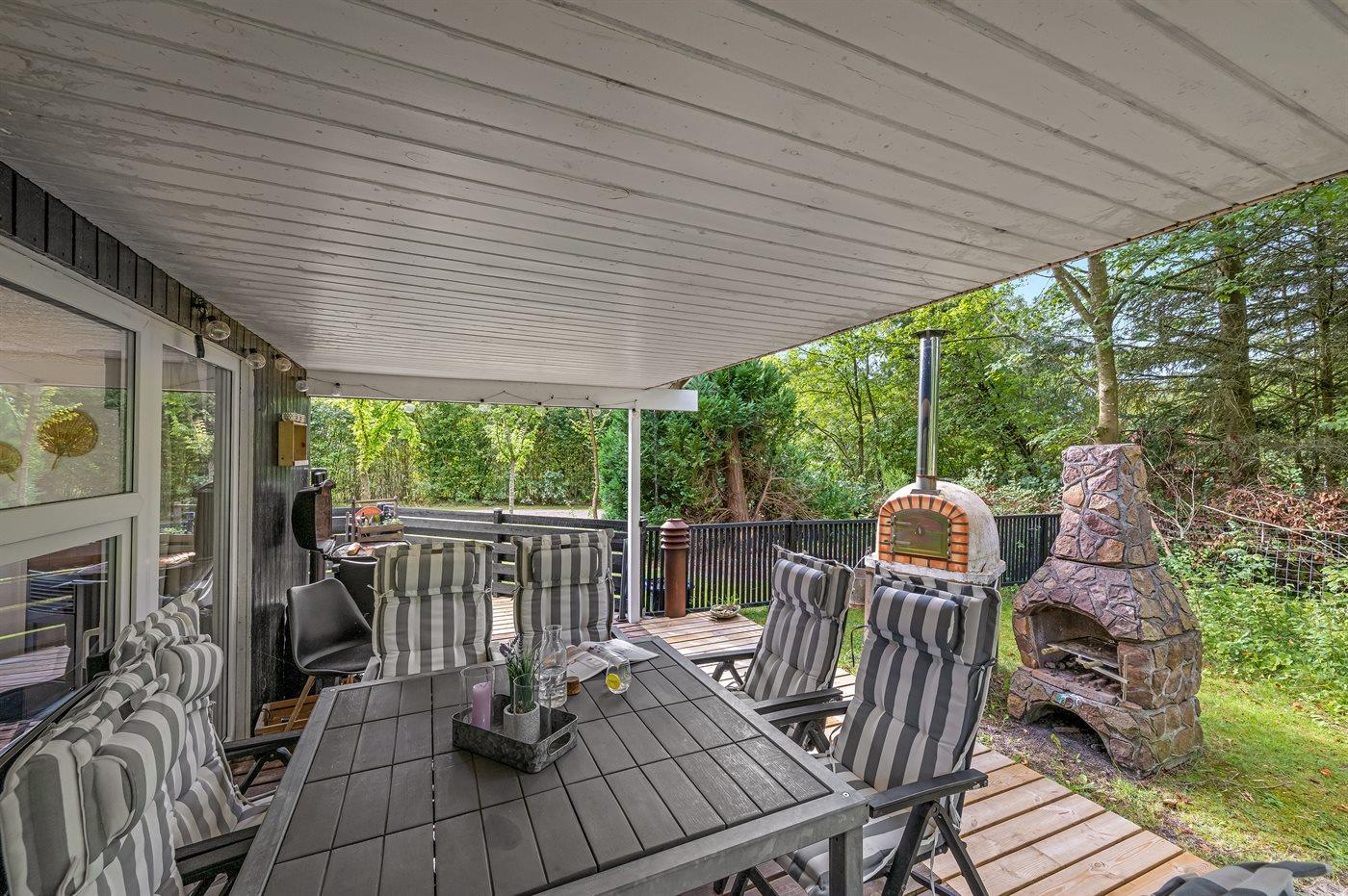 De vakantiewoning is gelegen op een 1186 m² groot natuural grond. Afstand tot de zee 13000 m. Afstand tot de fjord 500 m. Dichtstbijzijnde winkel 600 m. Bij de vakantiewoning hoort terras. Daarnaast is er een overdekt terras. Buitendouche. Parkeerplaats bij het huis.