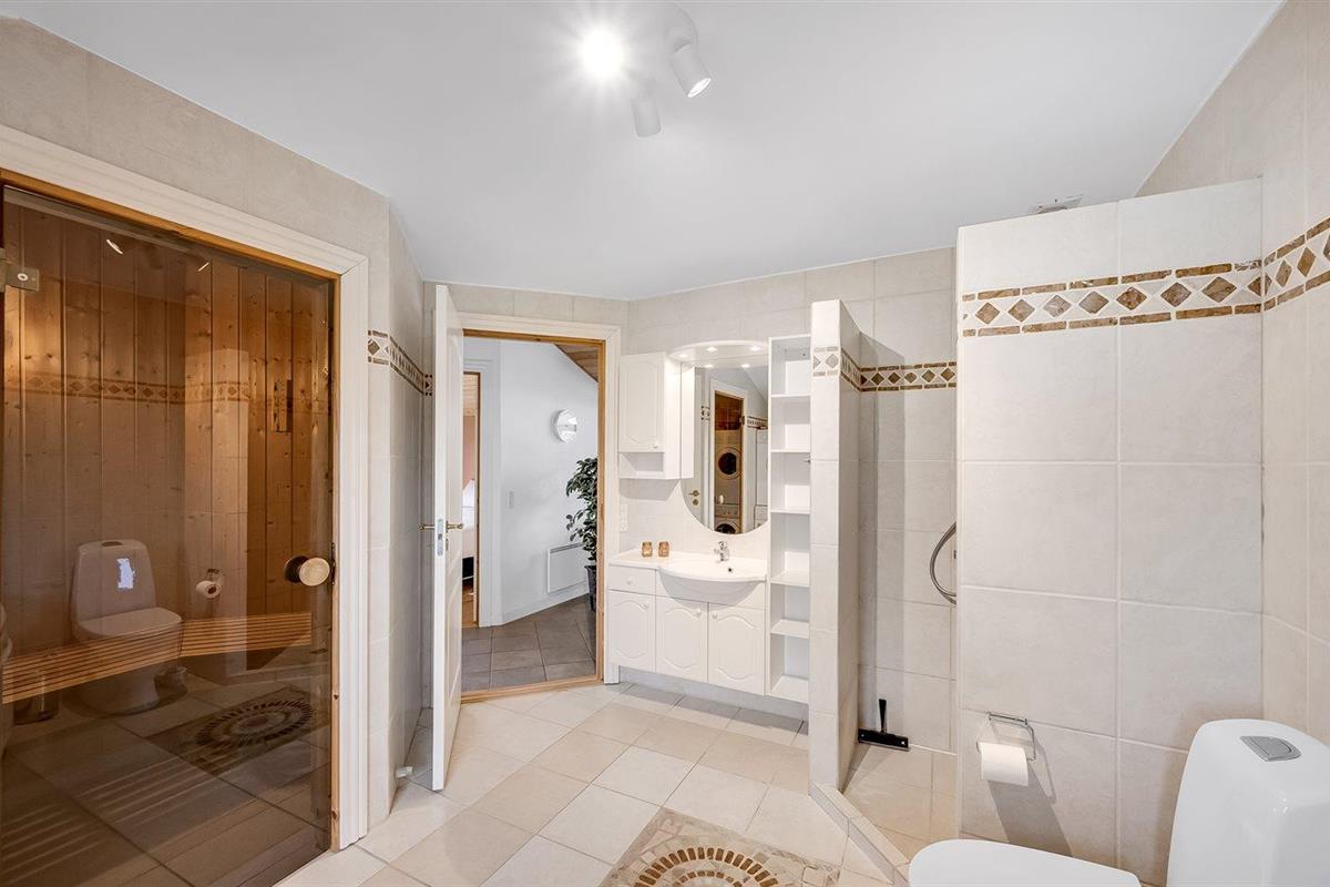 Er is 1 badkamer met douchehok en 2 toiletten, waarvan 1 gastentoilet. Er is vloerverwarming in 1 badkamer. De sauna biedt de gelegenheid tot ontspanning.