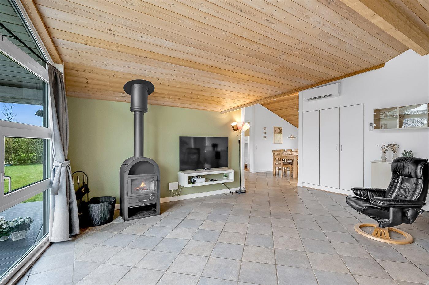 De vakantiewoning is gelegen op een 1200 m² groot natuural grond. Afstand tot de zee 13500 m. Afstand tot de fjord 700 m. Dichtstbijzijnde winkel 600 m. Bij de vakantiewoning hoort 30 m² terras. Daarnaast is er een 8 m² groot overdekt terras. Gereedschapsruimte. Het huis heeft een stopcontact voor het opladen van een elektrische auto (llaadkabel moet worden meegenomen). Met 11 kW-laadvermogen. Parkeerplaats bij het huis.