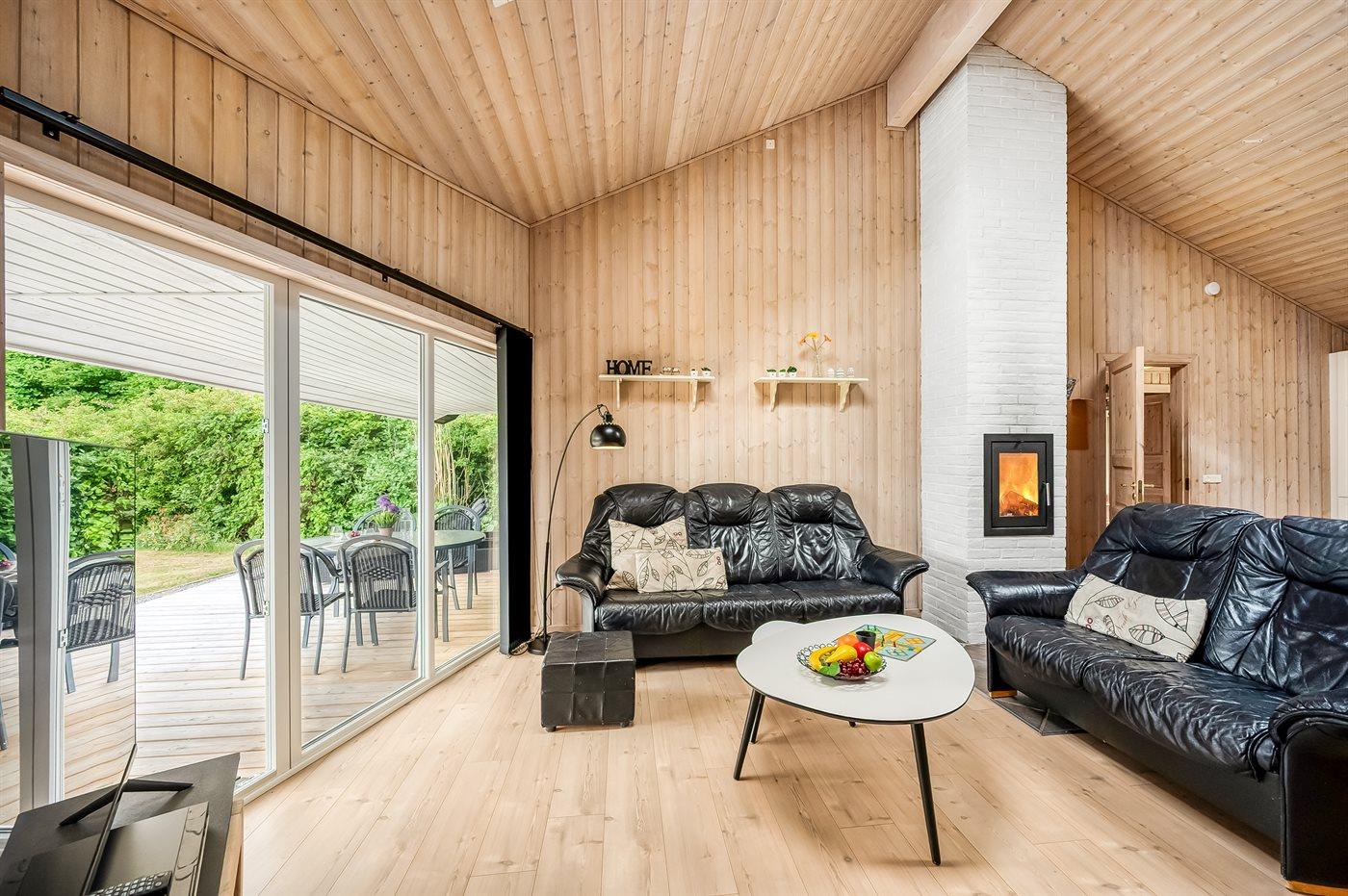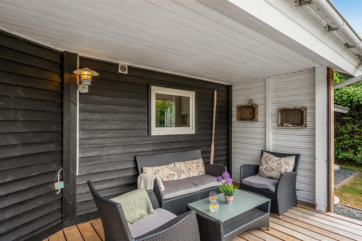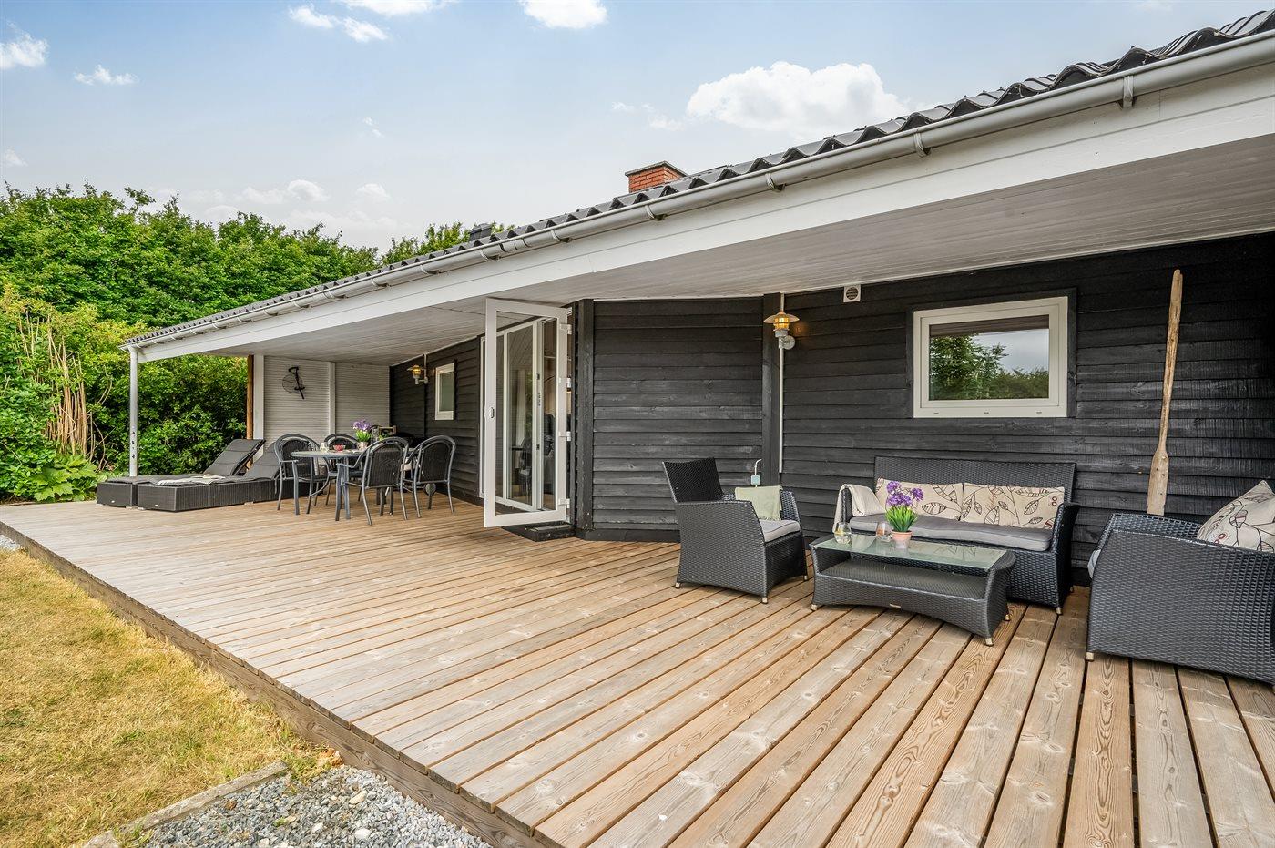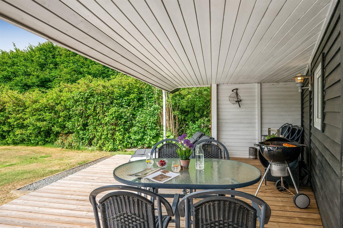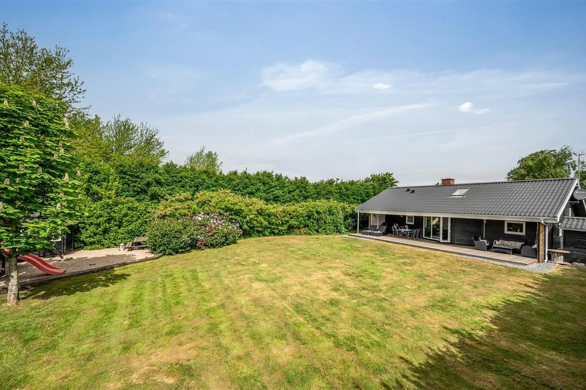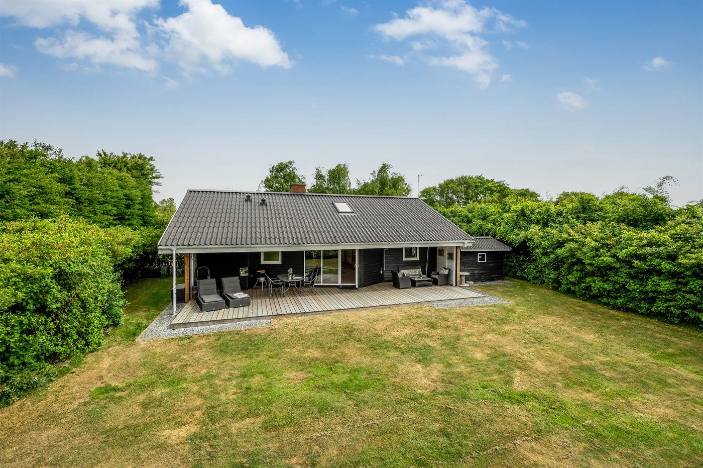 De vakantiewoning is gelegen op een 945 m² groot natuural grond. Afstand tot de fjord 350 m. Dichtstbijzijnde winkel 800 m. Bij de vakantiewoning hoort terras. Daarnaast is er een overdekt terras. Schommel. Zandbak. Speelhuisje. Parkeerplaats bij het huis.