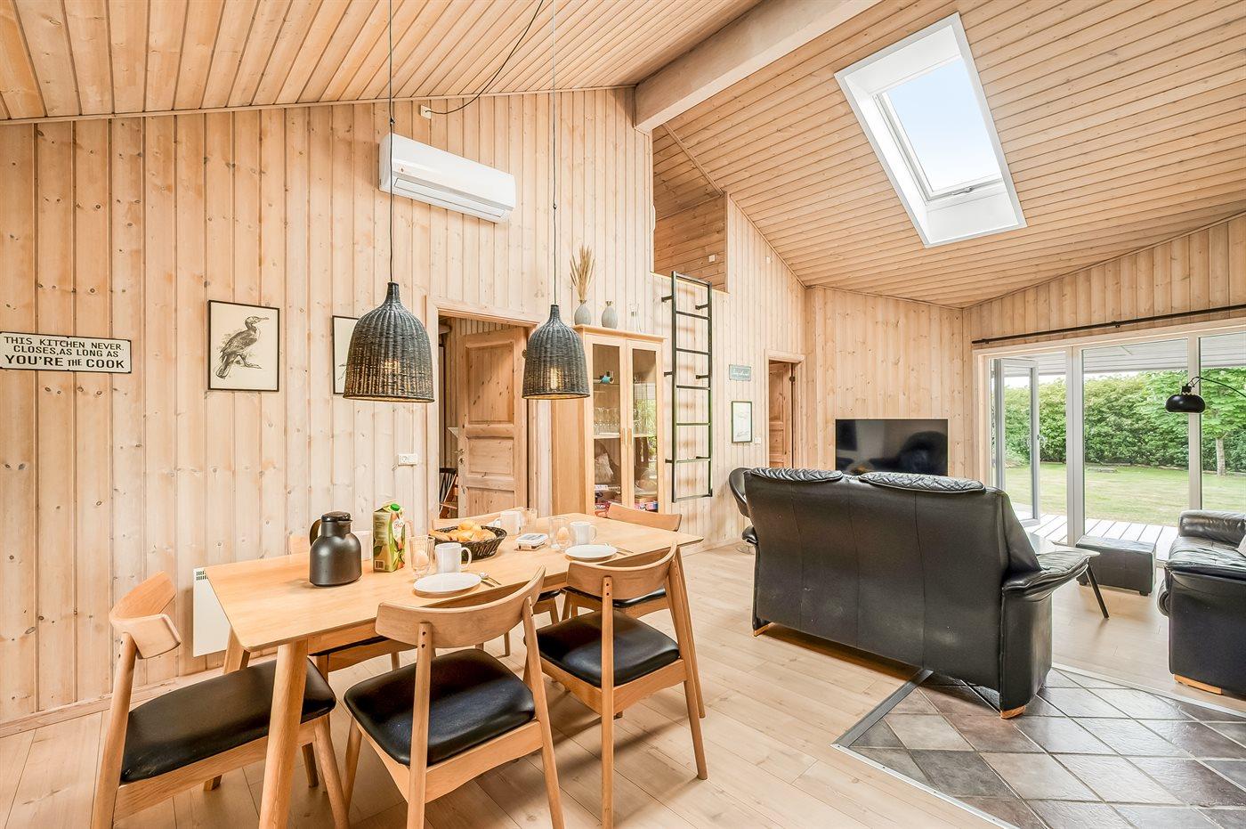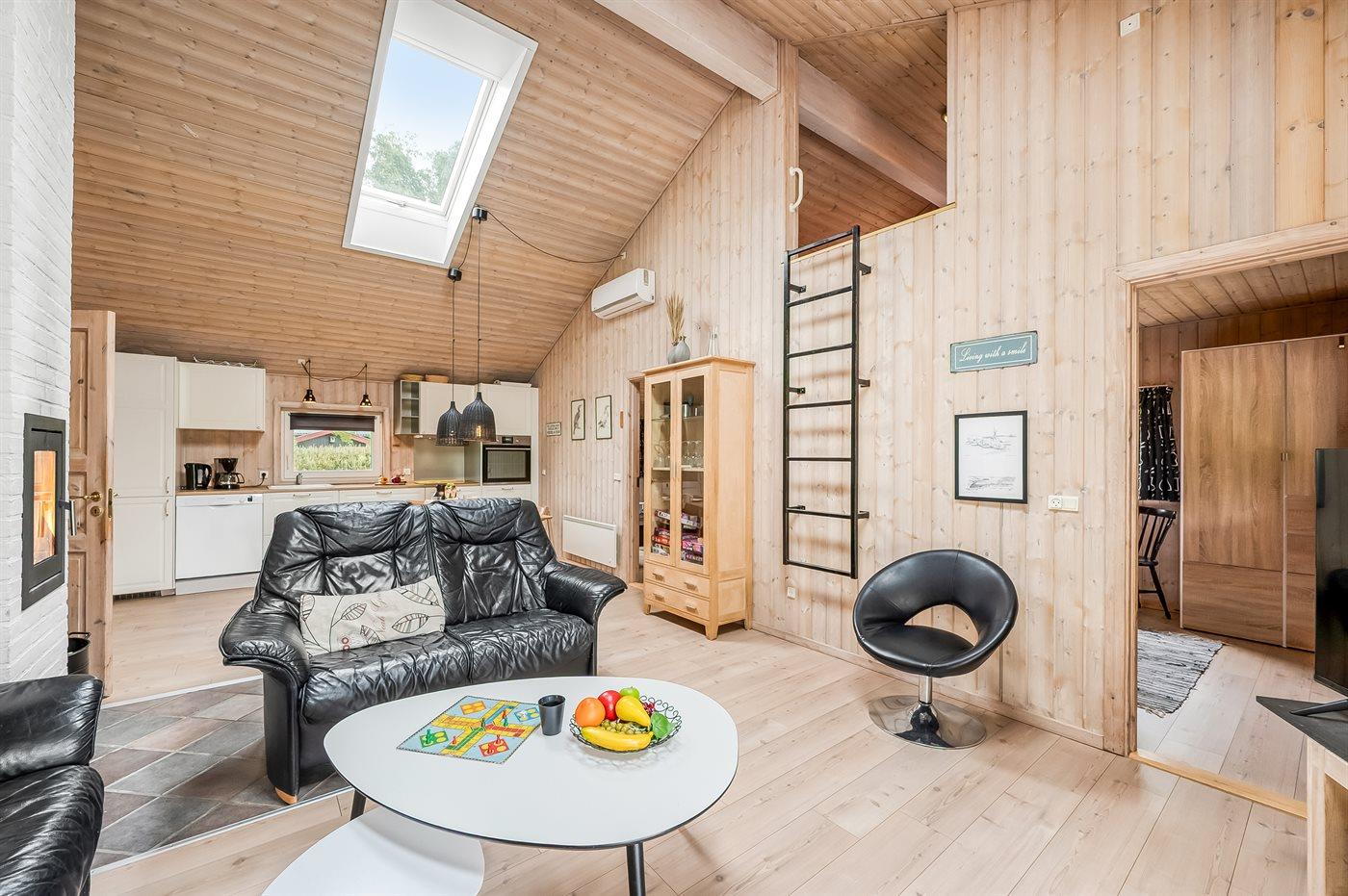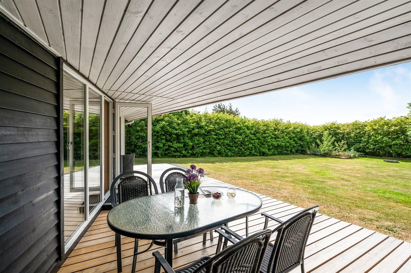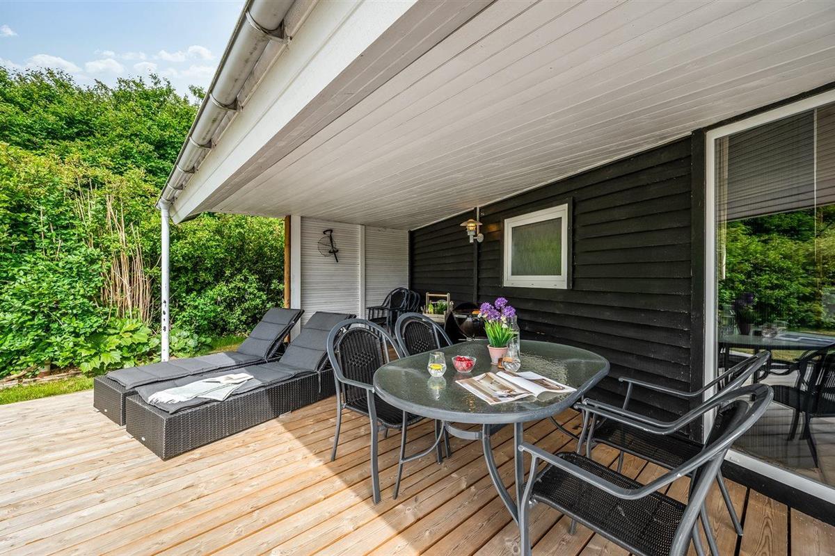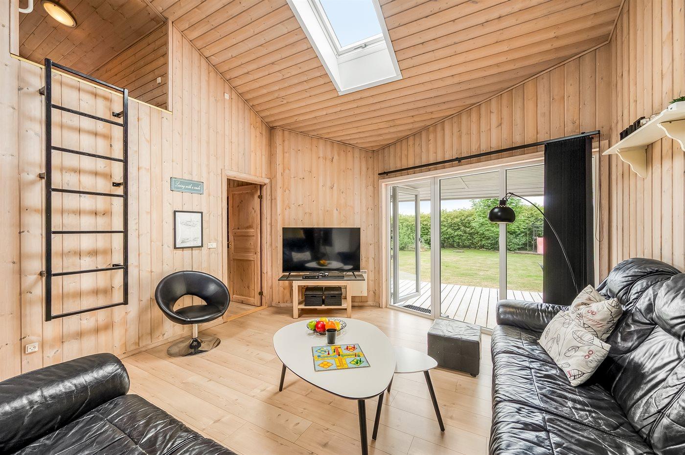 De vakantiewoning is gelegen op een 945 m² groot natuural grond. Afstand tot de fjord 350 m. Dichtstbijzijnde winkel 800 m. Bij de vakantiewoning hoort terras. Daarnaast is er een overdekt terras. Schommel. Zandbak. Speelhuisje. Parkeerplaats bij het huis.