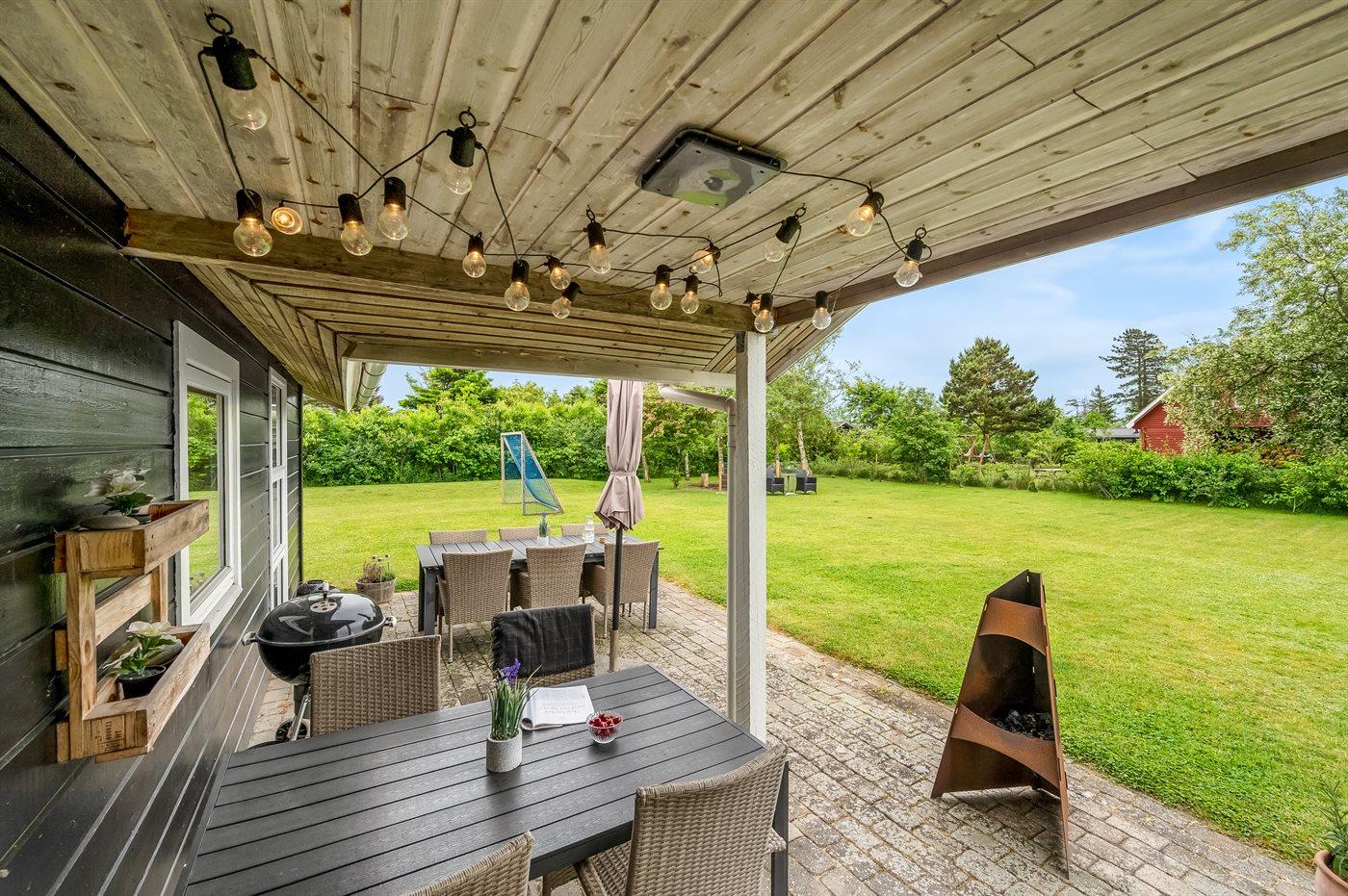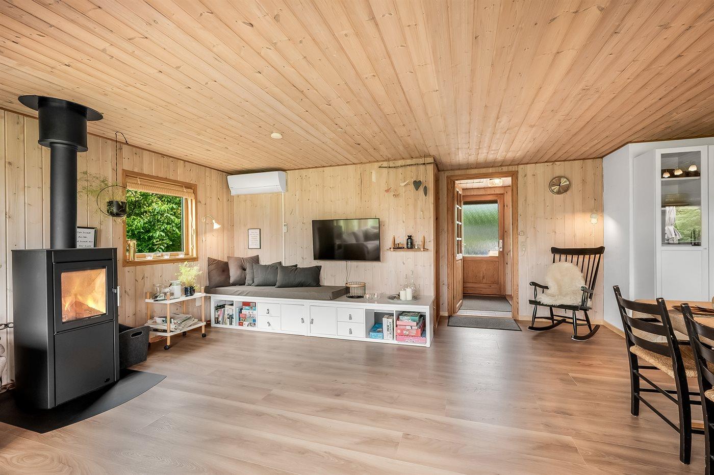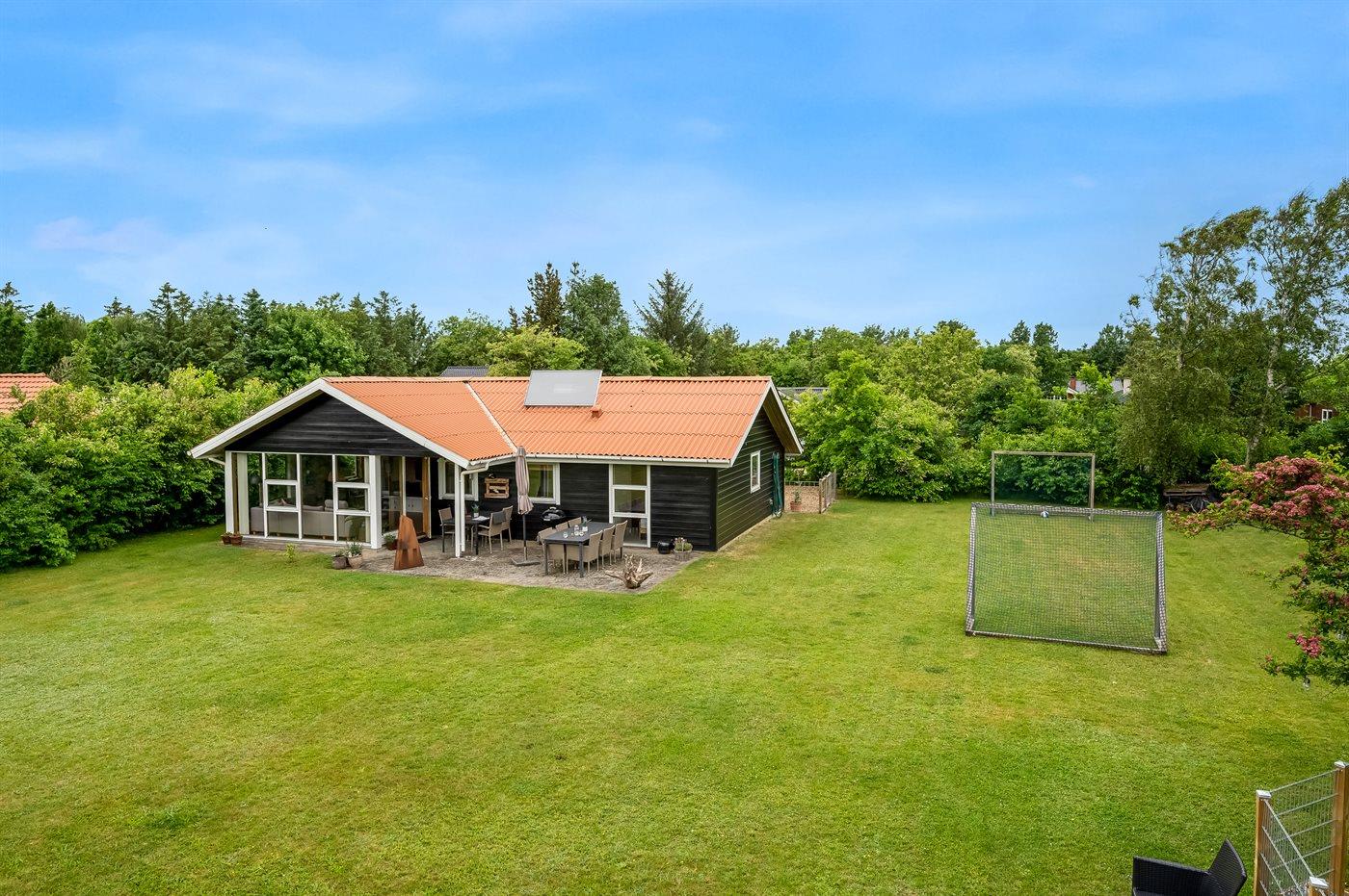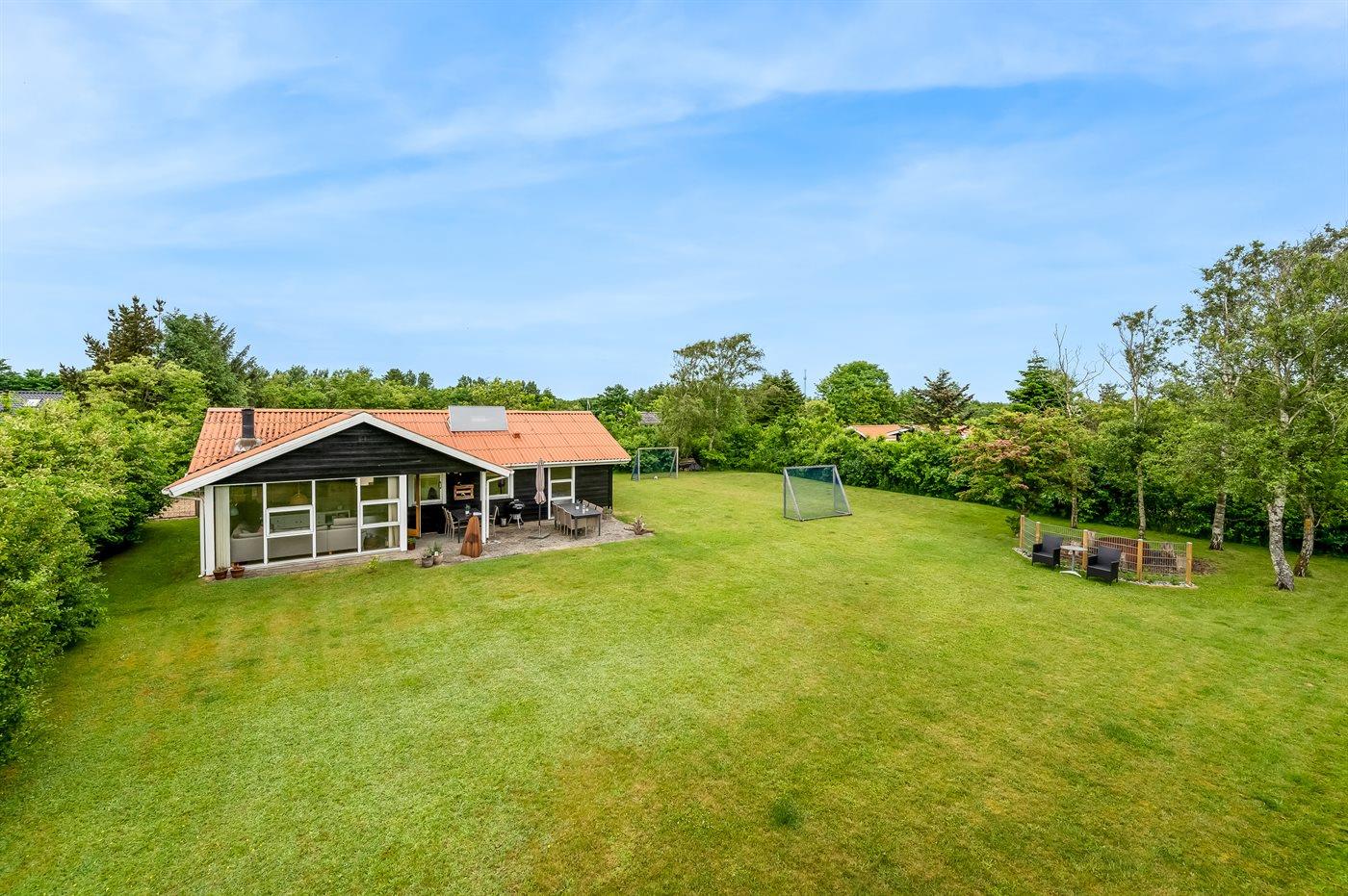 De vakantiewoning is gelegen op een 1350 m² groot aangelegde tuin. De grond is omheind. Afstand tot de zee 13200 m. Afstand tot de fjord 400 m. Dichtstbijzijnde winkel 100 m. Bij de vakantiewoning hoort terras. Daarnaast is er een overdekt terras. Voetbaldoel.Vuurplaats. Op zwoele avonden zorgt de buitenhaard voor een gezellige sfeer. Parkeerplaats bij het huis.
