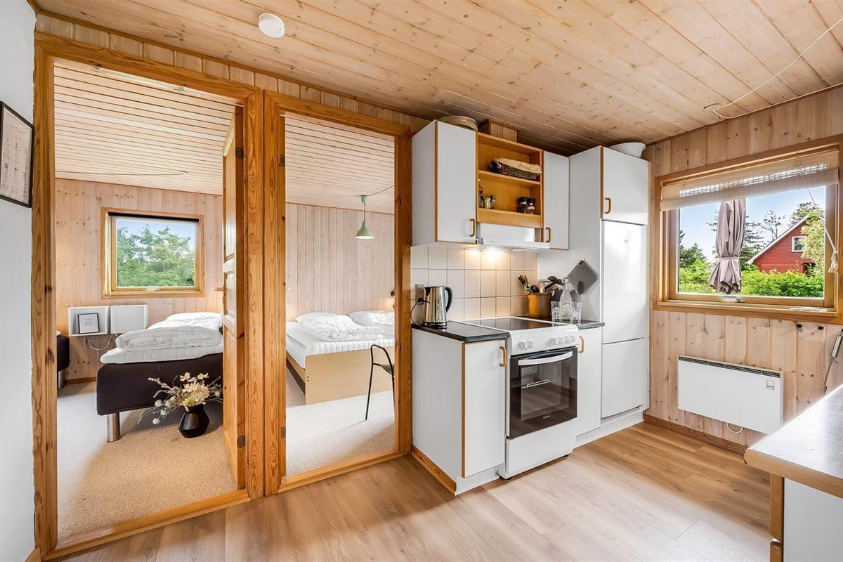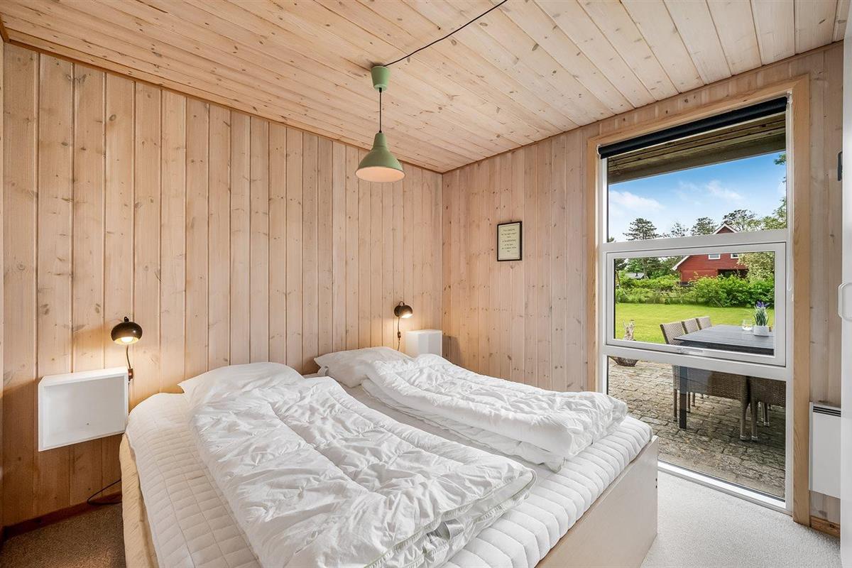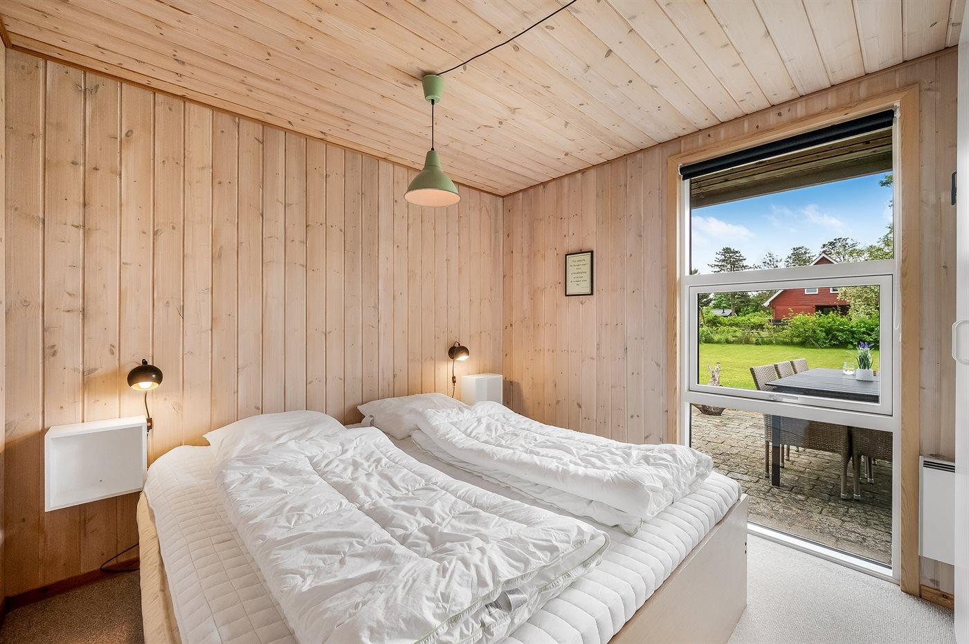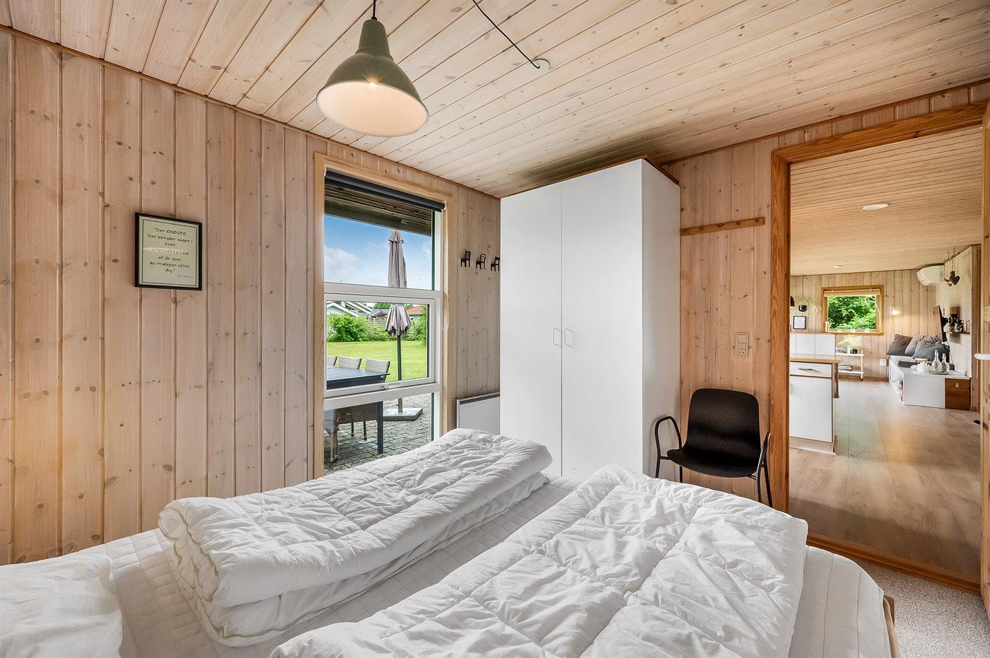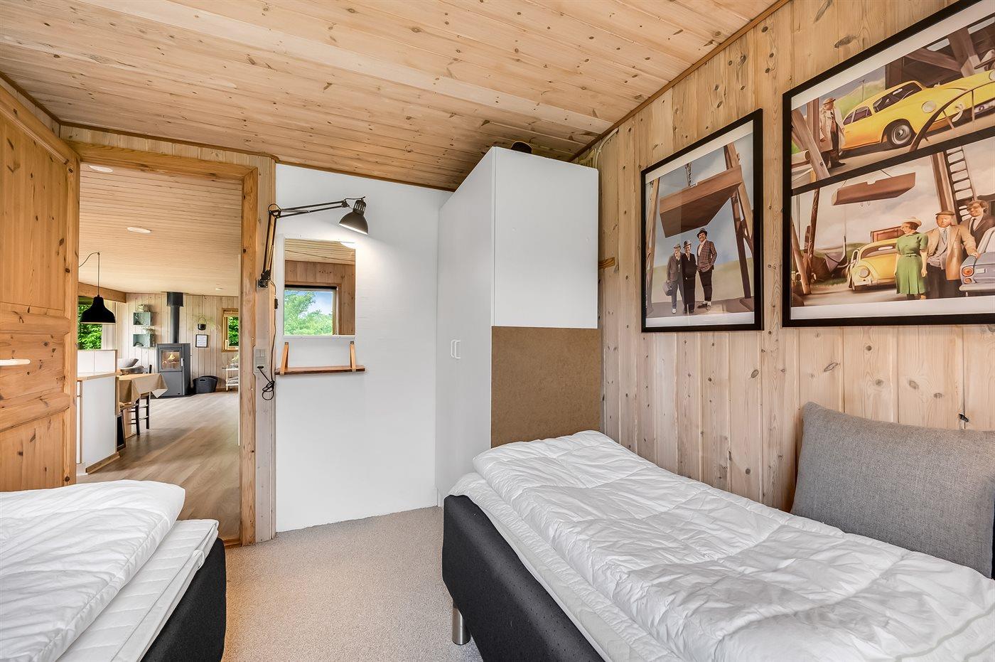 De vakantiewoning is gelegen op een 1350 m² groot aangelegde tuin. De grond is omheind. Afstand tot de zee 13200 m. Afstand tot de fjord 400 m. Dichtstbijzijnde winkel 100 m. Bij de vakantiewoning hoort terras. Daarnaast is er een overdekt terras. Voetbaldoel.Vuurplaats. Op zwoele avonden zorgt de buitenhaard voor een gezellige sfeer. Parkeerplaats bij het huis.