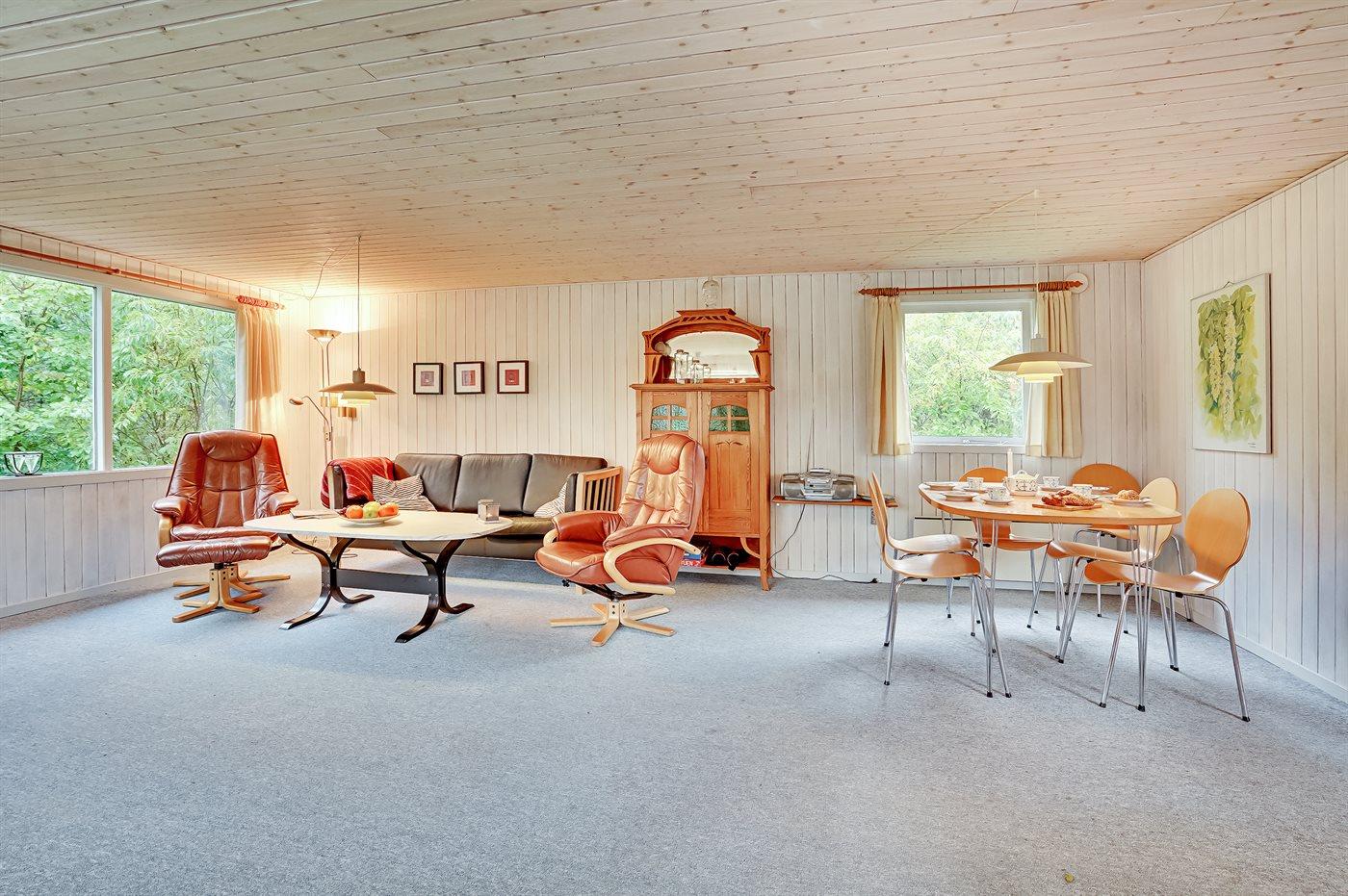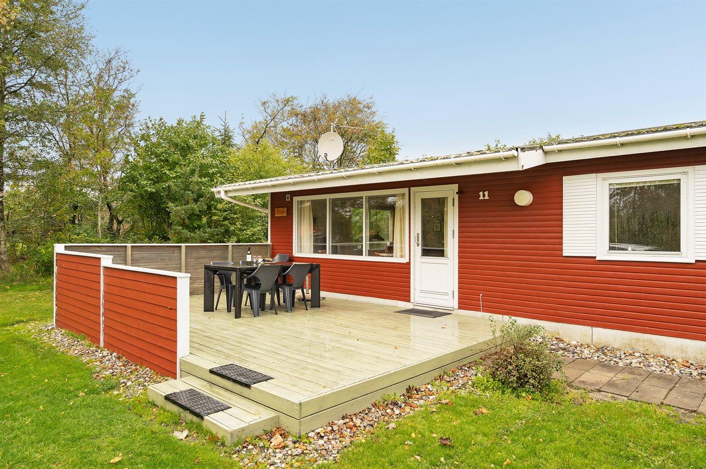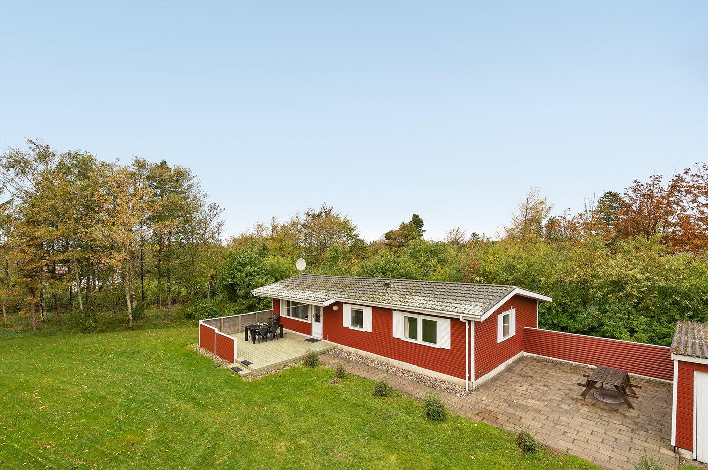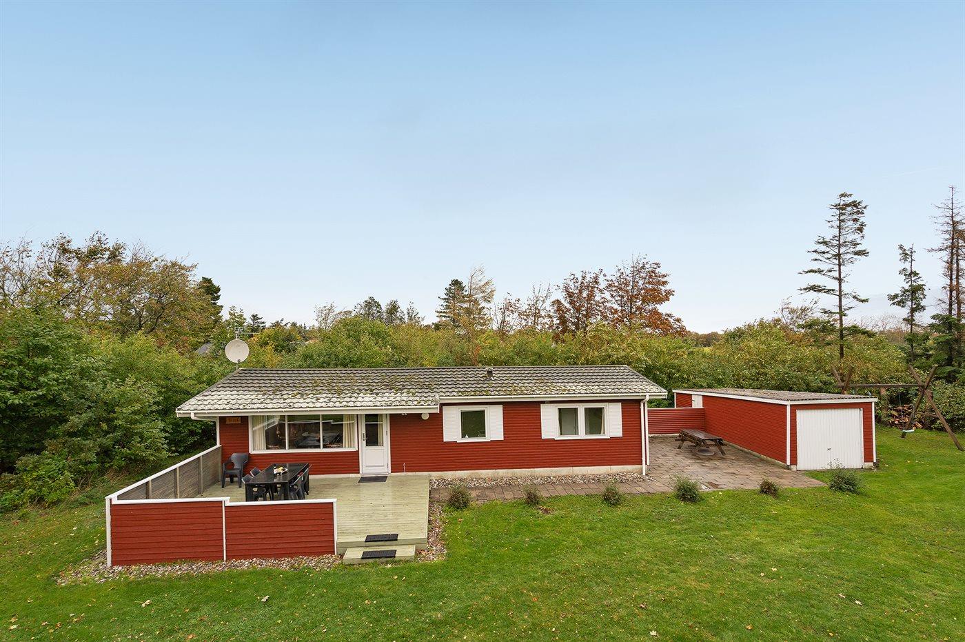 De vakantiewoning is gelegen op een 1550 m² groot natuural grond. Afstand tot de zee 13000 m. Afstand tot de fjord 450 m. Dichtstbijzijnde winkel 700 m. Bij de vakantiewoning hoort 30 m² terras. Gereedschapsruimte. Schommel. Zandbak. Parkeerplaats bij het huis.