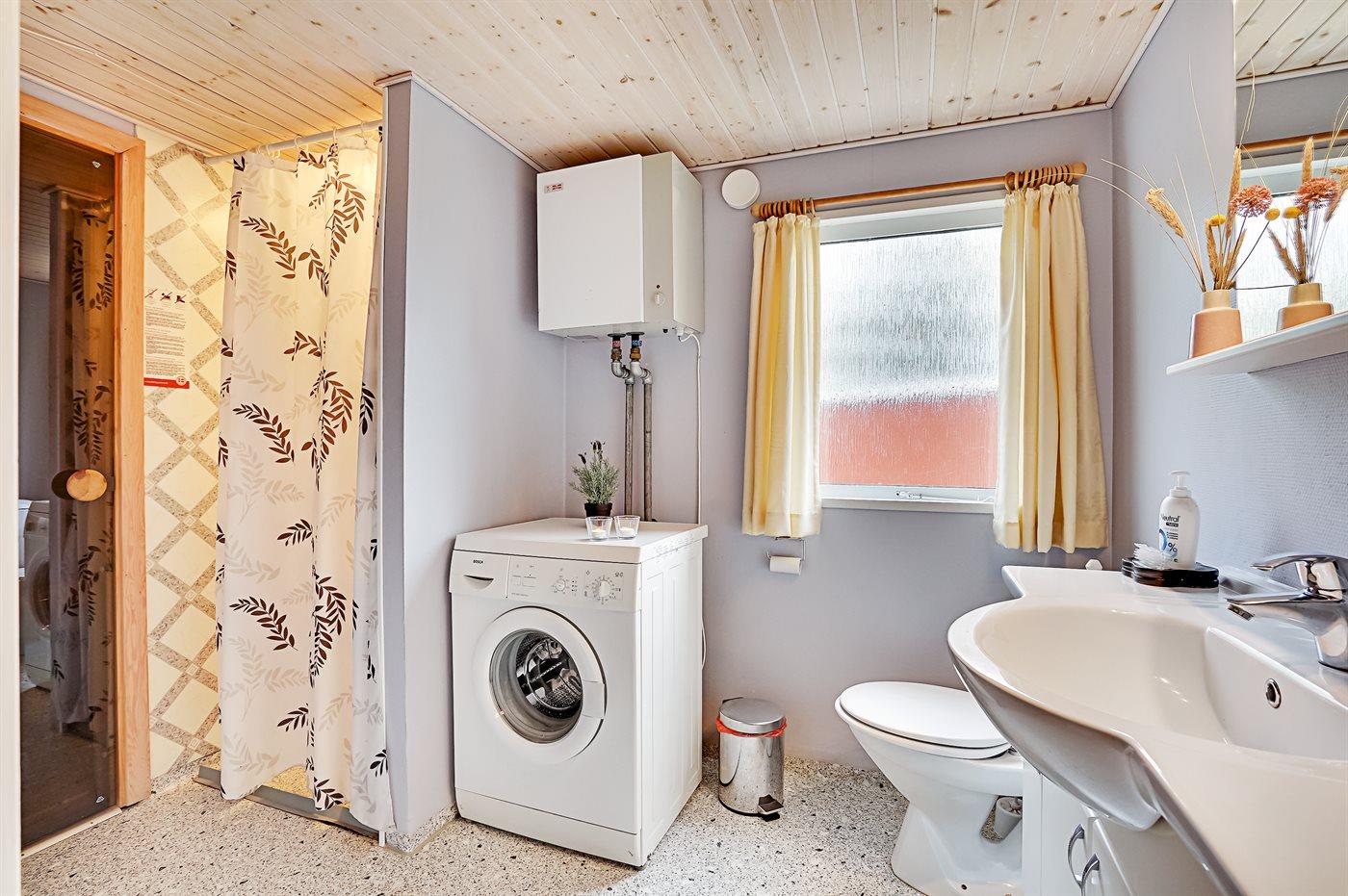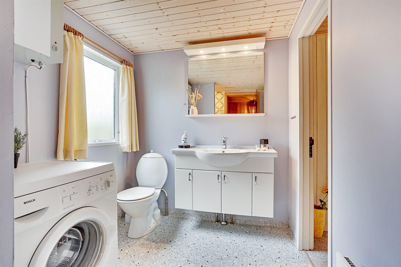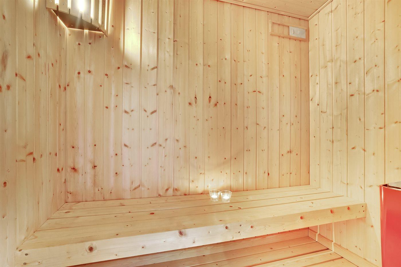 Er is 1 badkamer met douchehok en 1 toilet. De sauna biedt de gelegenheid tot ontspanning.