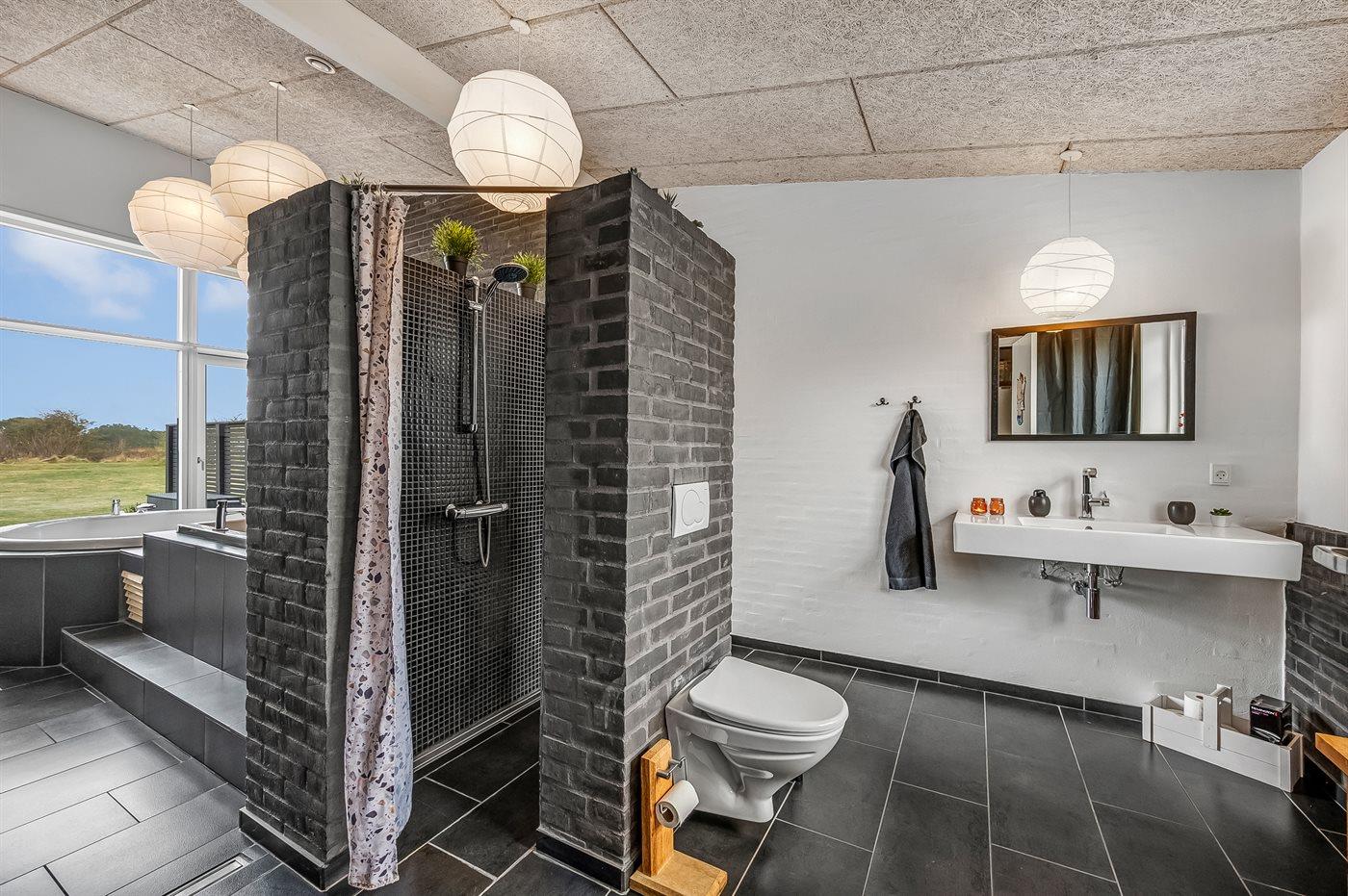 Er is 1 badkamer met douchehok, badkuip en 1 toilet. Er is vloerverwarming in 1 badkamer.