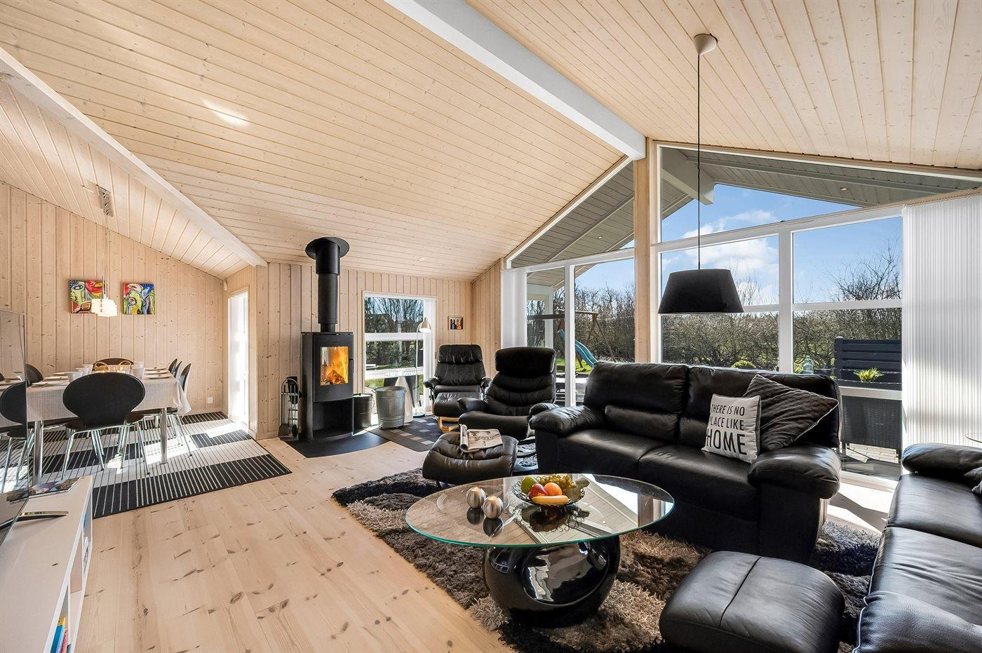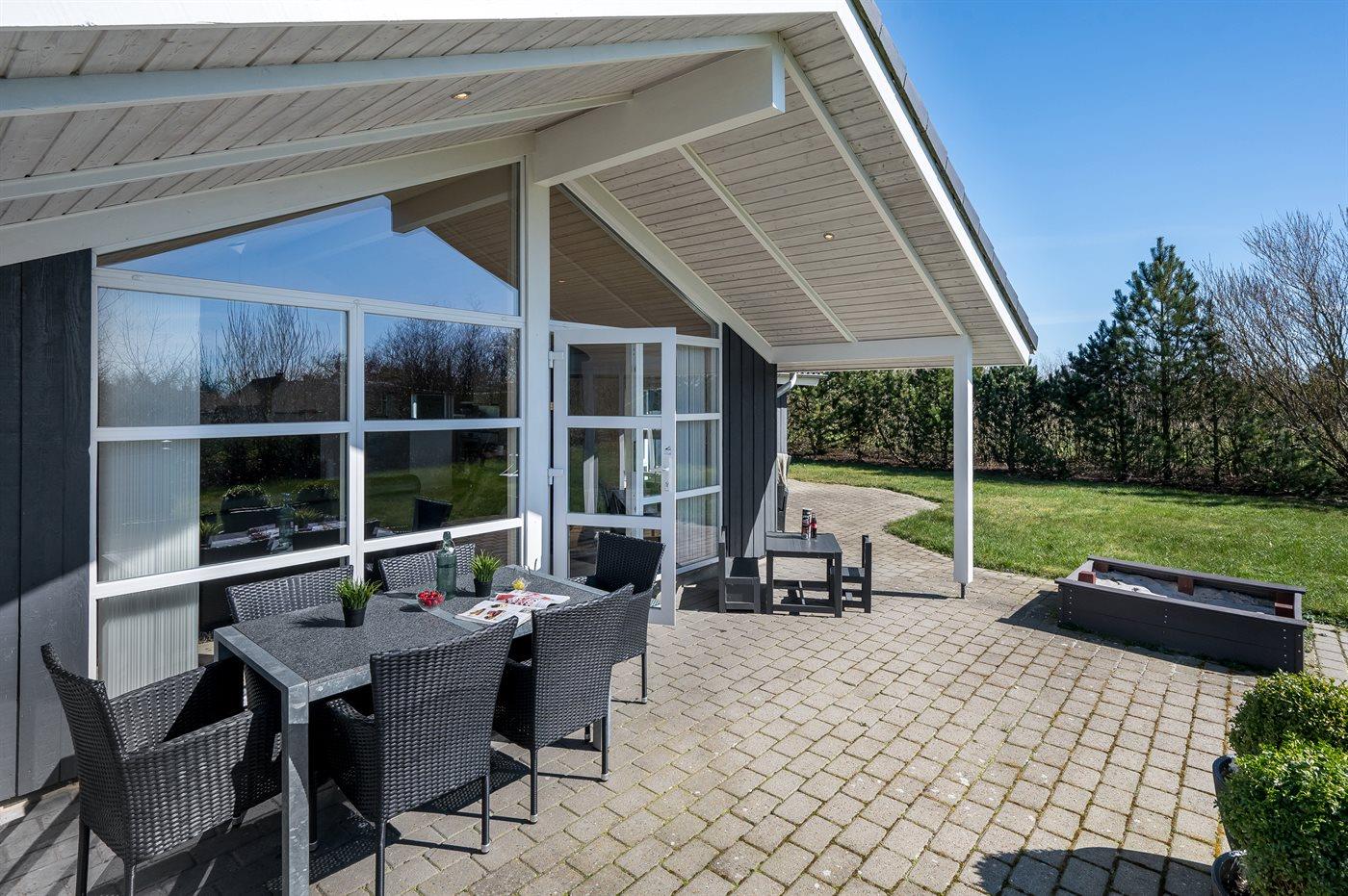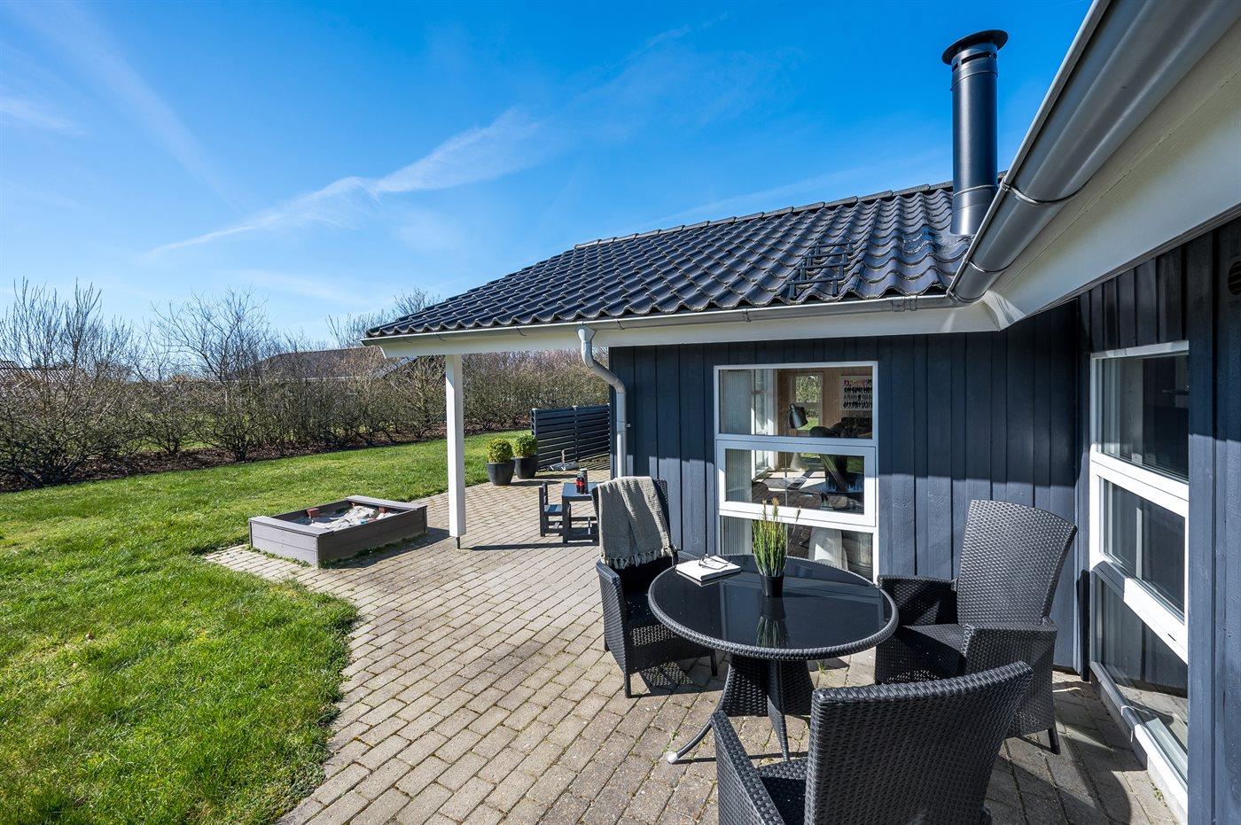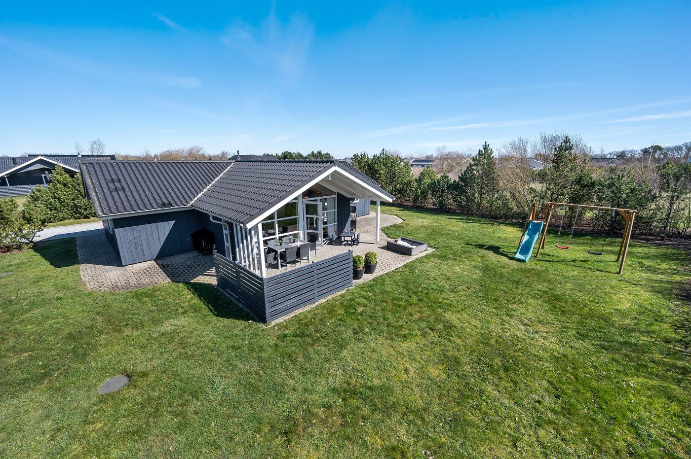 De vakantiewoning is gelegen op een 1241 m² groot natuural grond. Afstand tot de zee 13500 m. Afstand tot de fjord 600 m. Dichtstbijzijnde winkel 500 m. Bij de vakantiewoning hoort 150 m² terras. Daarnaast is er een 30 m² groot overdekt terras. Schommel. Zandbak. Carport ter beschikking. Parkeerplaats bij het huis.