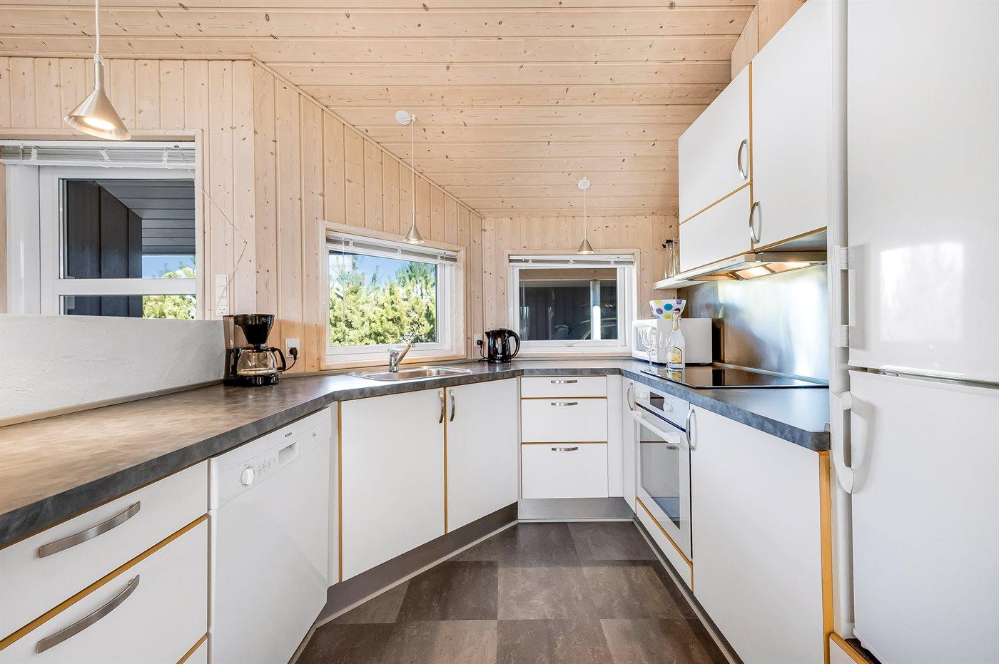 De keuken is uitgerust met koelkast Er zijn 4 keramische kookplaten, heteluchtoven, magnetron en vaatwasser.