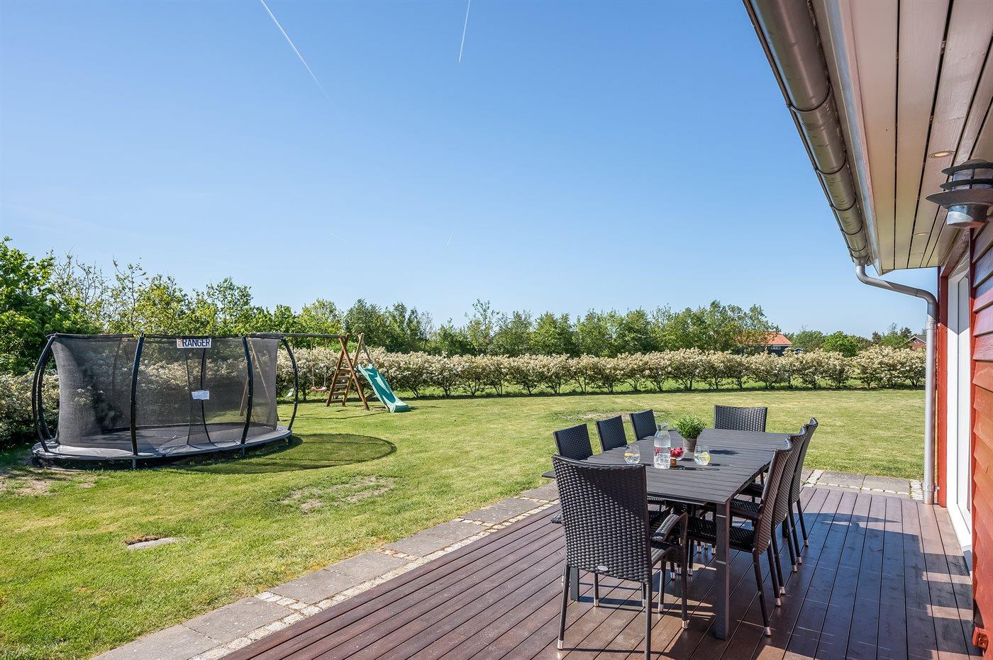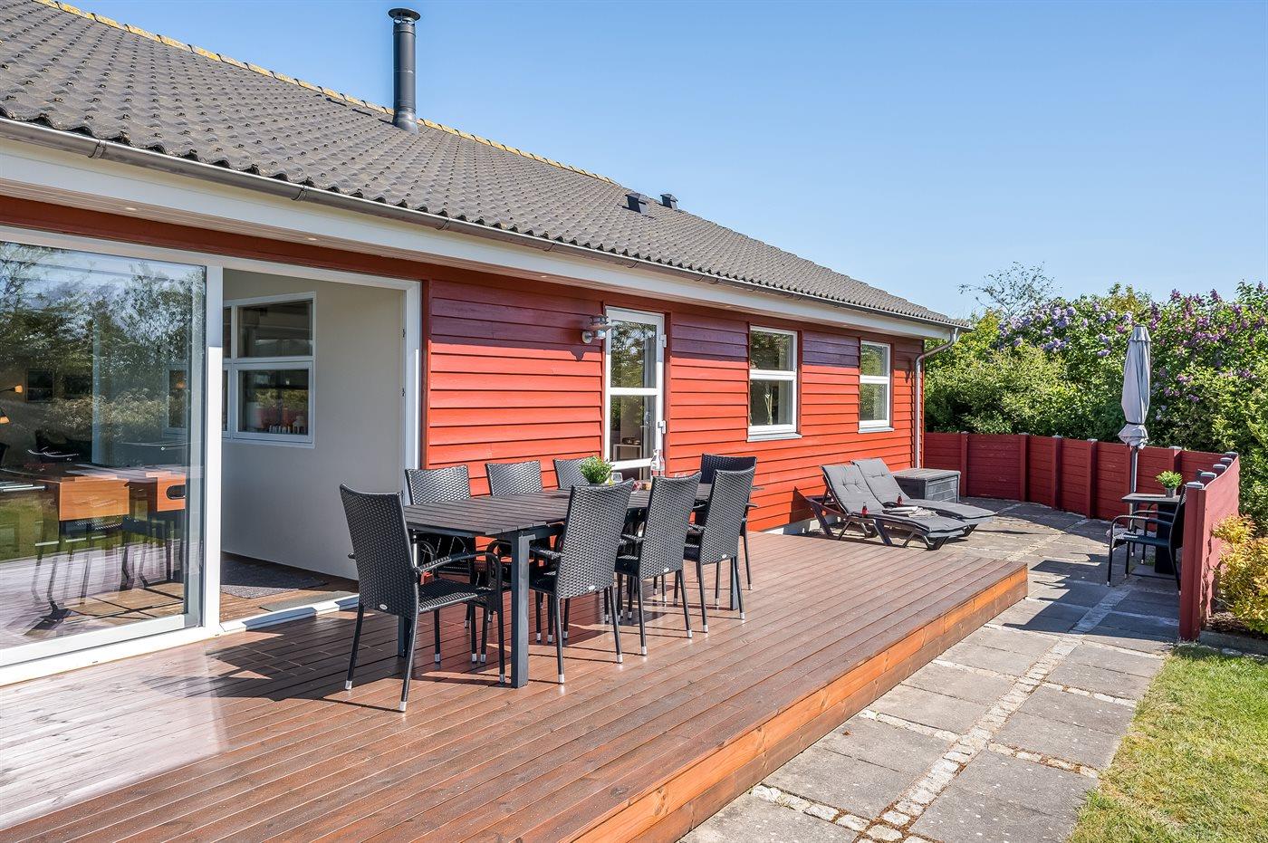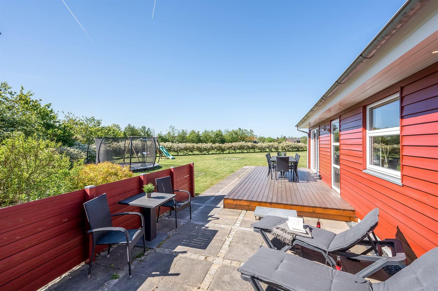De vakantiewoning is gelegen op een 1280 m² groot natuural grond. Afstand tot de zee 12000 m. Afstand tot de fjord 800 m. Dichtstbijzijnde winkel 700 m. Bij de vakantiewoning hoort 90 m² terras. Schommel. Trampoline. Glijbaan. Carport ter beschikking. Het huis heeft een stopcontact voor het opladen van een elektrische auto. Met 11 kW-laadvermogen. Parkeerplaats bij het huis.